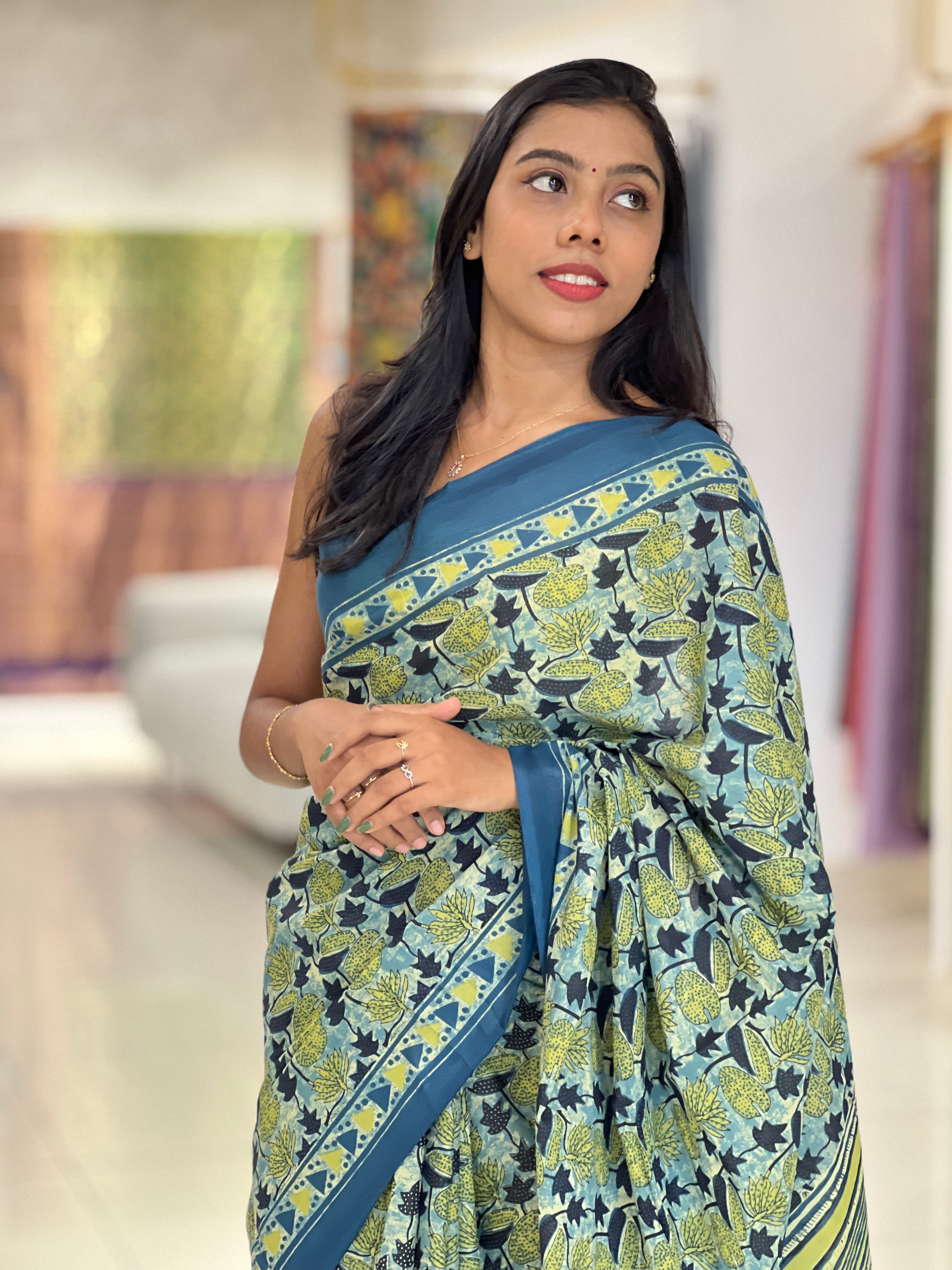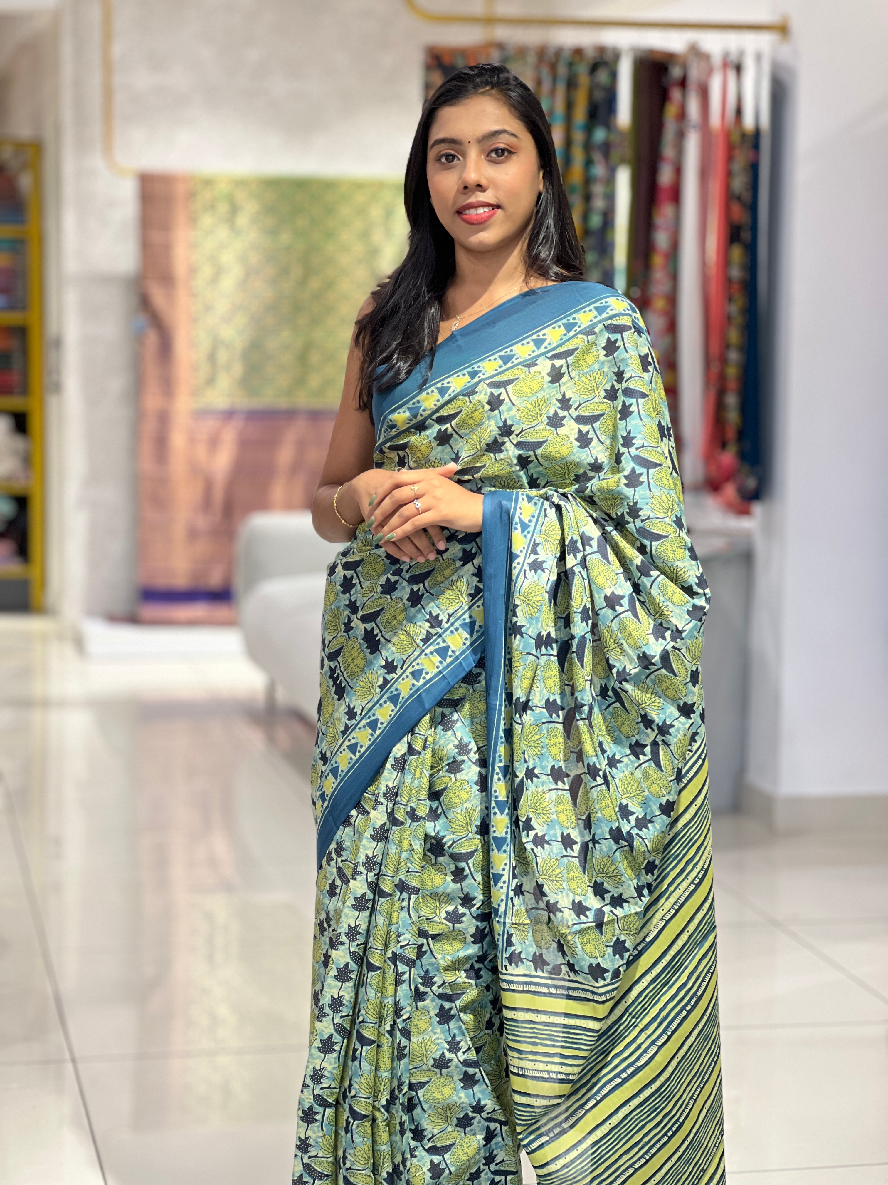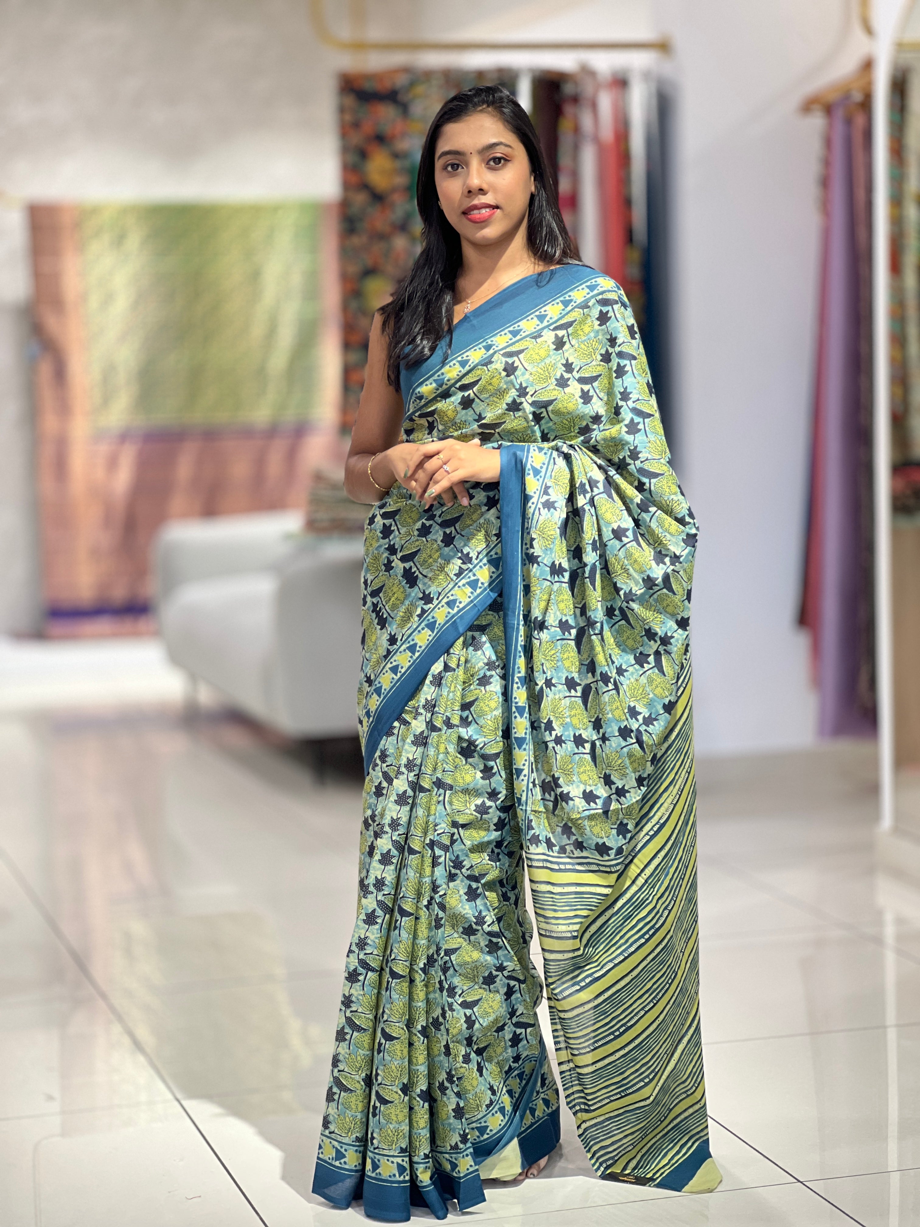 - Style: Screen Print Pattern, Stripes Patterned Pallu, Border Detailing