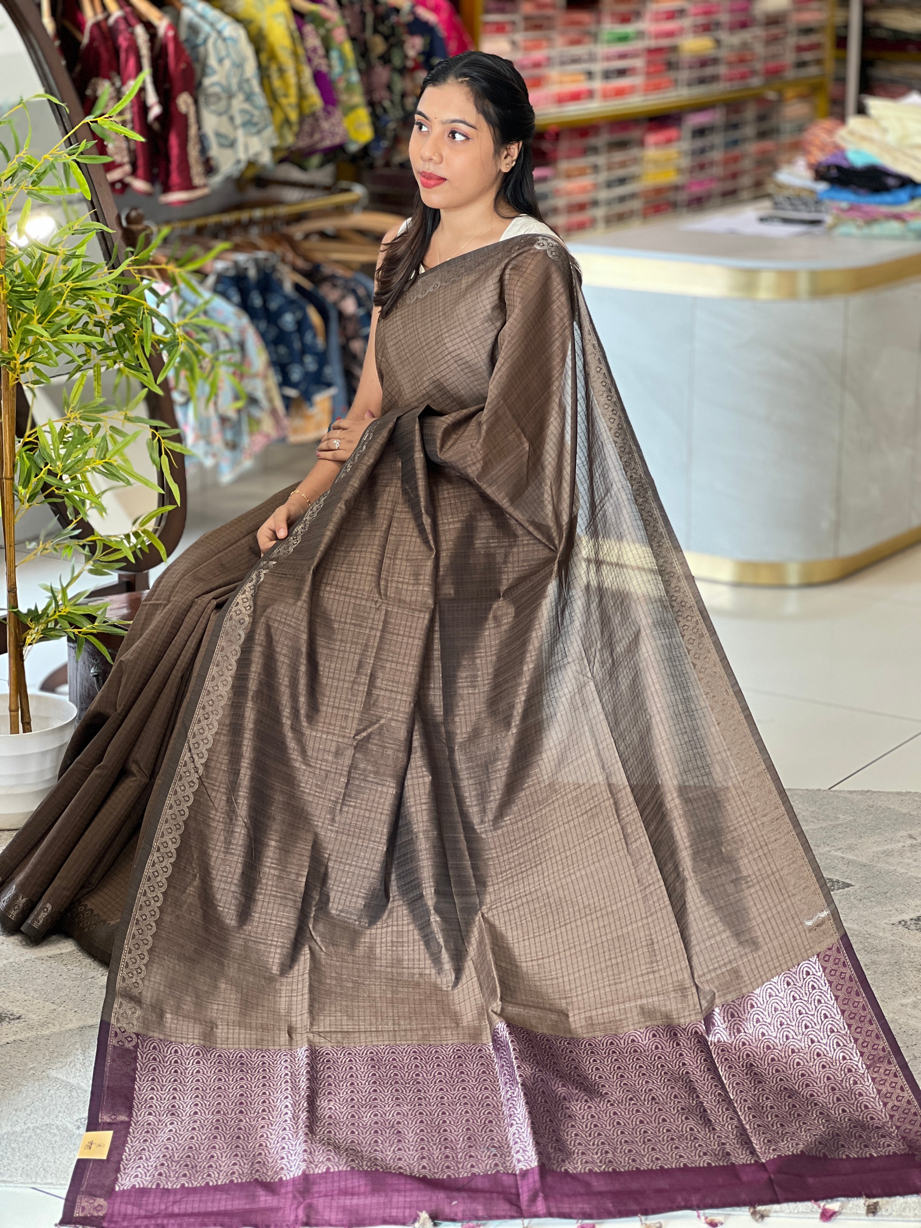 - Style: Self Weaving Check Pattern, Zari Weaved Pallu, Traditional Border Detailing, Tassels Attached