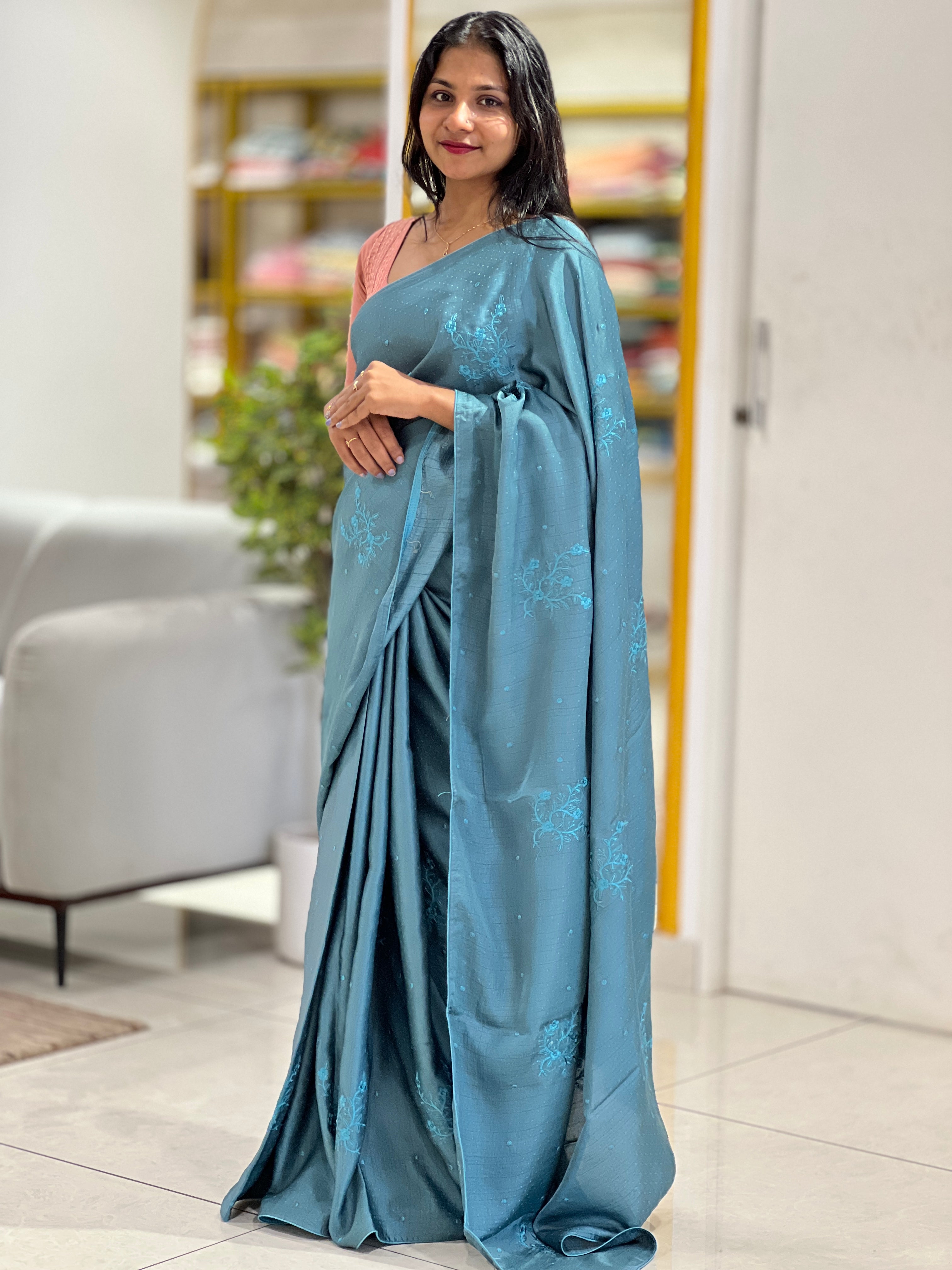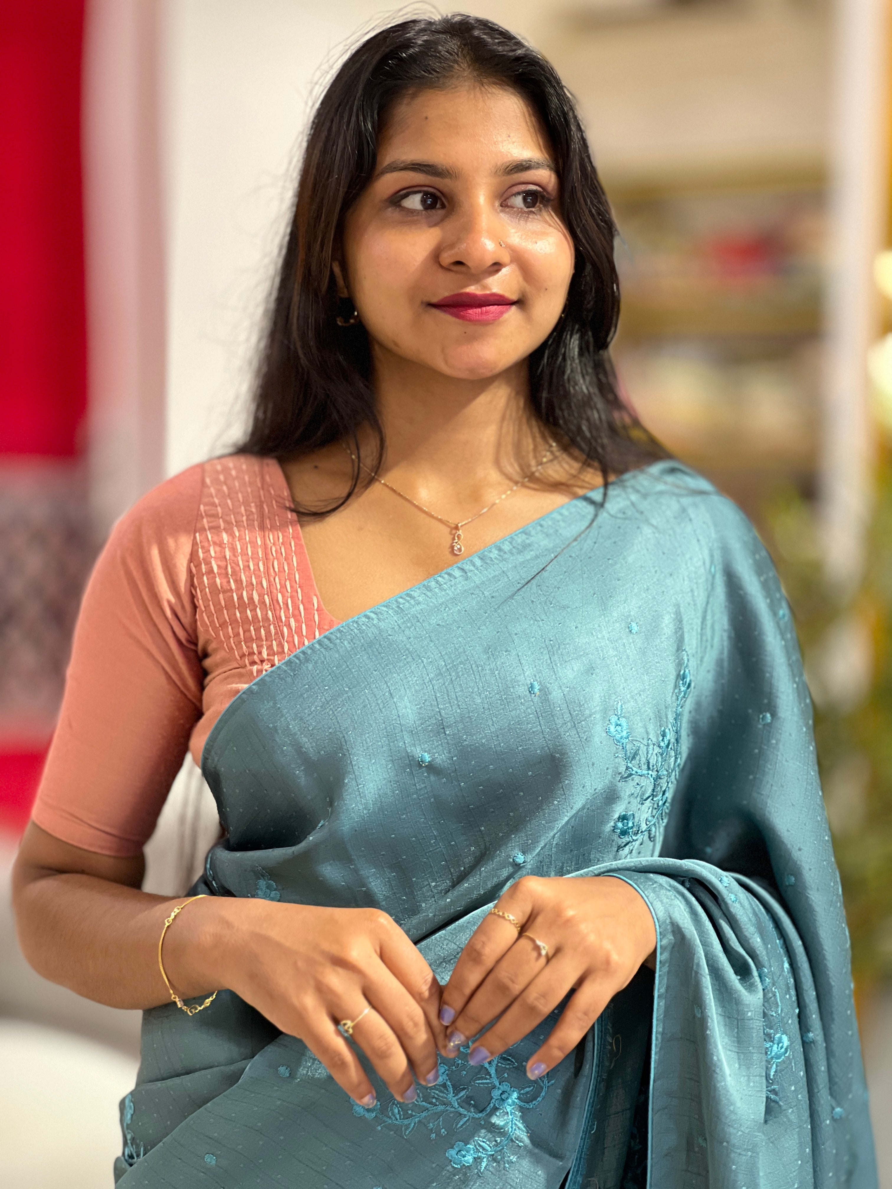 - Style: Scattered Floral Embroidery Detailing With Polka Dot Embroidery Butas, Piping Finished Edges