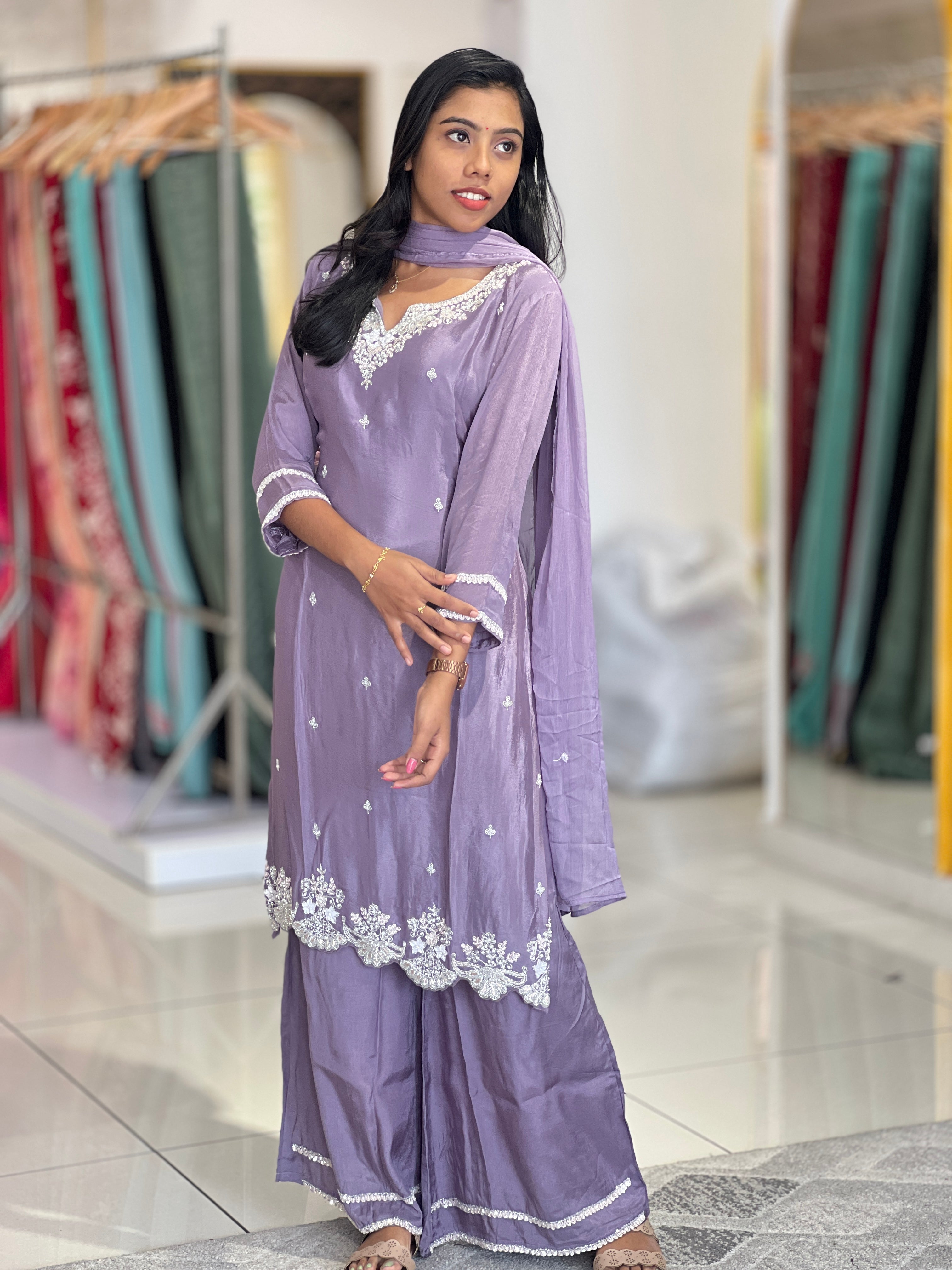 - Style: Sequence & Cut Beads Embroidered Neck And Lower Hem Portion, Scattered Embroidery Detailing, Sequence Embroidered Sleeves Hem Portion, Scallop Edges