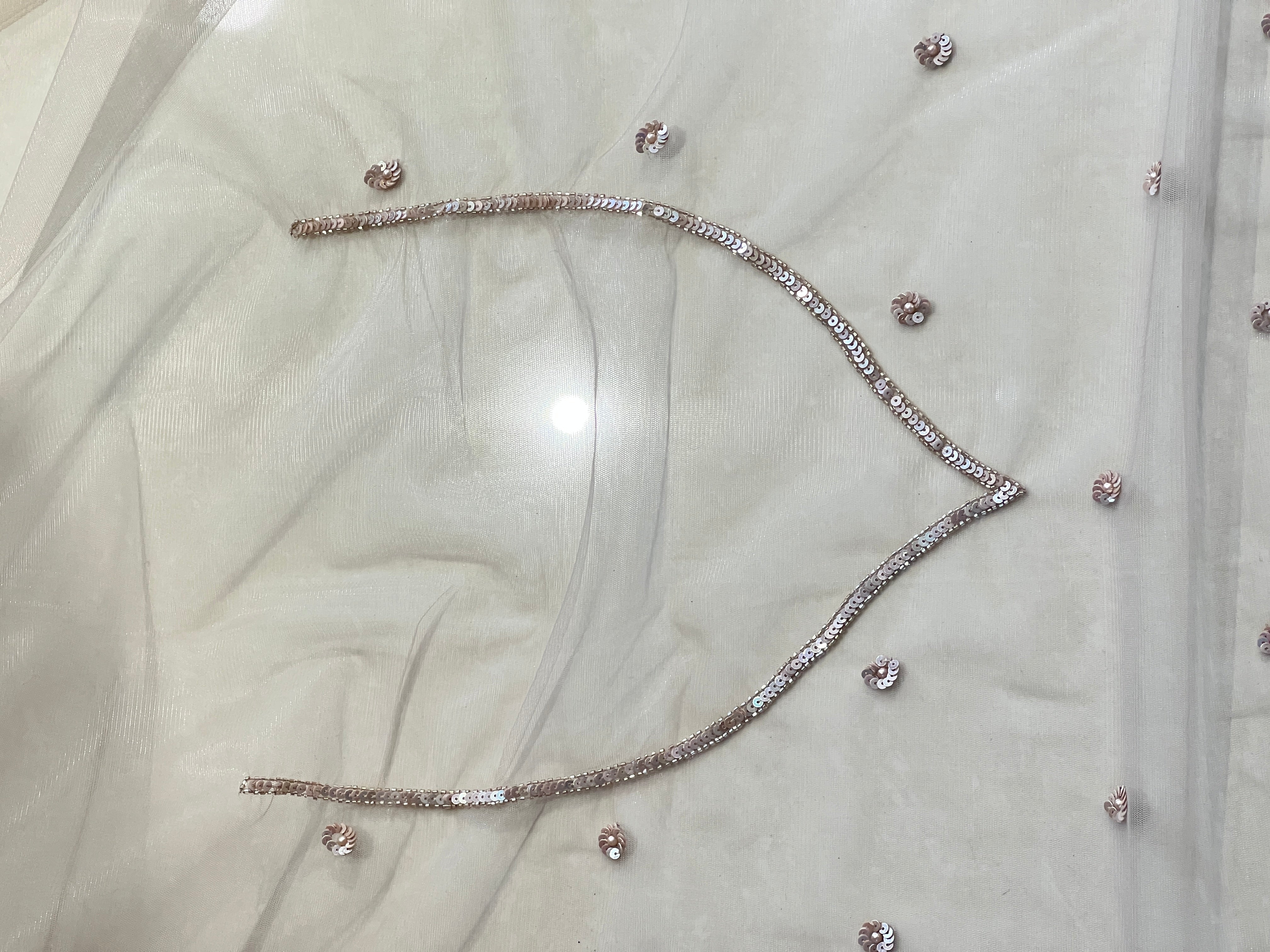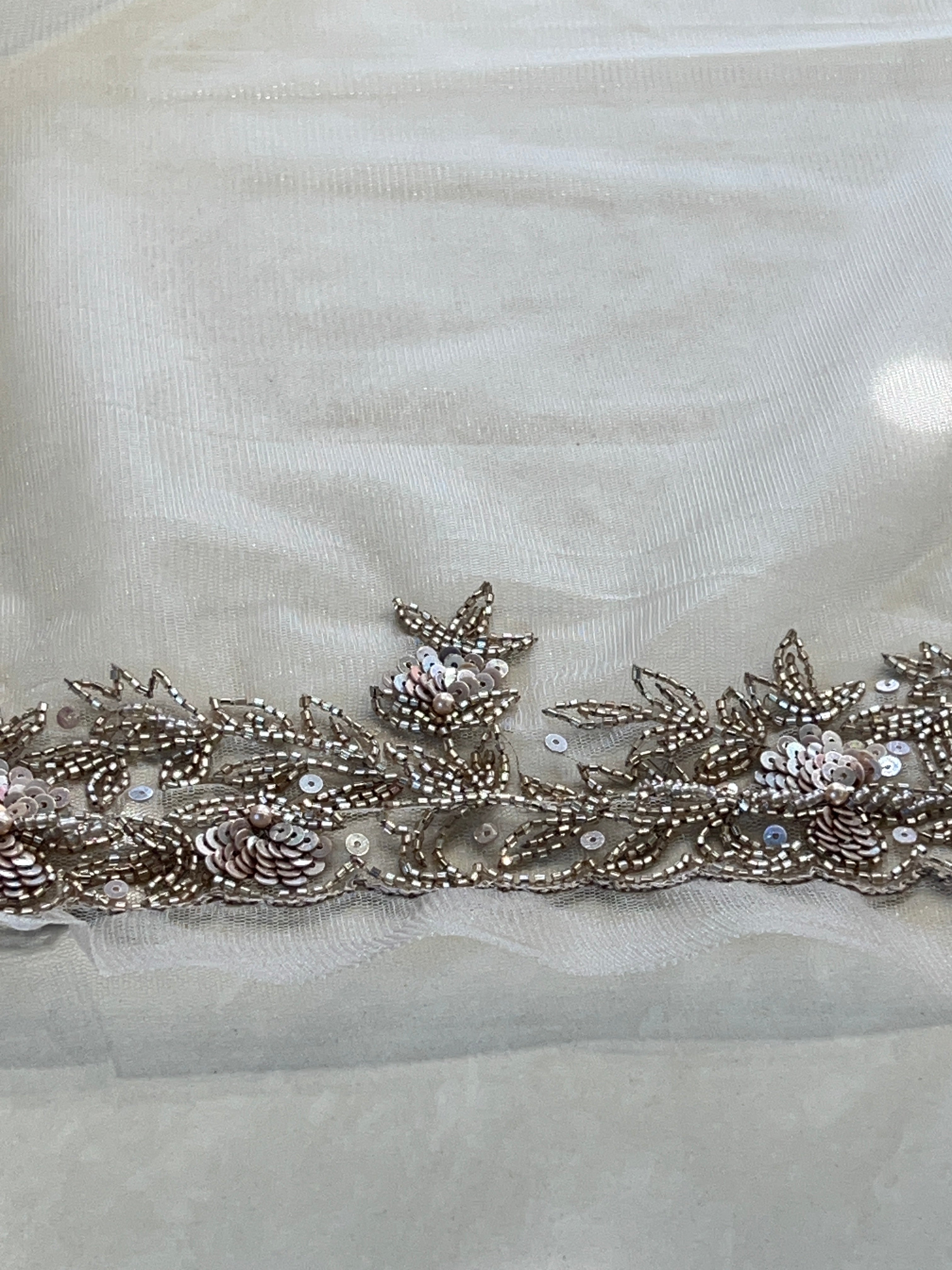 • Style: Cut Beads & Beads & Sequence Detailed Floral Patterned Borders, Uneven Scallop Edges