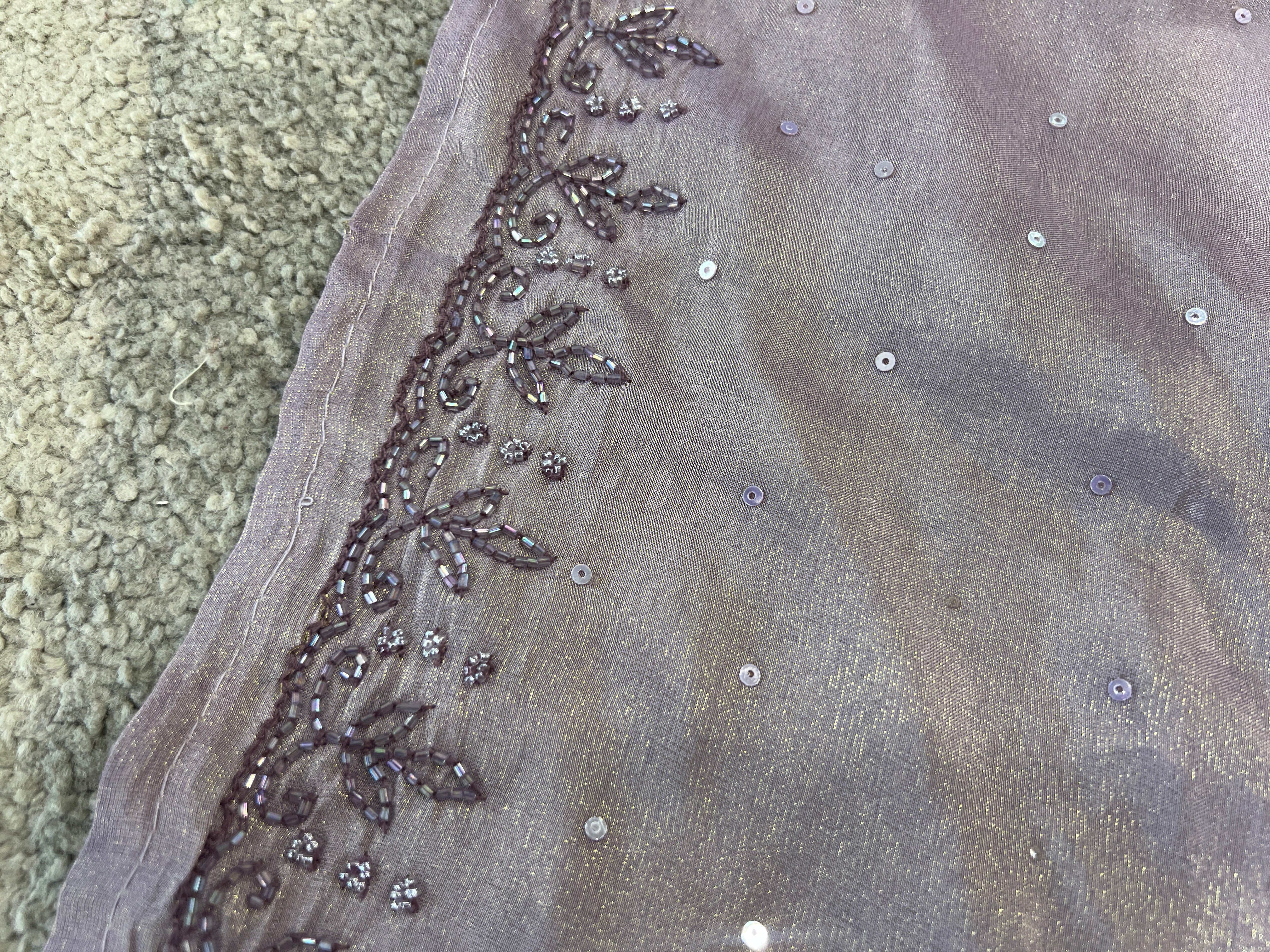 - Style: Sequence Sticky Detailing, Cut Beads Embroidery Detailed Borders, Scallop Edges