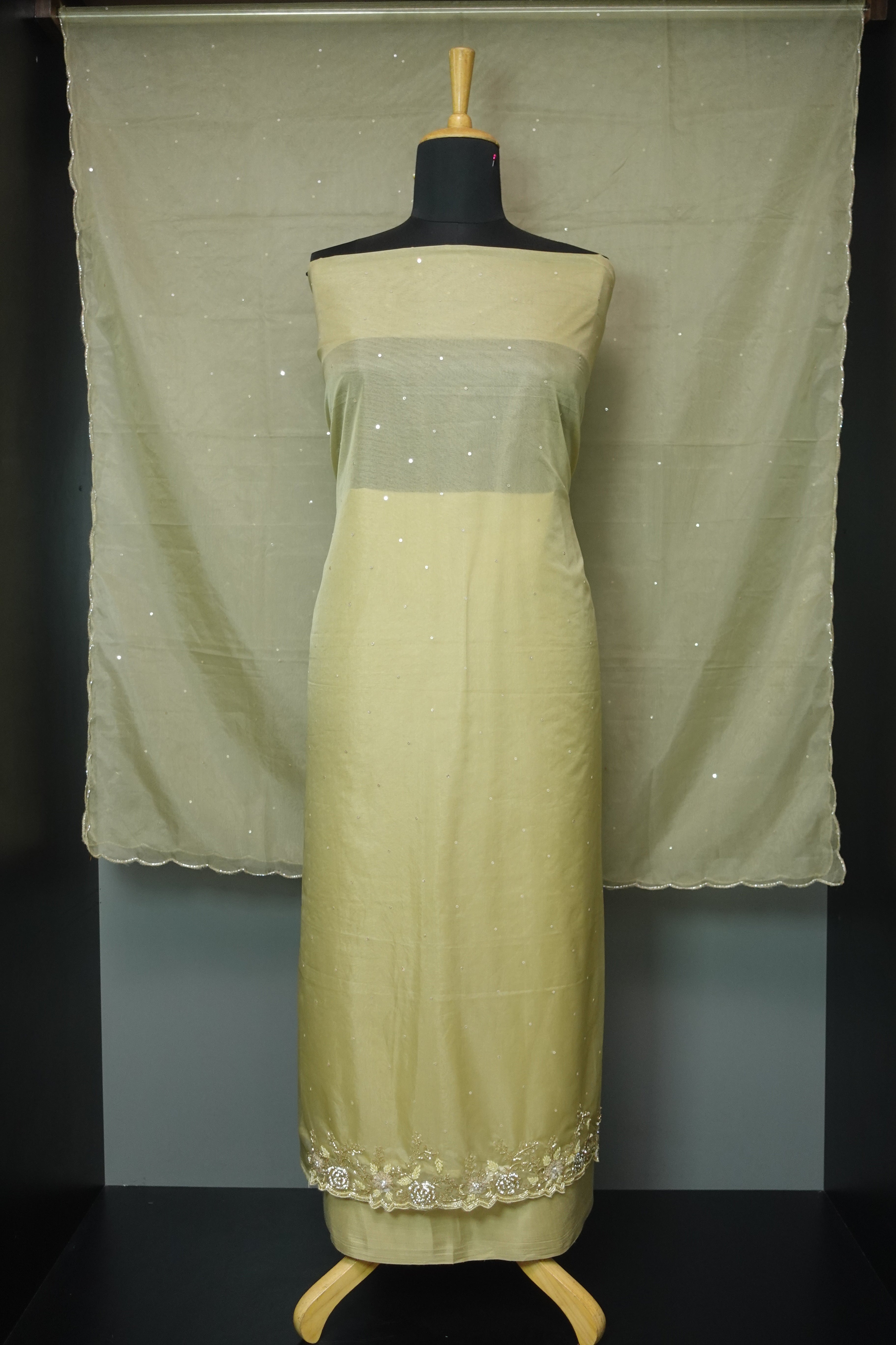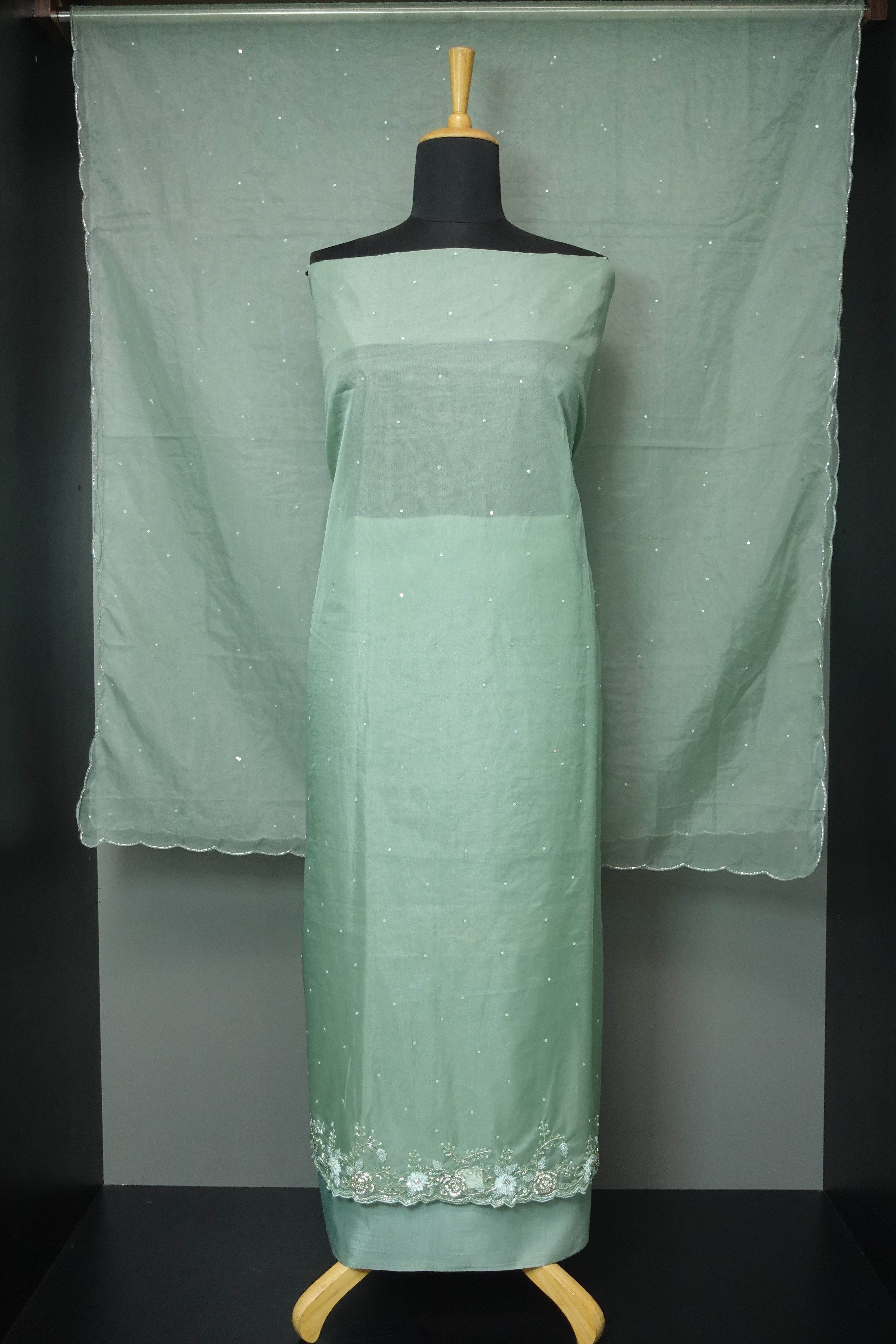 - Style: Scattered Sequence Embroidery Work, Sequence & Cut Beads Embroidery Detailed Hem Portion (With Lining)