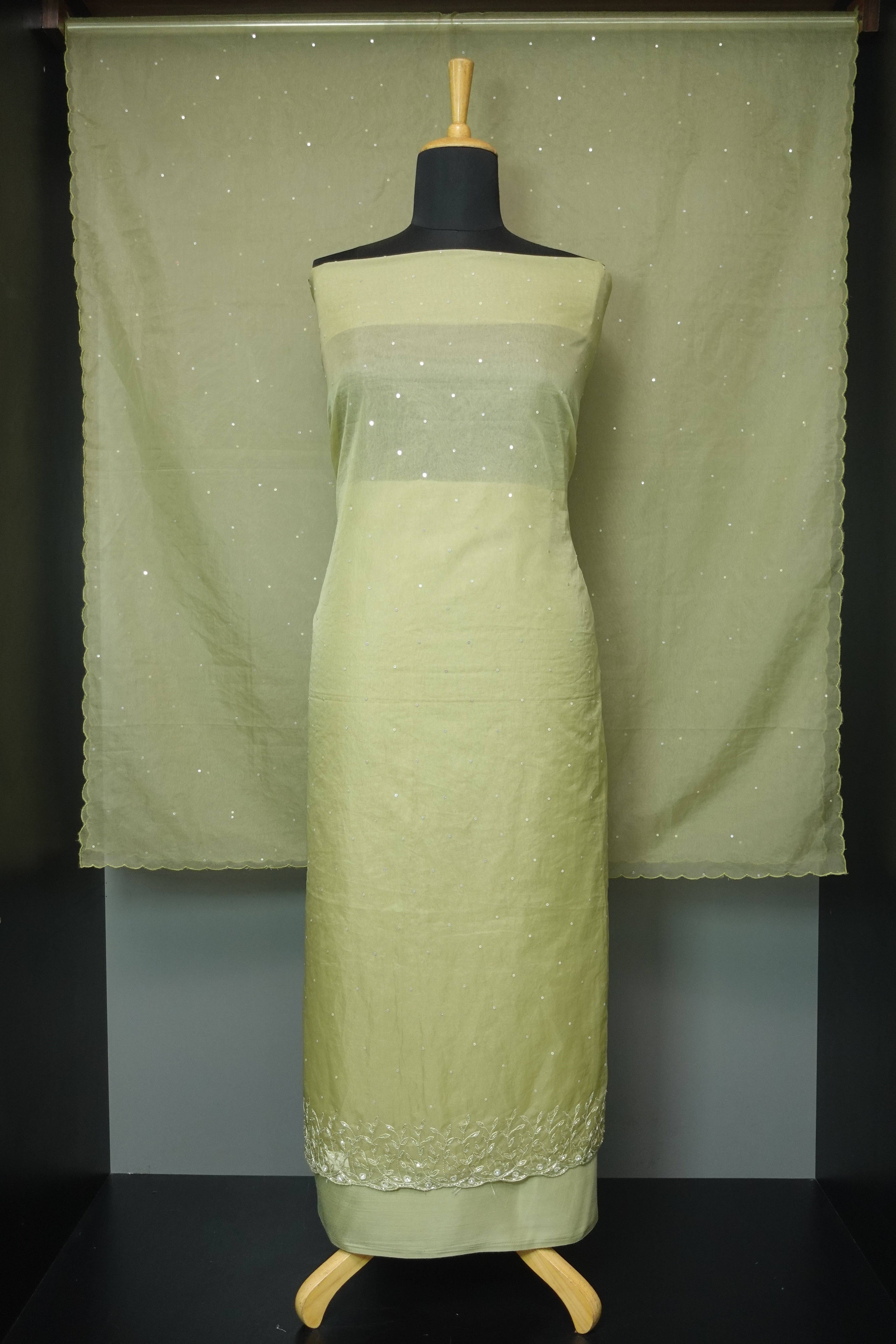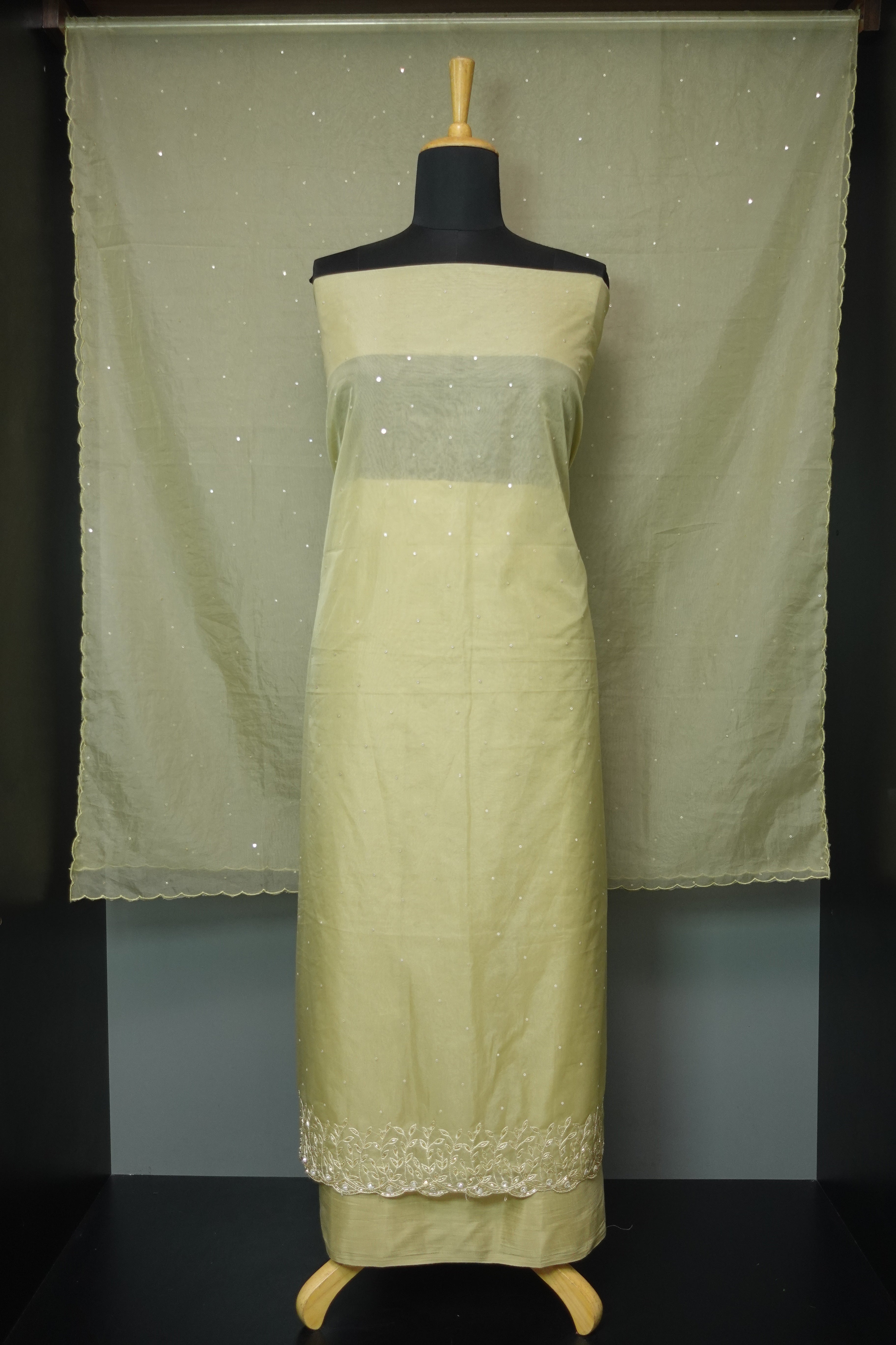 •  Style: Scattered Sequence Embroidery Work, Sequence & Cut Beads Embroidery Detailed Hem Portion (With Lining)