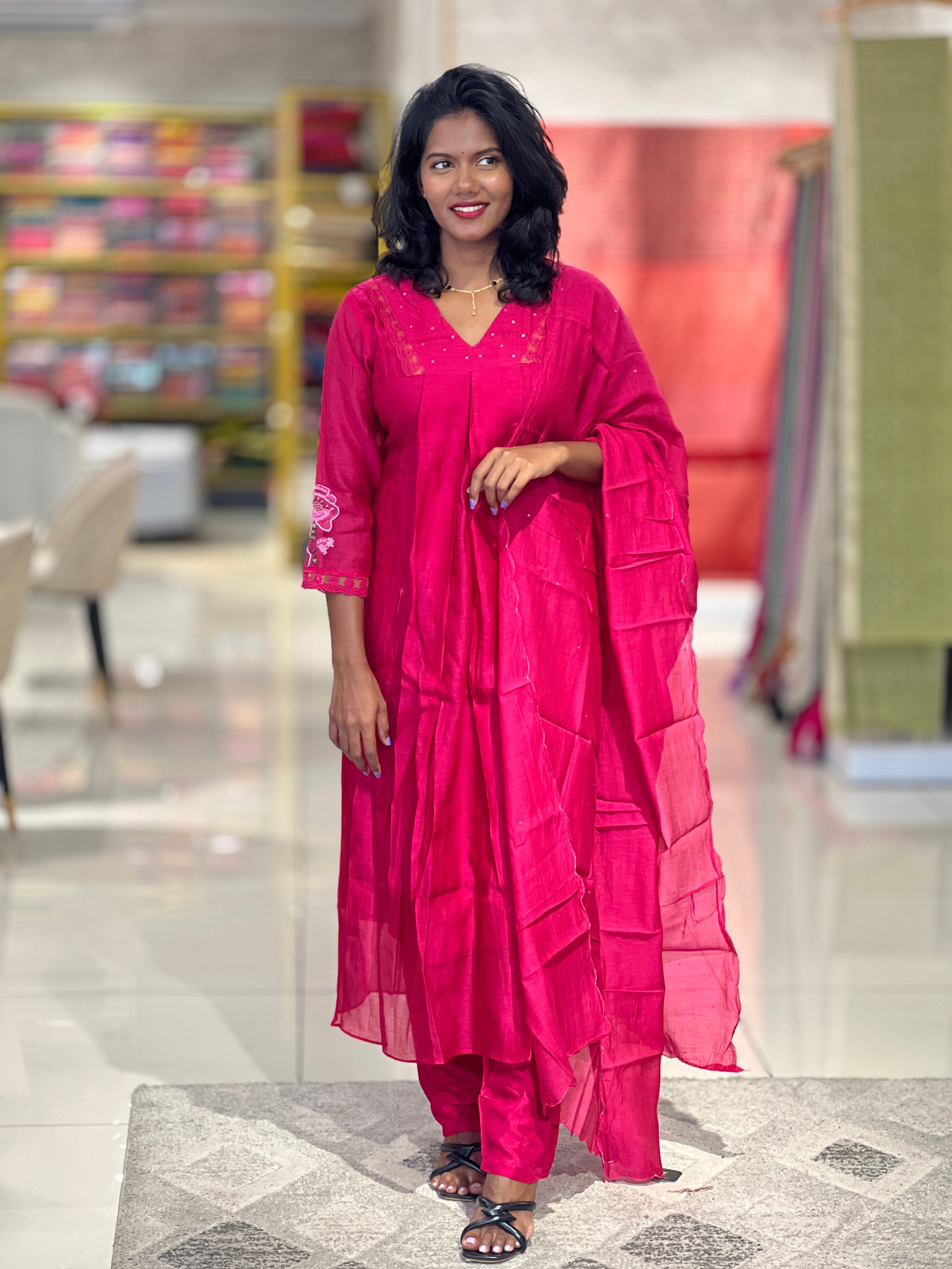 - Style: Organza Patch Detailed Neck & Sleeves, Sequence Detailed Yoke Portion, Inverted Box Pleated Detailing, Floral Embroidery Detailed Sleeves Hem Portion
