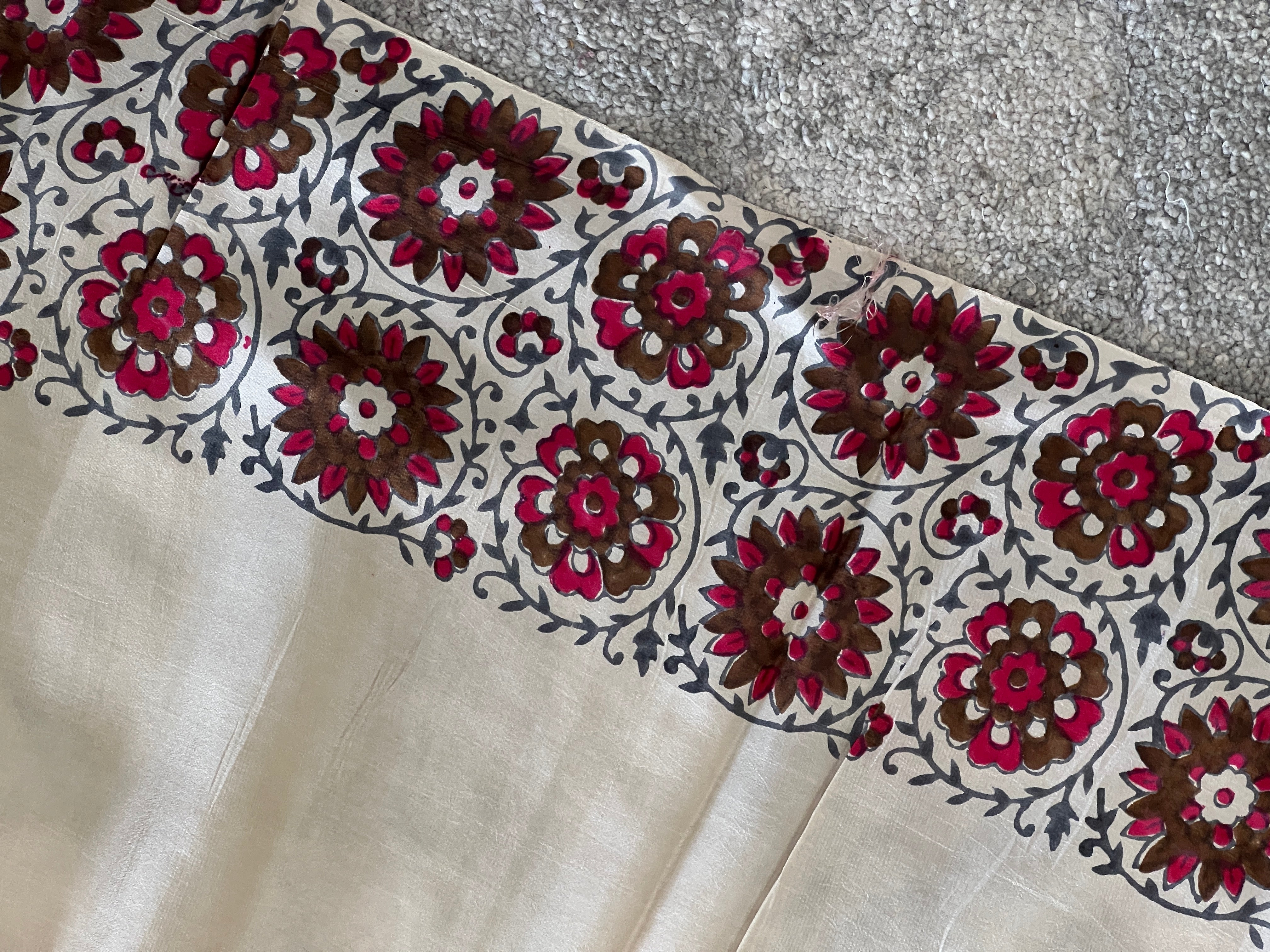 - Style: Block Printed, Solid Borders, Floral Patterned Pallu