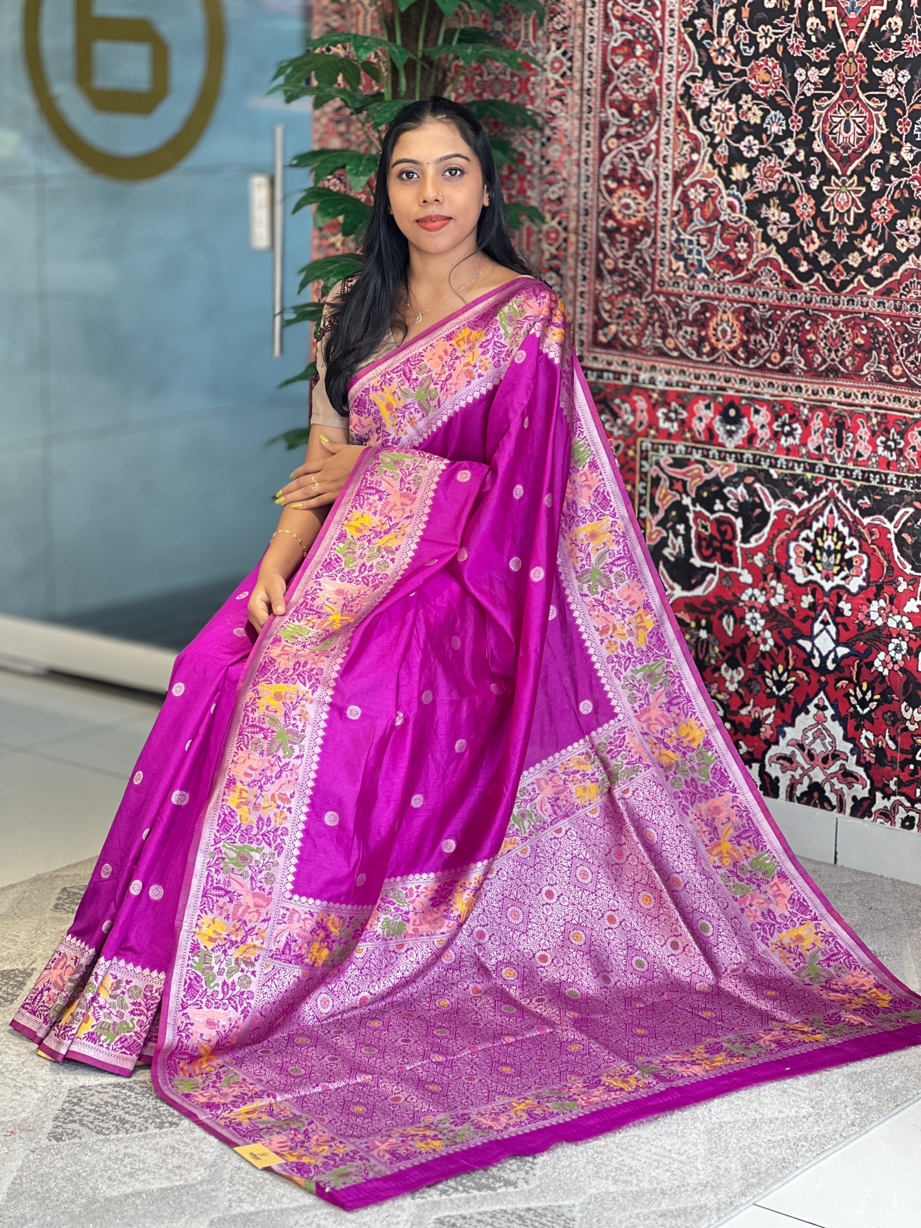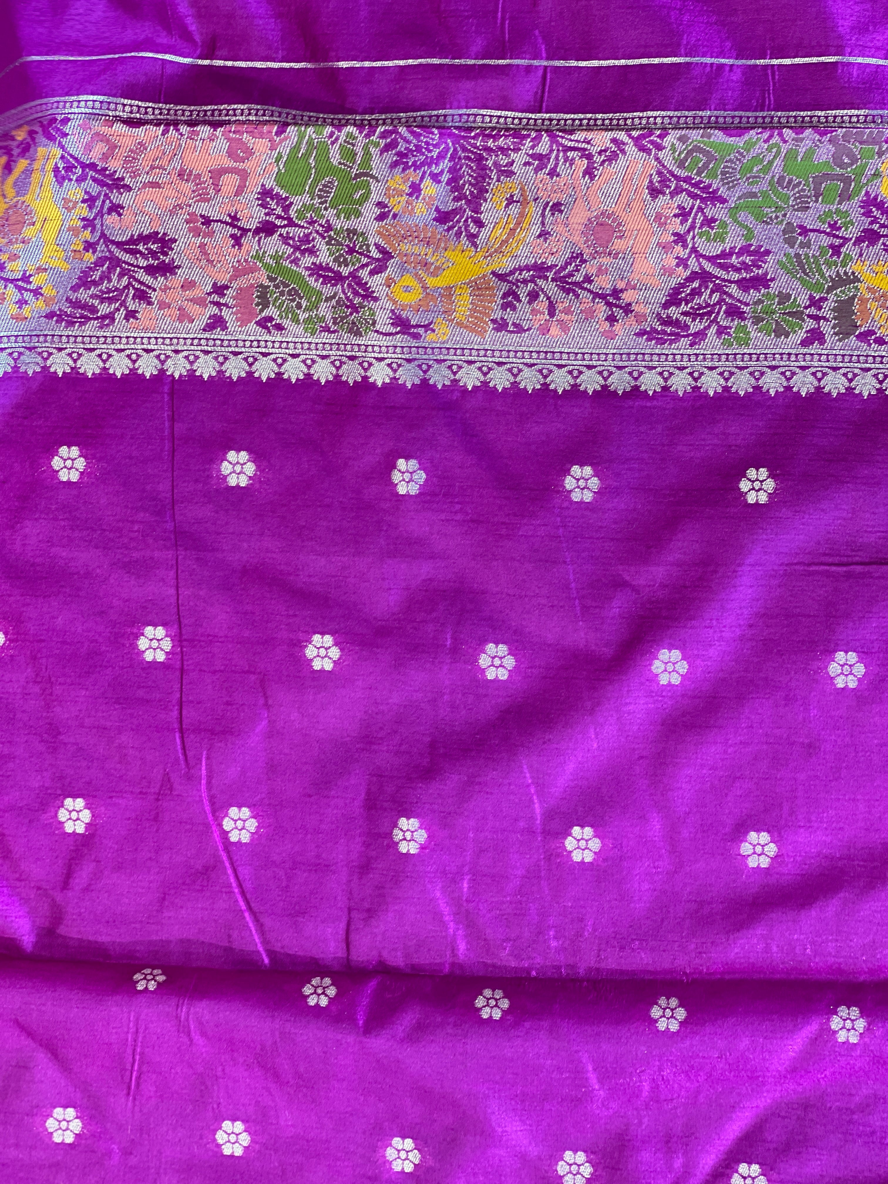 - Style: Silver Zari Weaved, Scattered Butta Detailing, Zari & thread Weaved Animals Patterned Borders, Thread & Zari Weaved Rich & Brocade Pallu