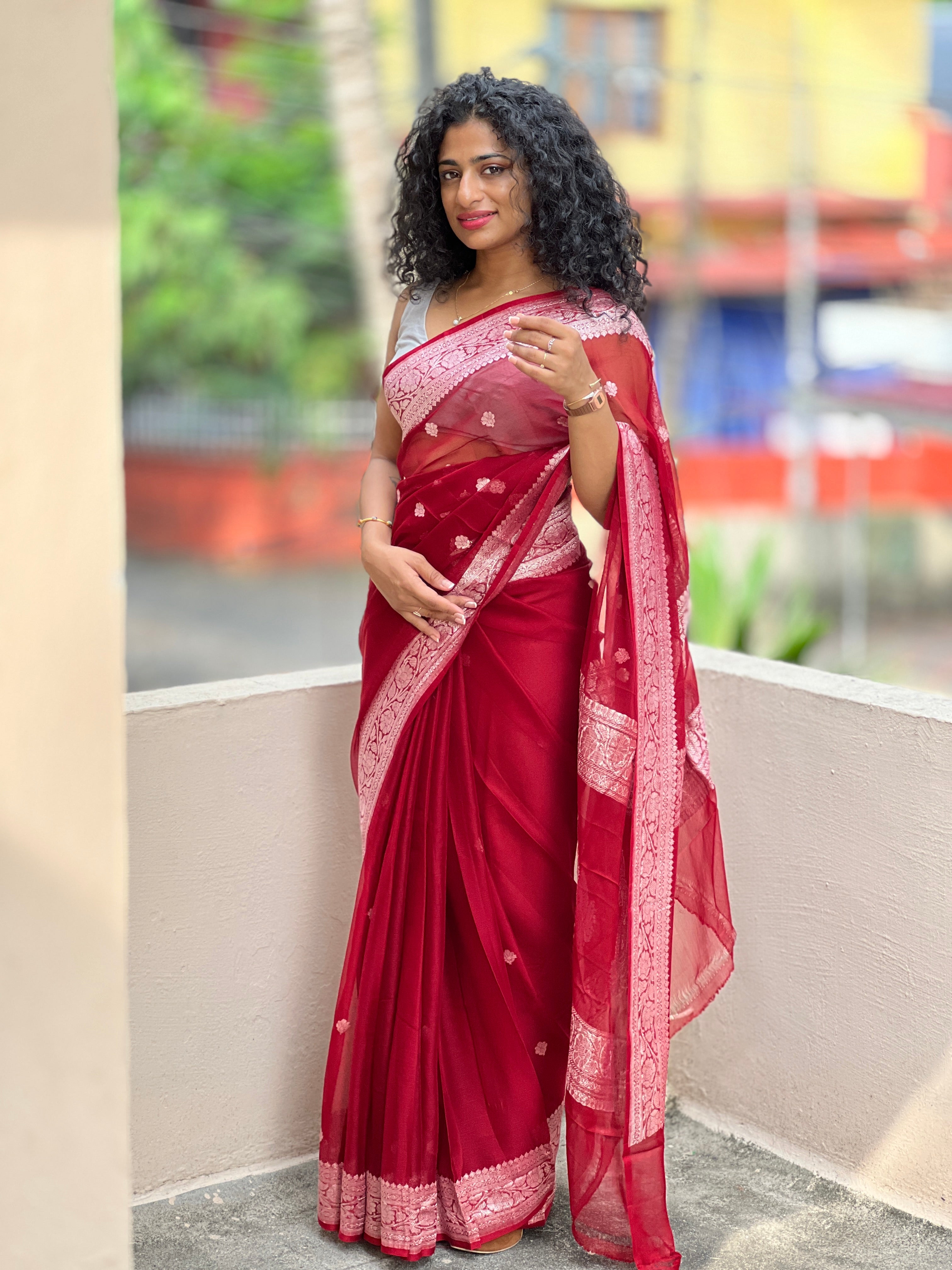 - Style: Silver Zari Weaving Pattern