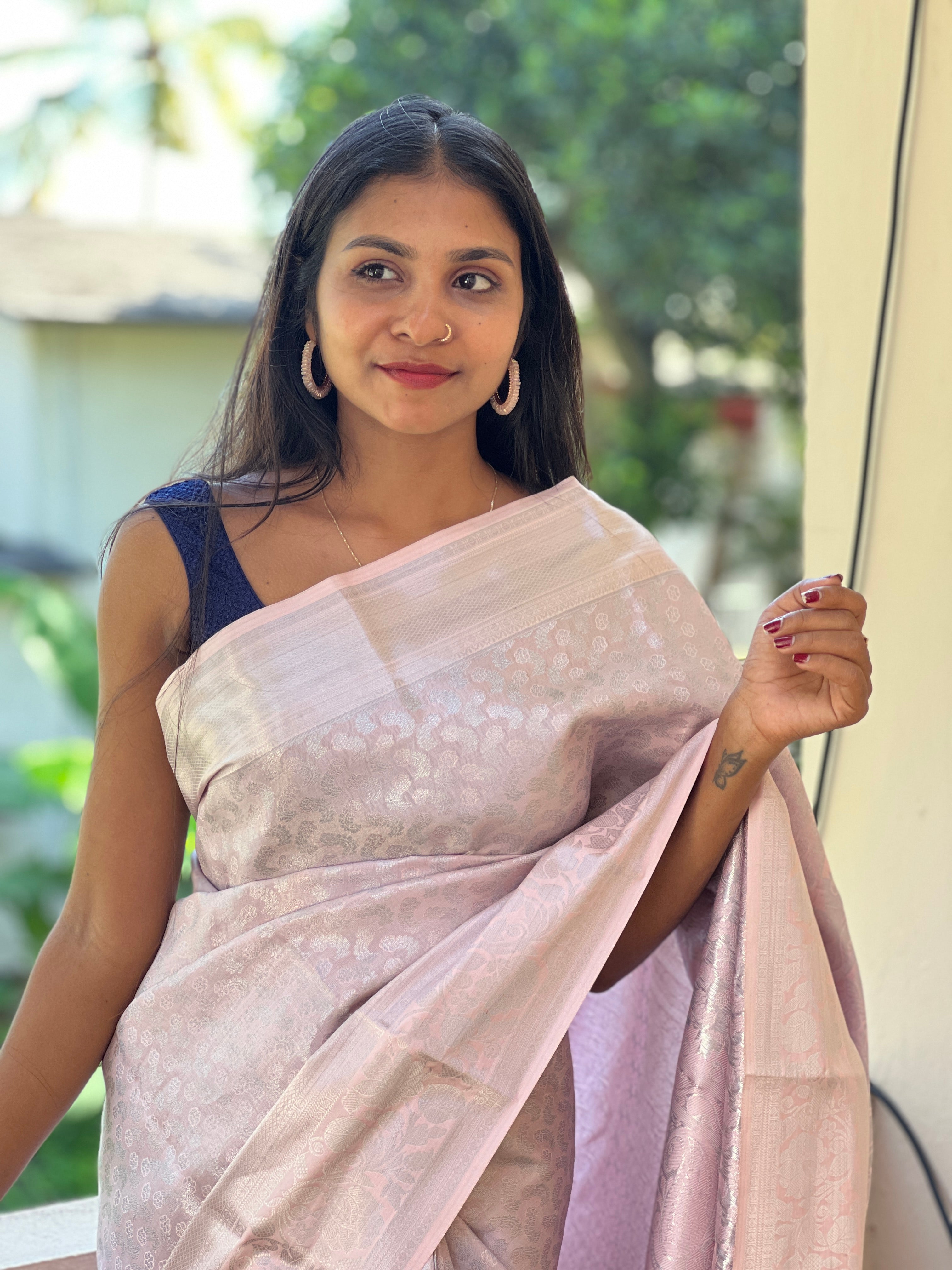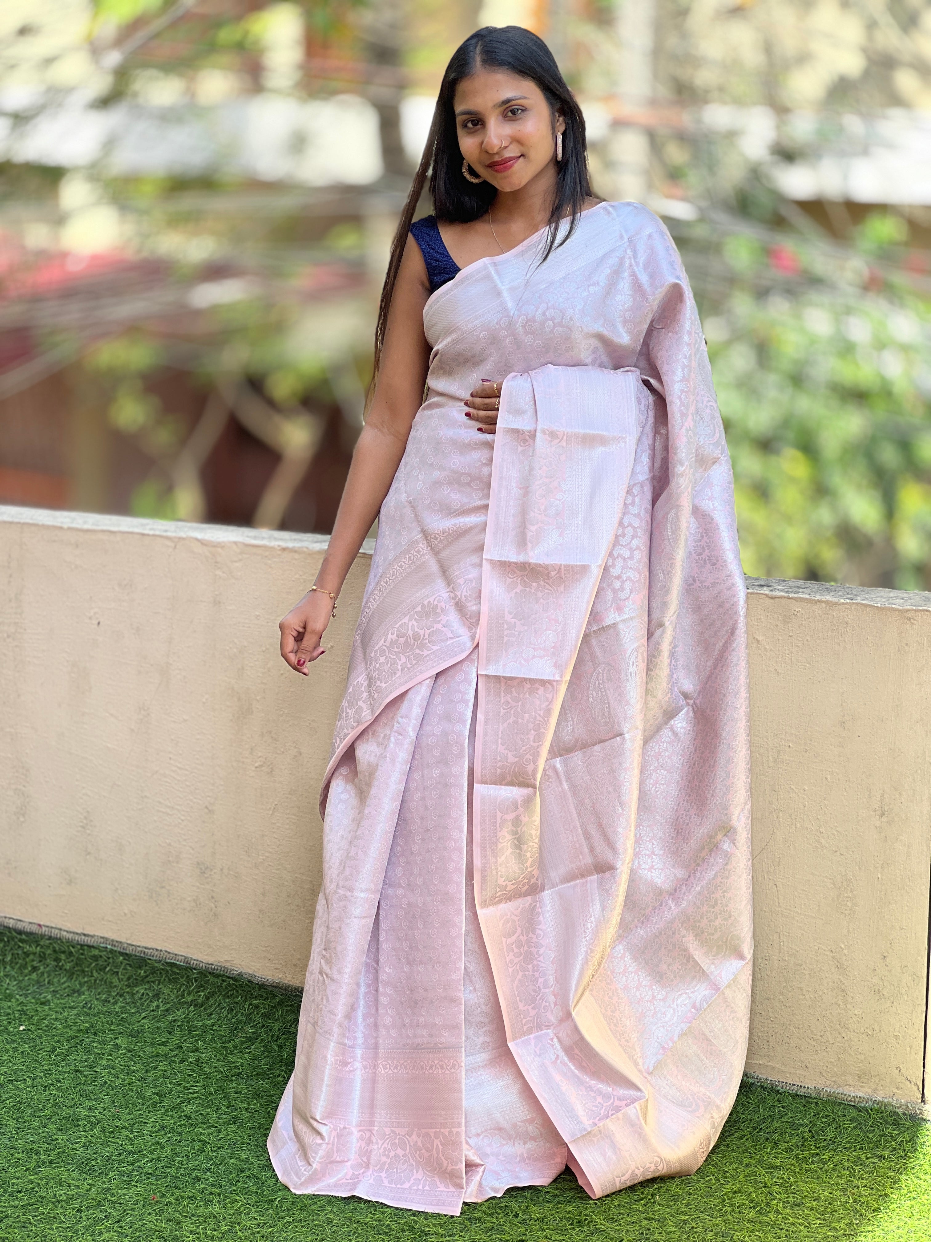 - Style: Silver Zari Weaving Pattern