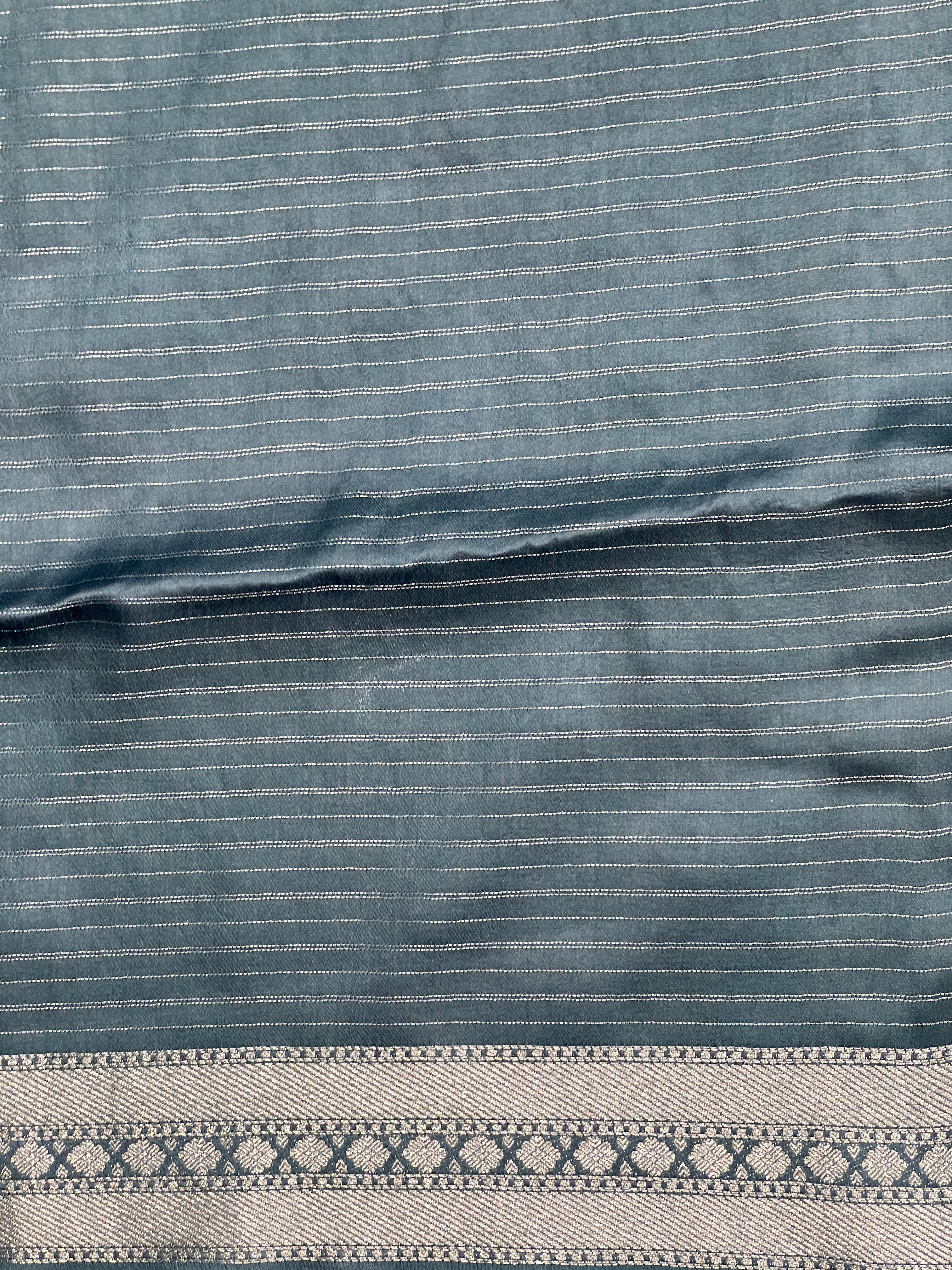 - Style: Geometric pattern, Silver Zari Weaving, Brocade Pallu, Border Detailing, Tassels Attached