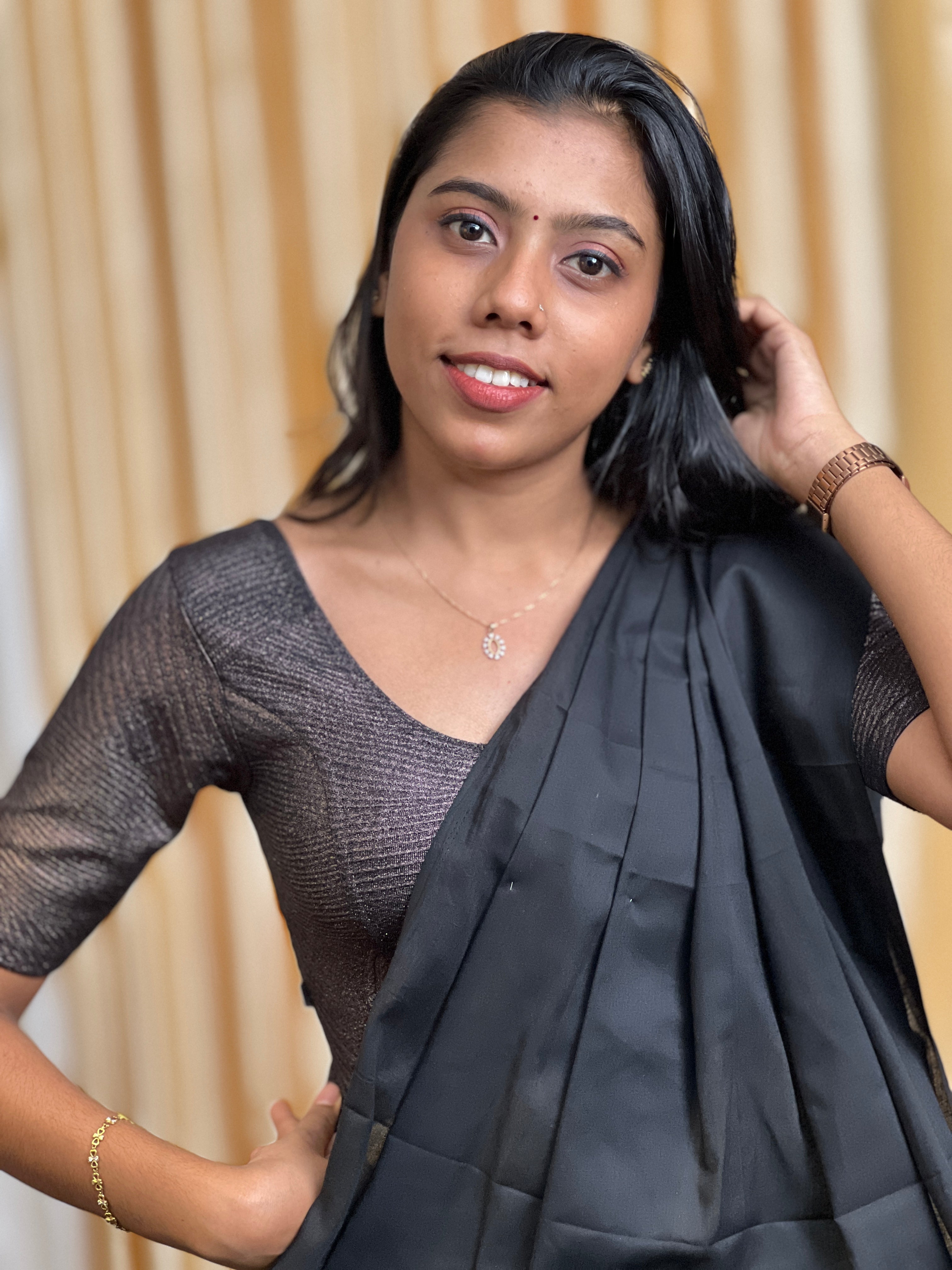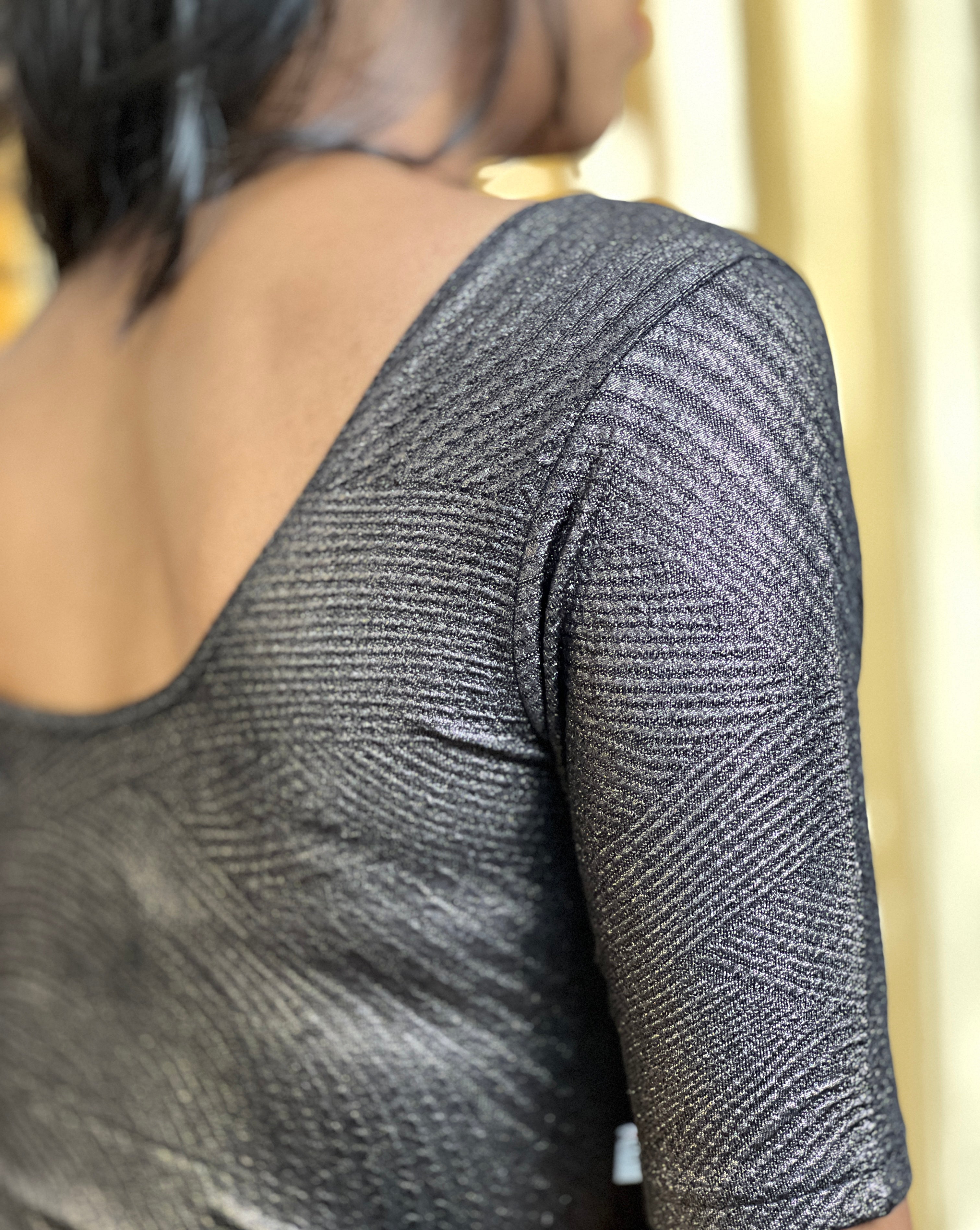 • Solid Patterned Knitted Shimmer Stitched Blouse | ALA123
