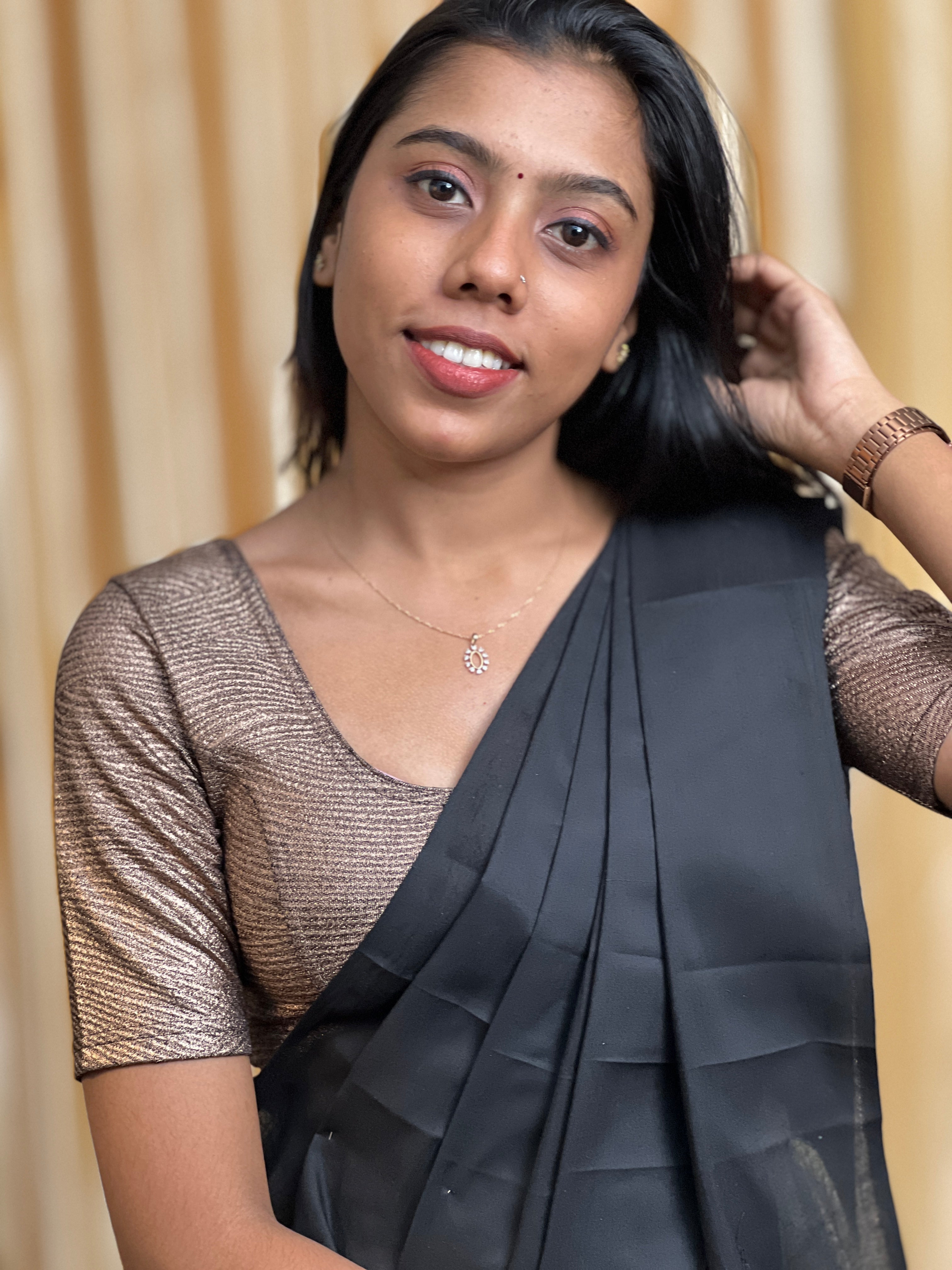 • Solid Patterned Knitted Shimmer Stitched Blouse | ALA124