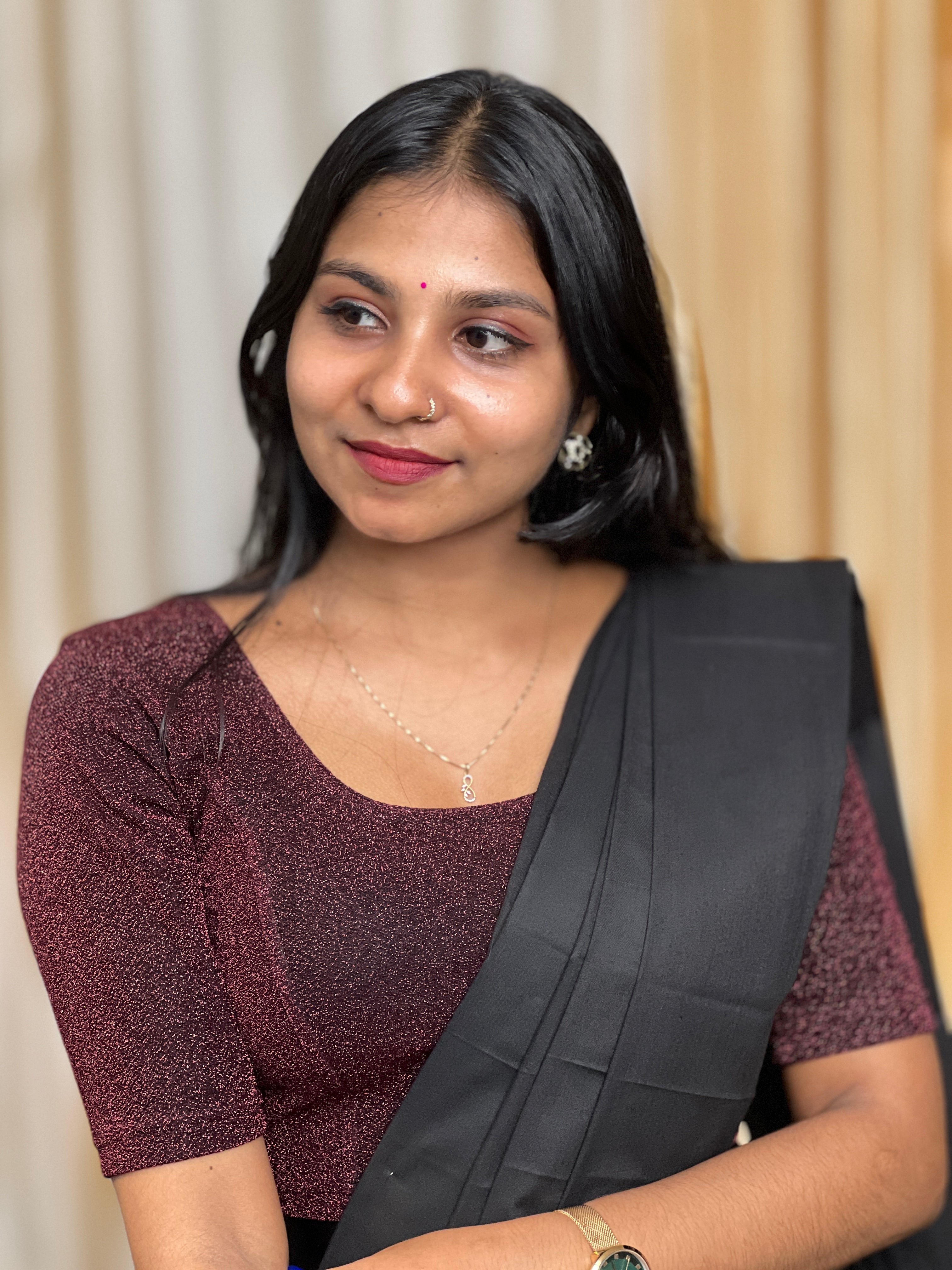• Stretchable Solid Knitted Shimmer Stitched Blouse | ALA105