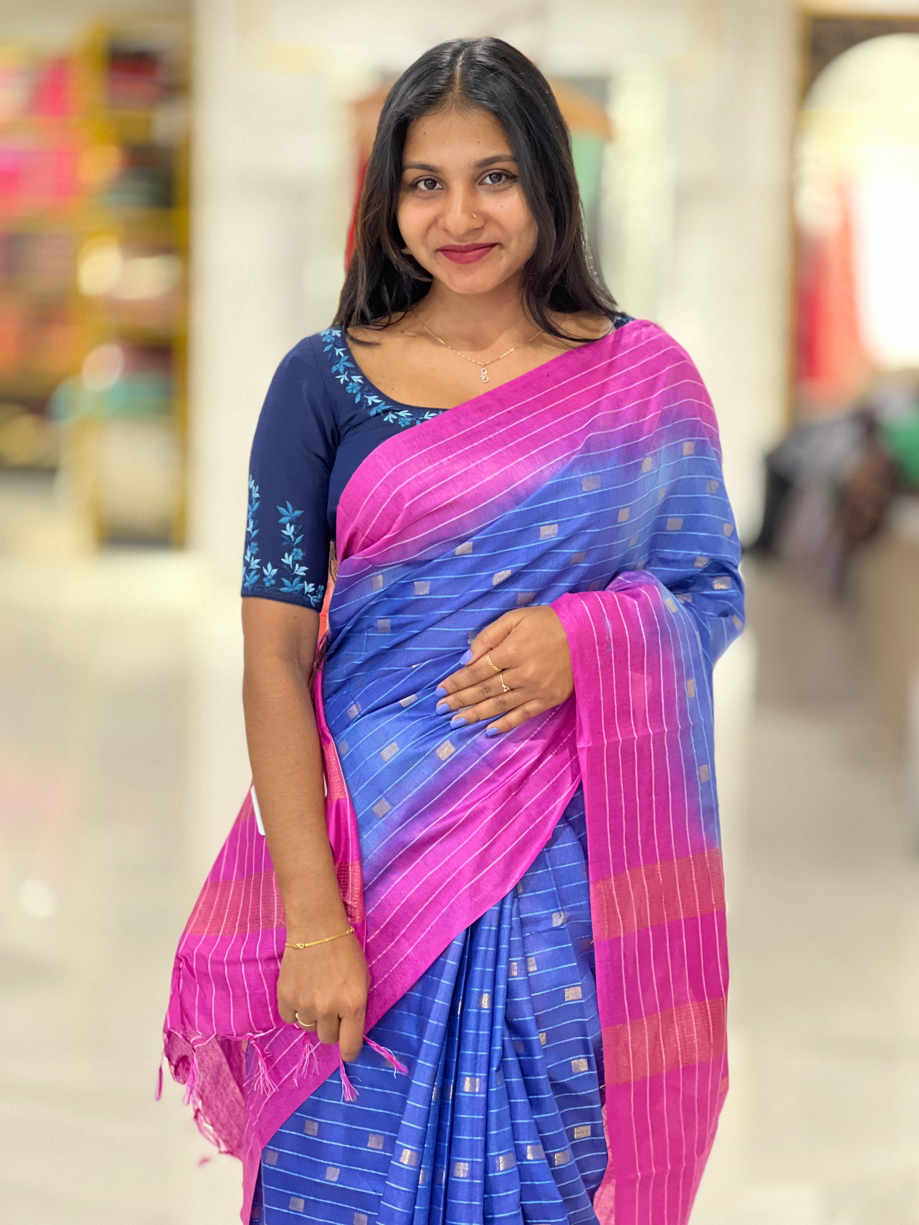 • Style: Double Color Pattern, Horizontal Stripe Pattern, Zari Box Patterned Motifs, Zari Stripe Patterned Pallu
