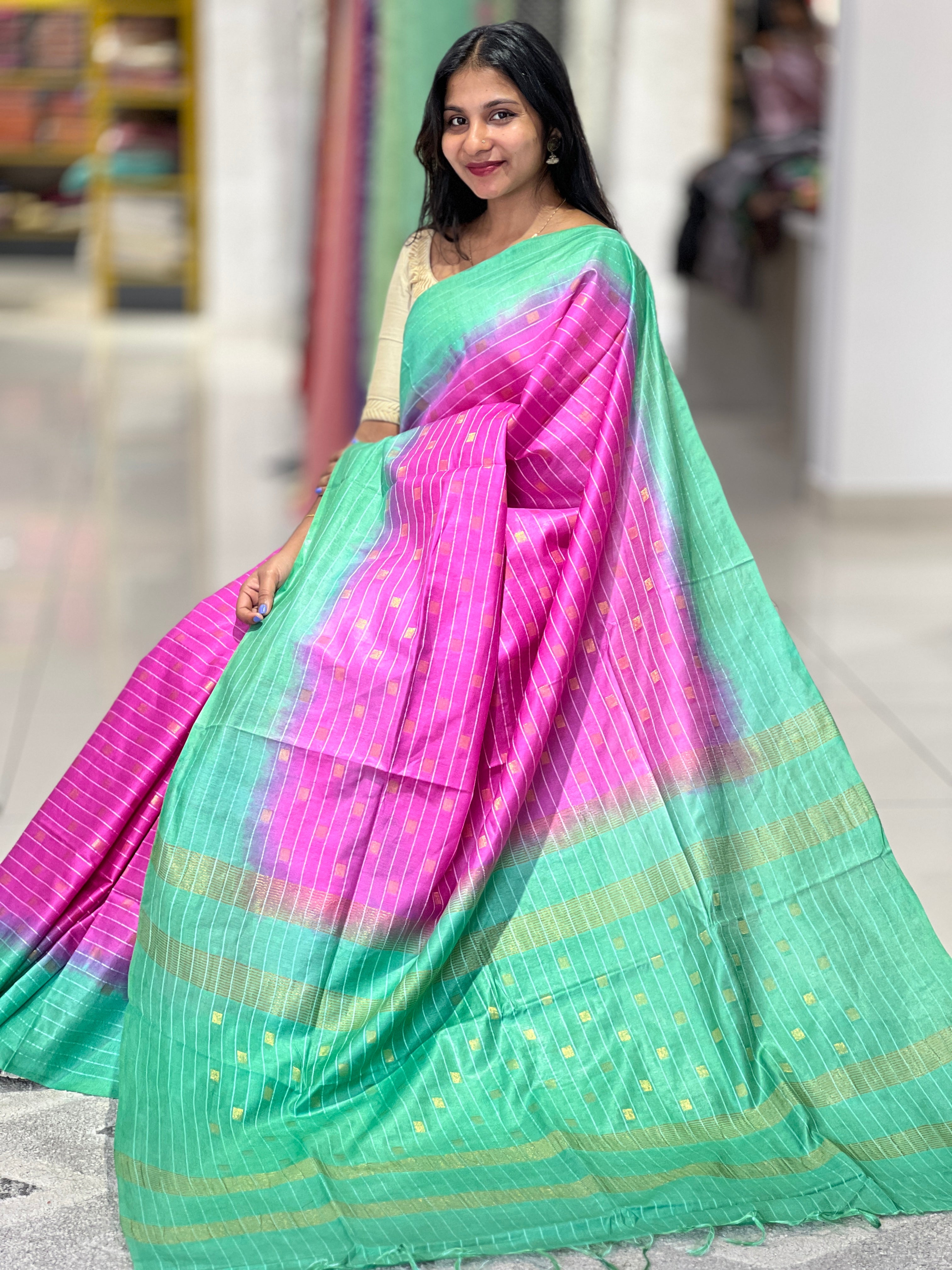 • Stripe Pattern With Buta Detailed Bhagalpuri Saree | NHH401