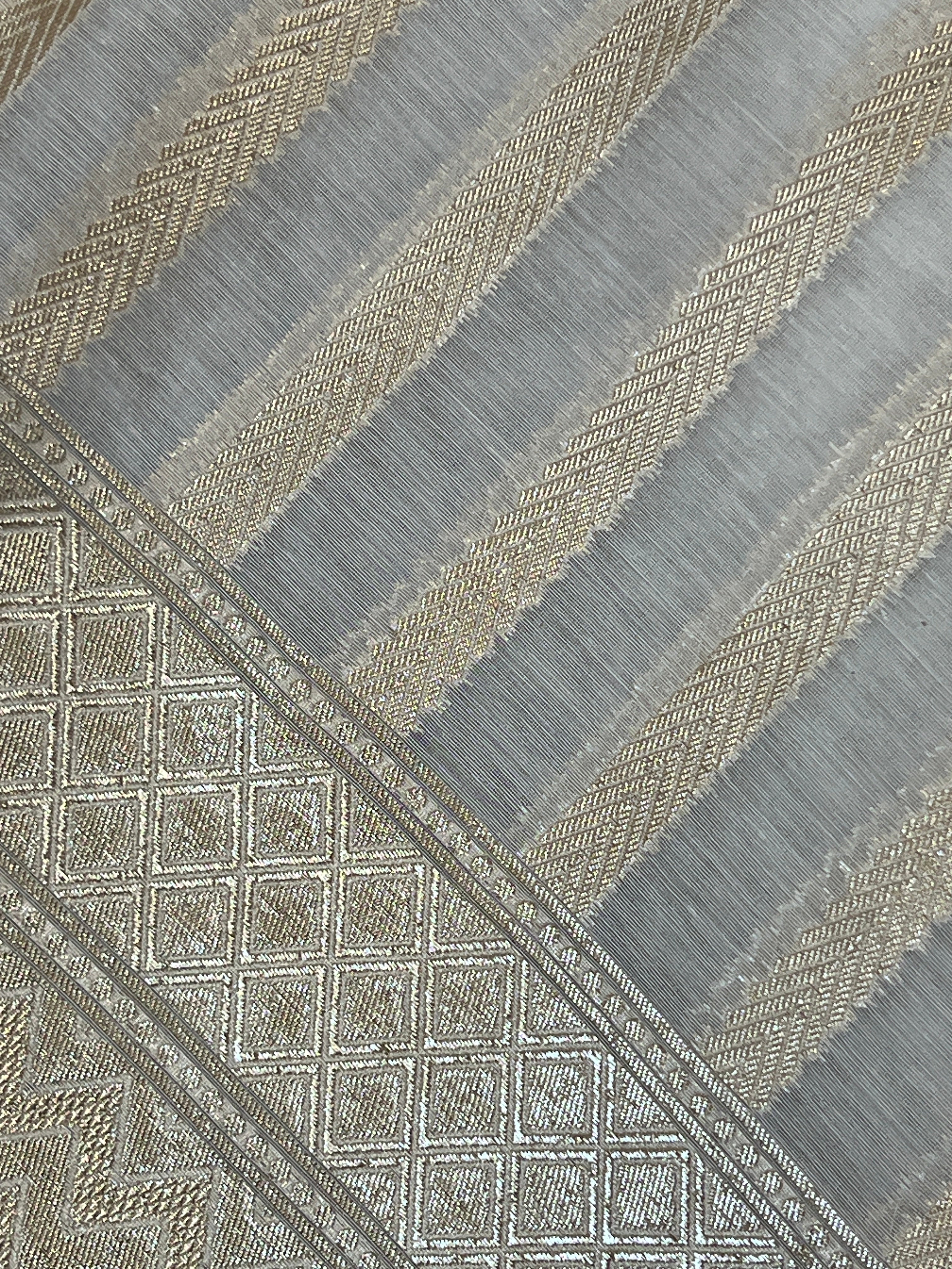 - Style: Stripe Pattern, Zari Woven, Diamond Patterned Borders, Diamond & Zig Zag Patterned Anjal Portion