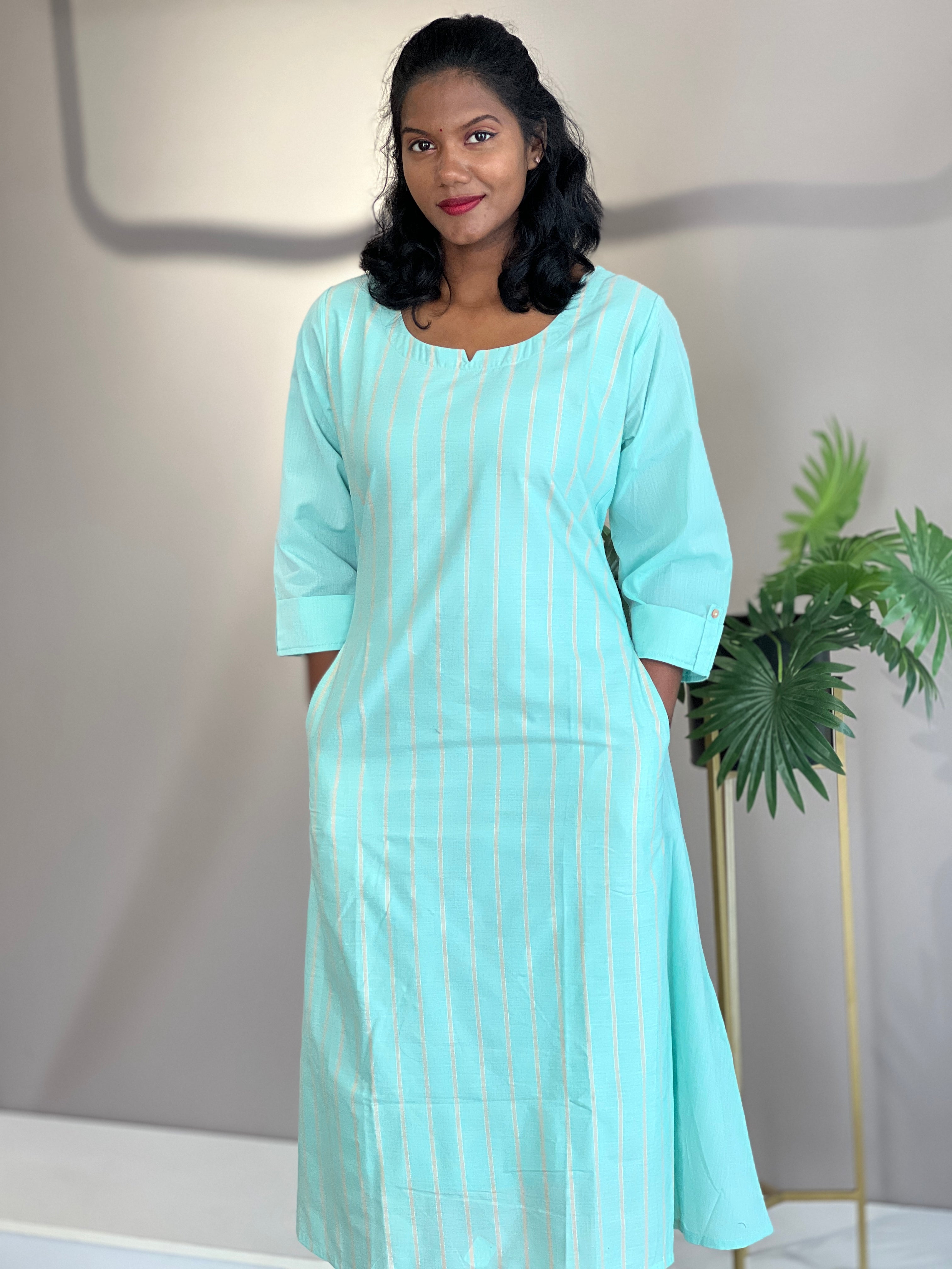 - Style: Stripe Pattern With Lurex Yar Weaved, A-Line Pattern, With Lining, With Pockets