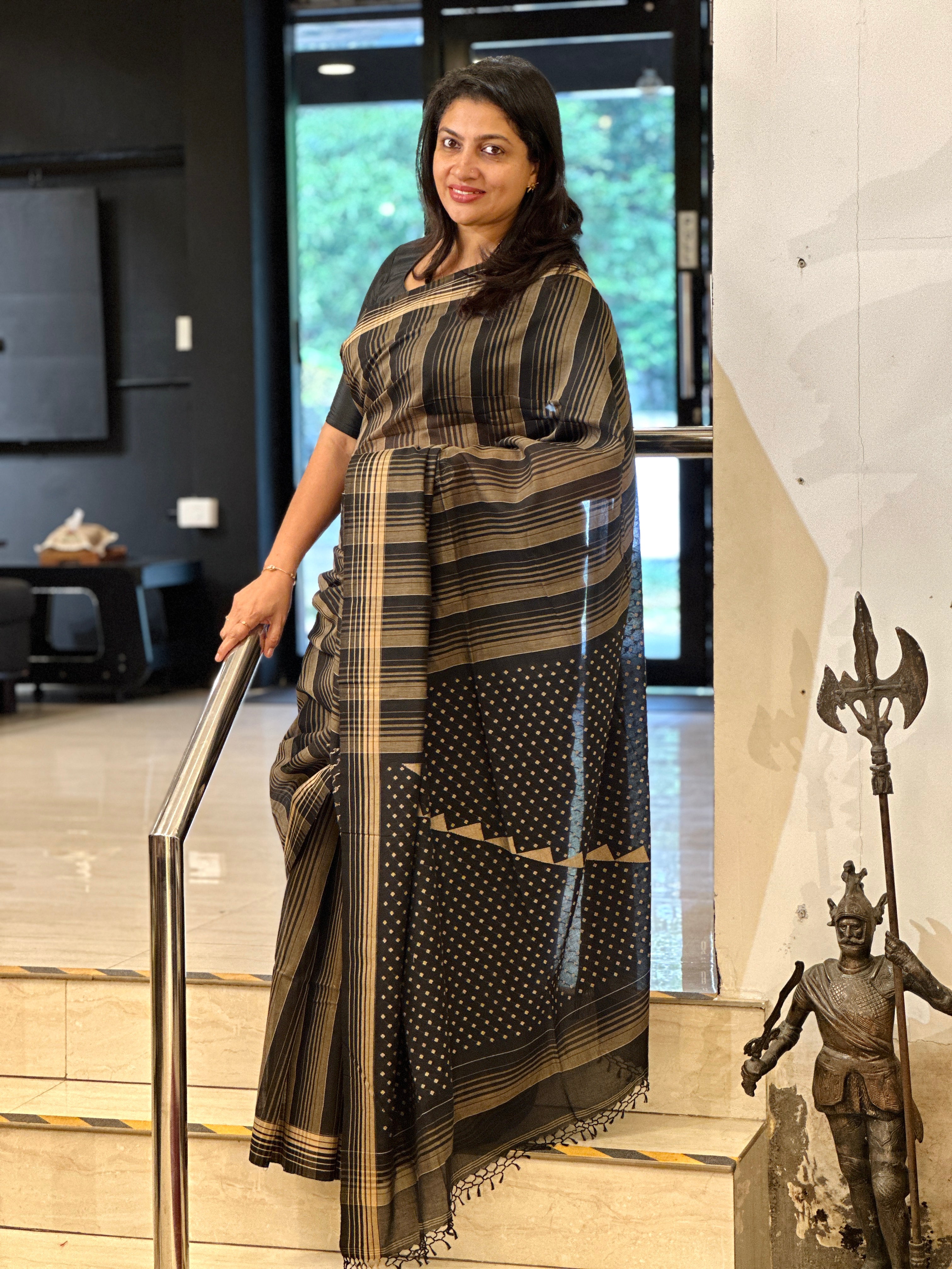 - Style: Handloom, Stripe Weaving Pattern, Diamond & Temple Detailed Pallu