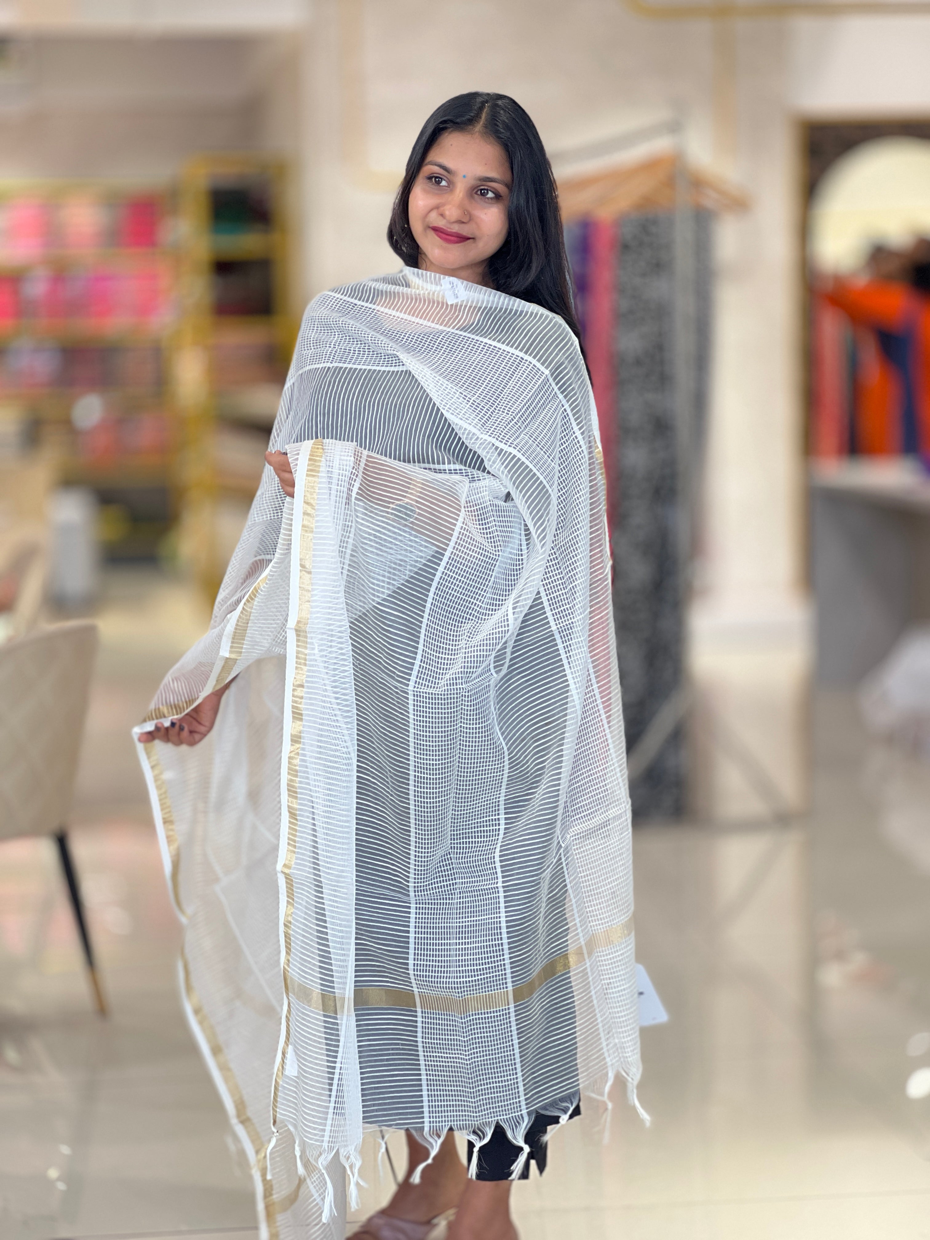 - Style: Zari Border Detailing, Horizontal & Vertical Stripe Pattern