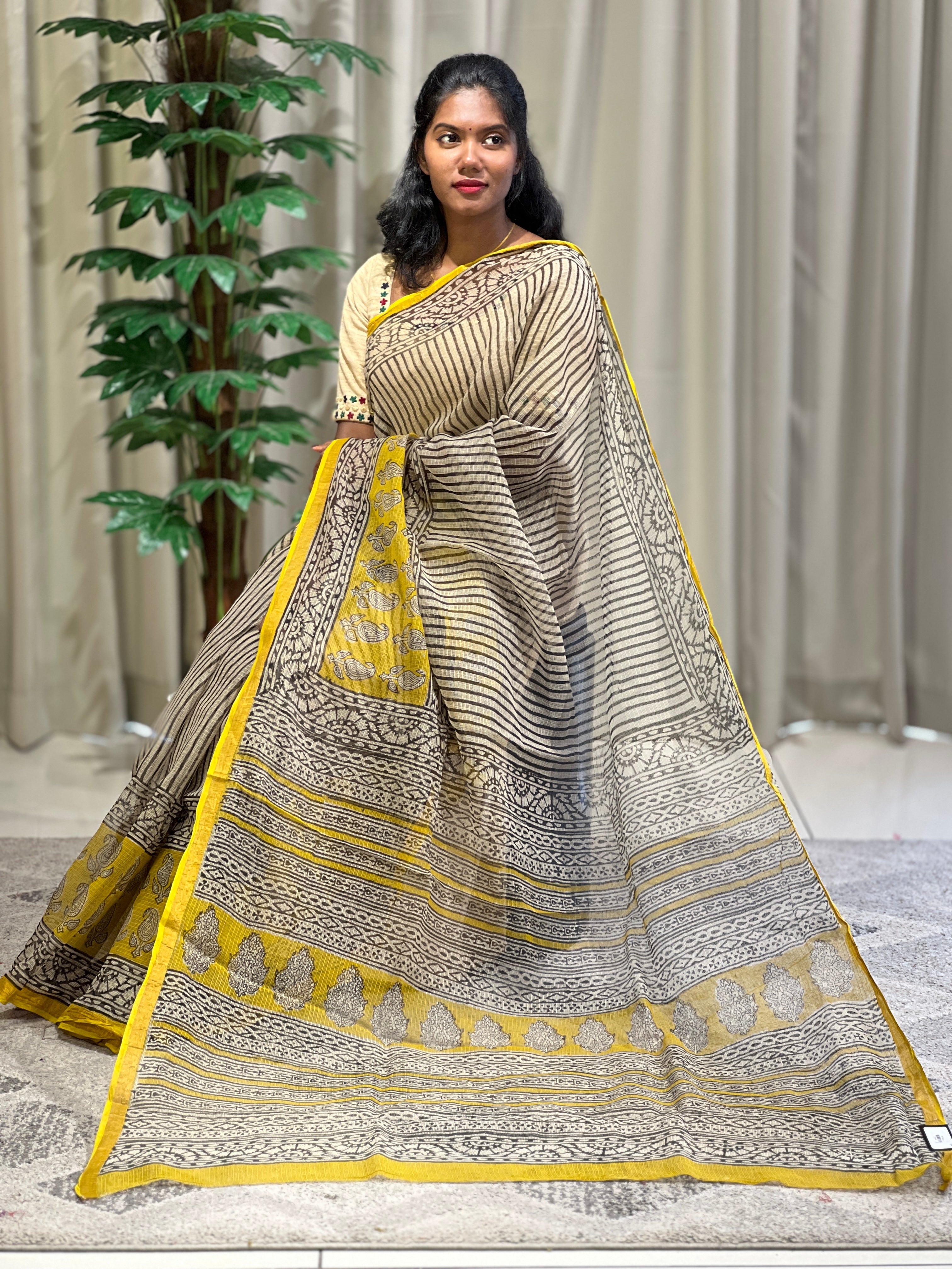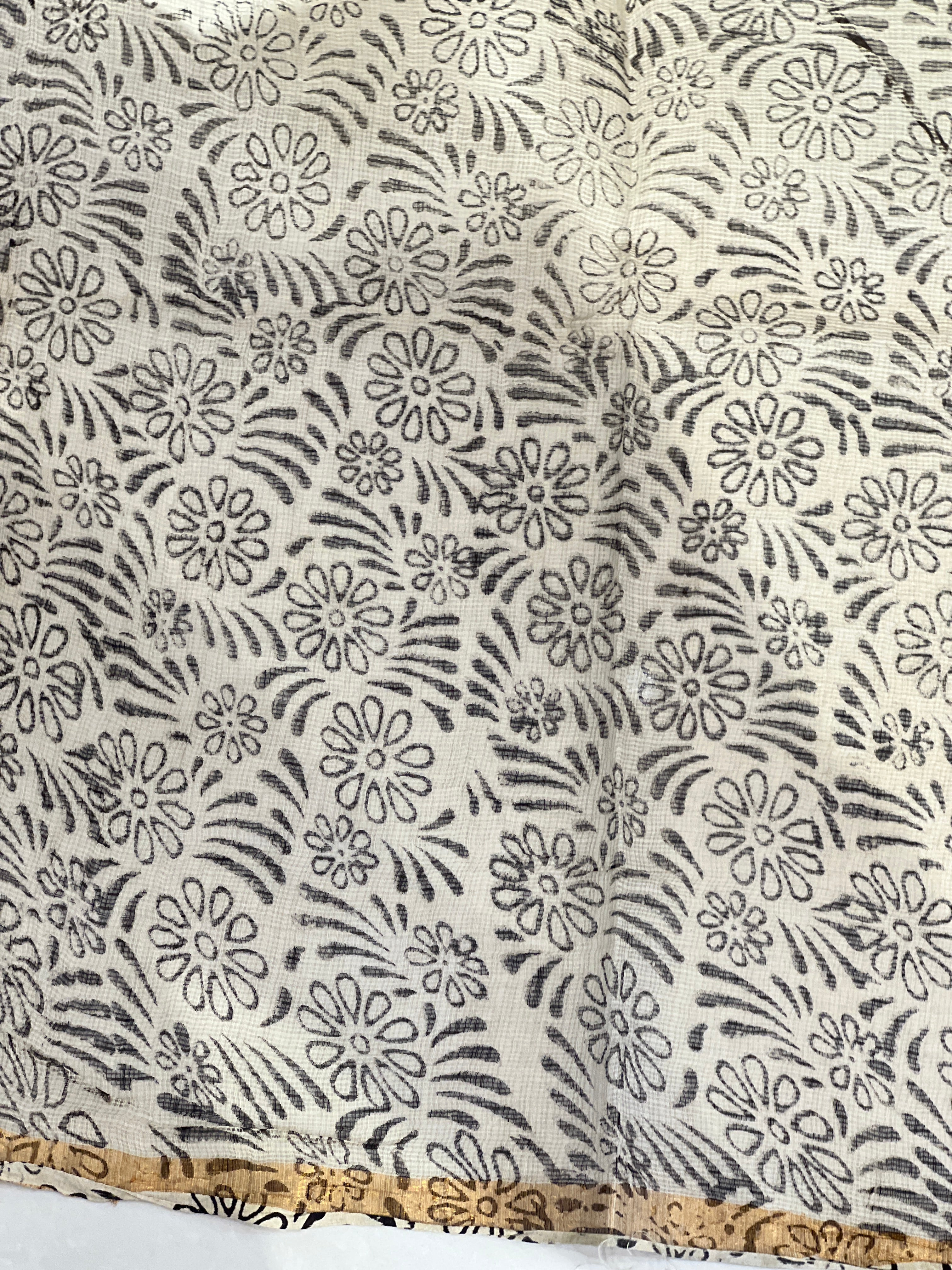 - Style: Screen Printed, Paisley & Stripe Pattern, Thin Zari Borders