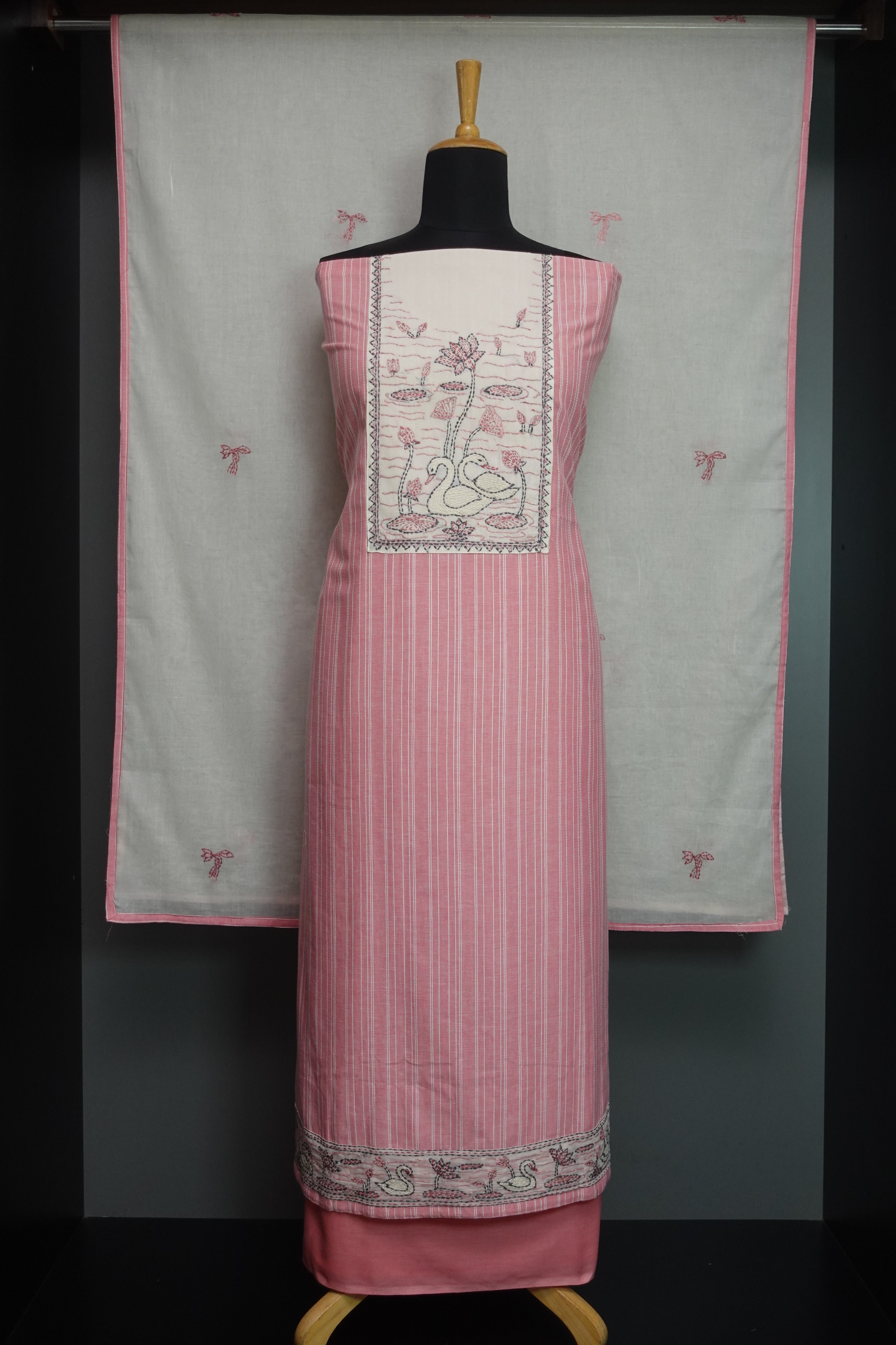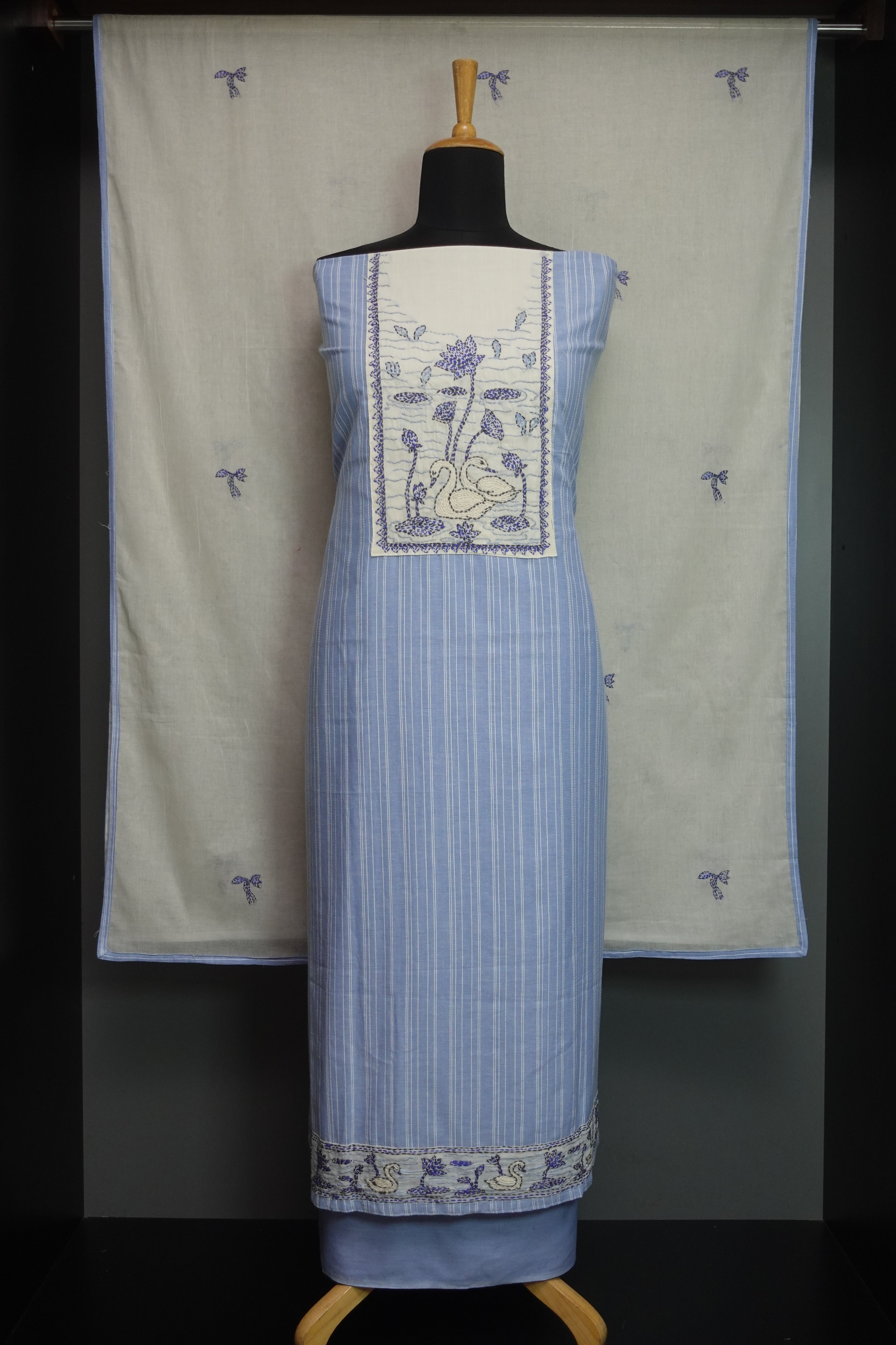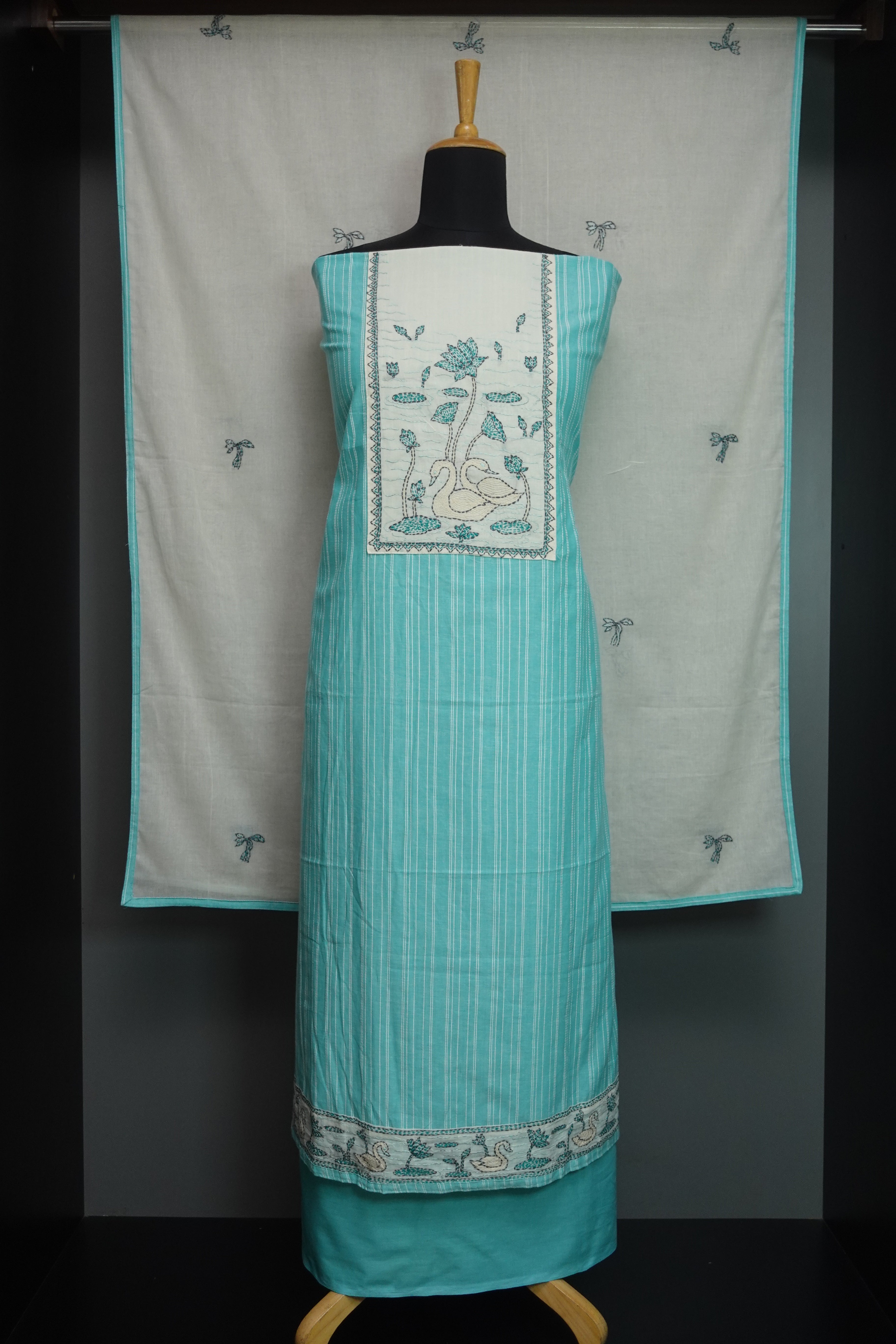 - Style: Stripe Weaving Pattern, Hand Kantha Yoke Embroidery Design
