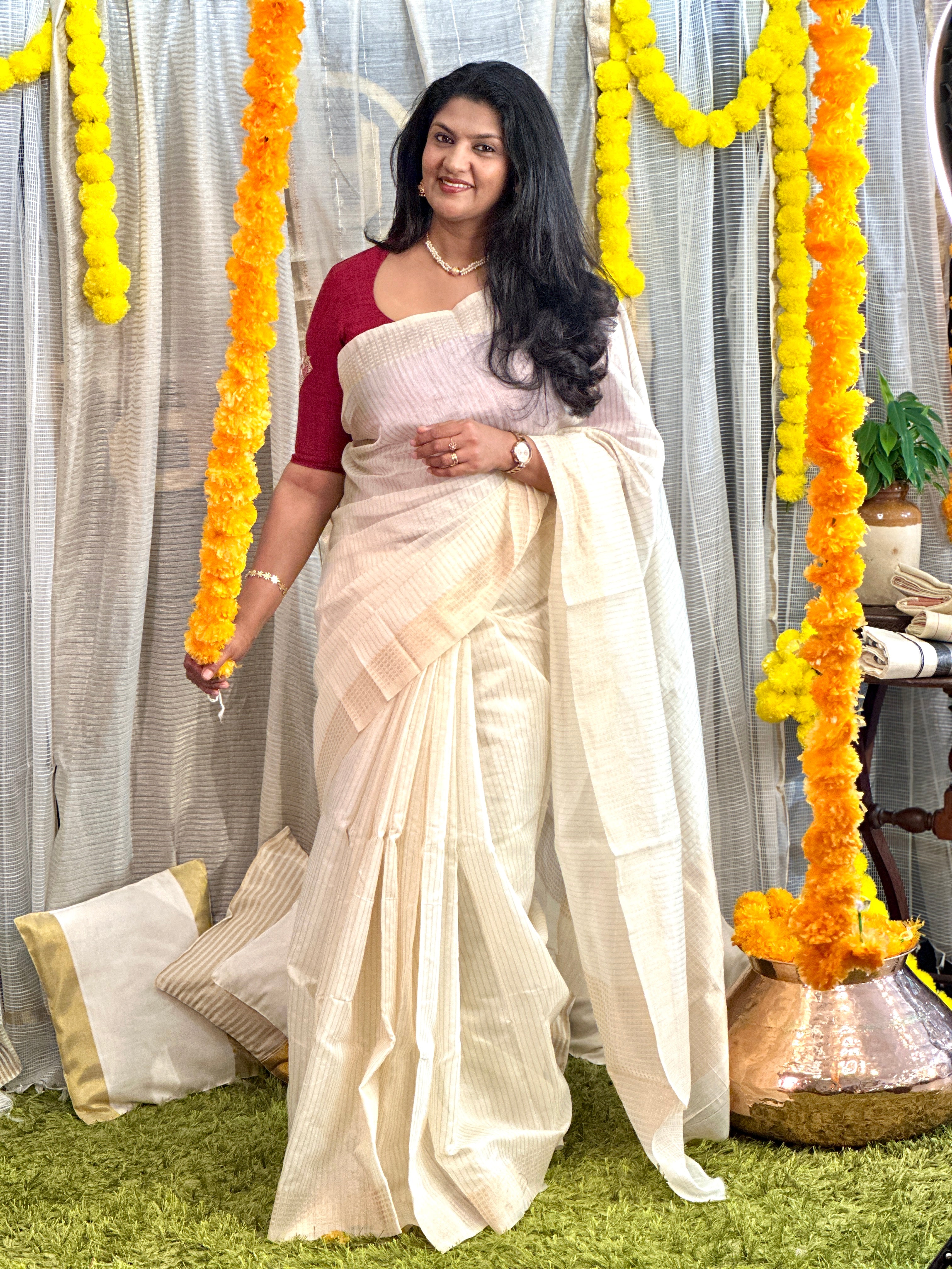 - Style: Stripe Weaving Pattern, Polka Dot Weaving Patterned Pallu & Borders