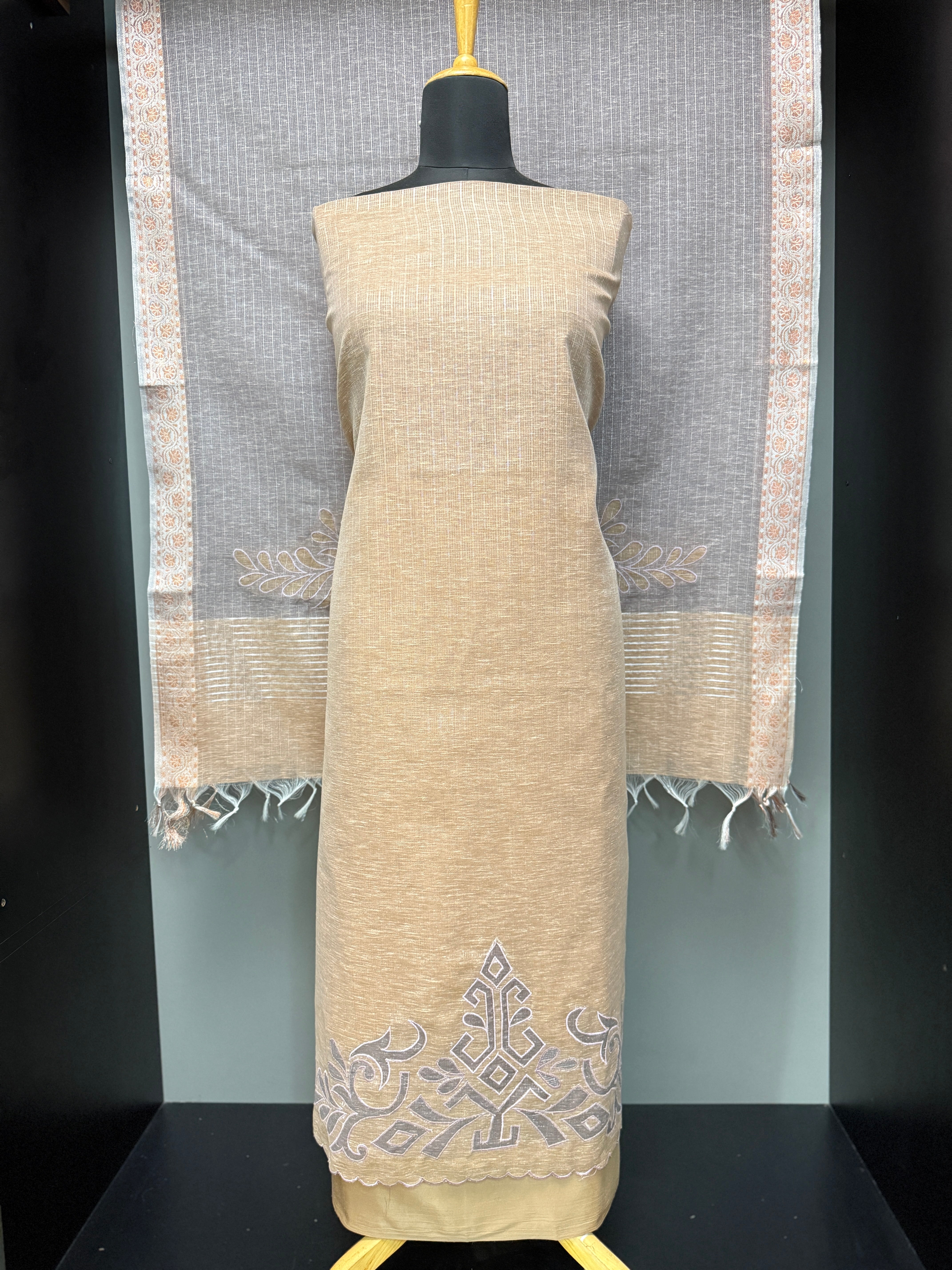 • Stripe With Applique Work Detailed Linen Salwar Set | SBP627