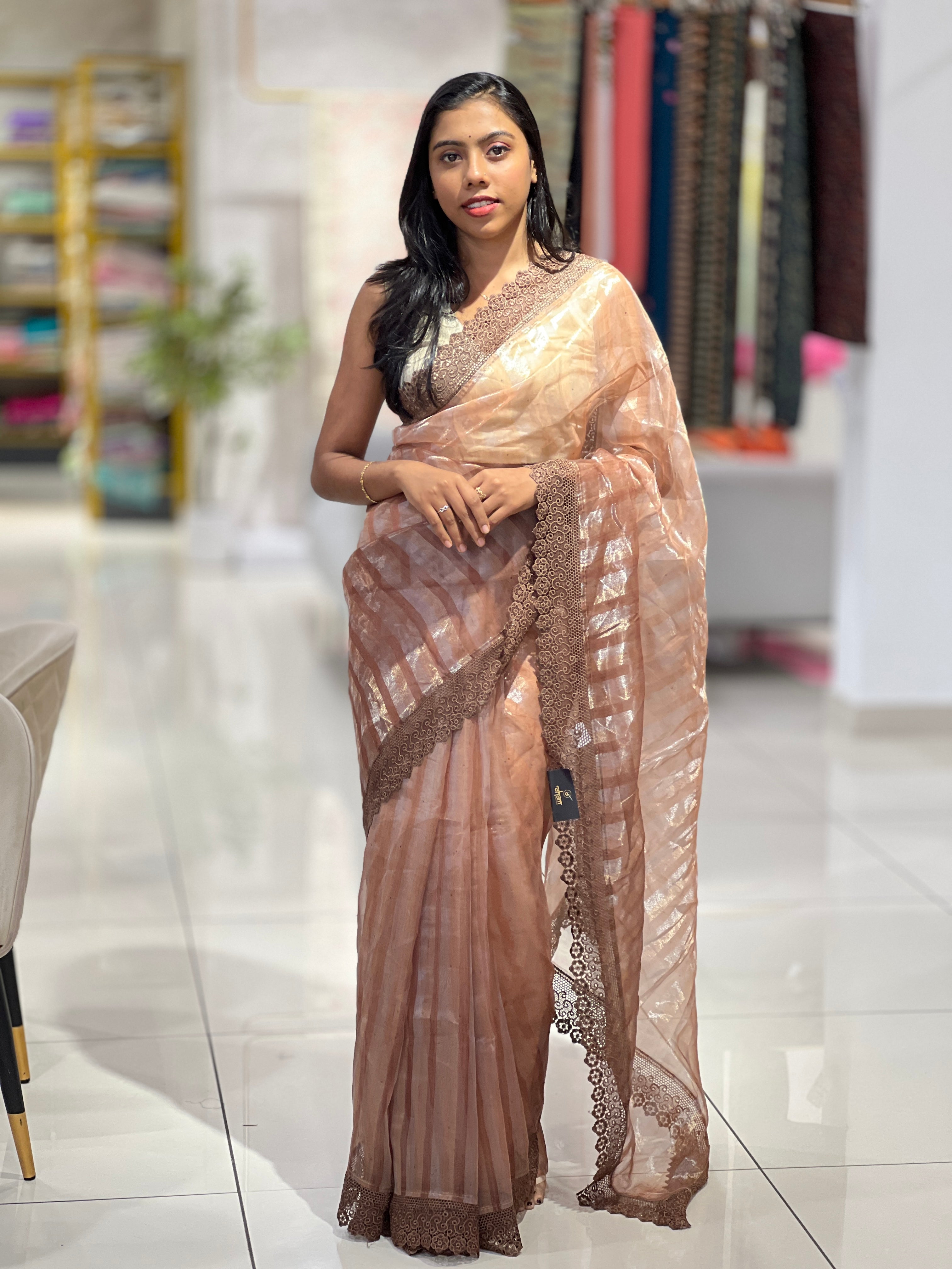 Stripes Detailed Organza Saree | SUN492 Stripes Detailed Organza Saree | SUN492