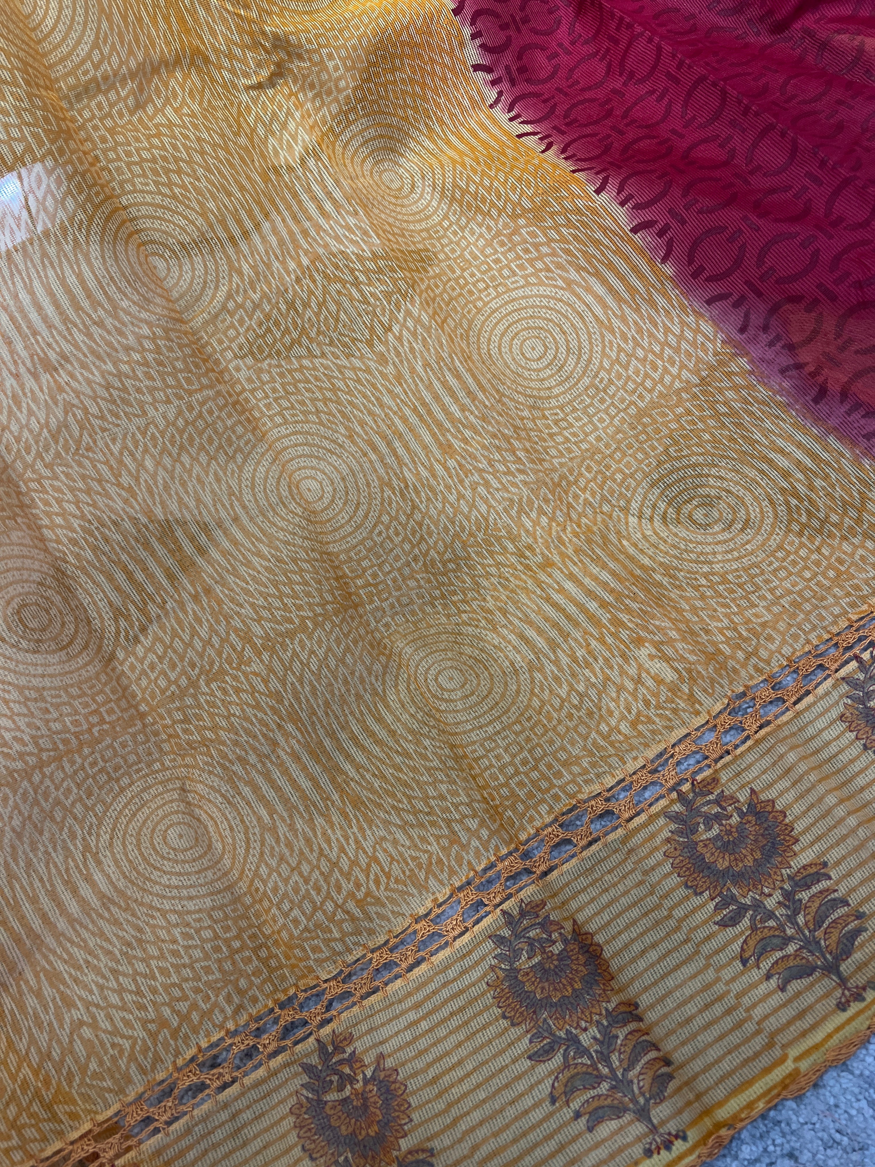 Supernet Kota Saree With Block Printed Contrast Borders | PF1054 Supernet Kota Saree With Block Printed Contrast Borders | PF1054
