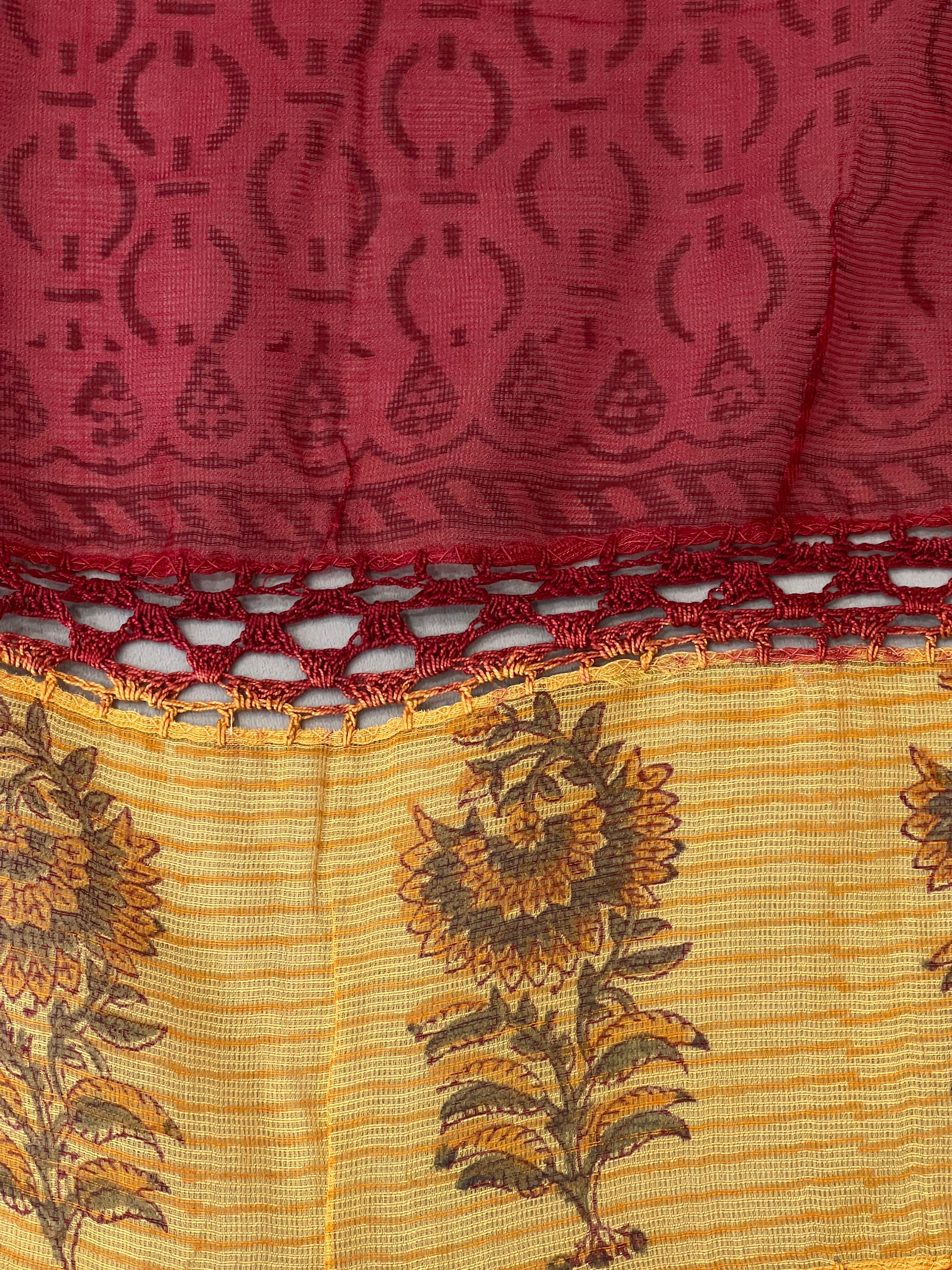 • Style: Hand Block Printed, Hand Crochet Lace Detailing, Contrast Border With Floral Buta, Geometric Pattern