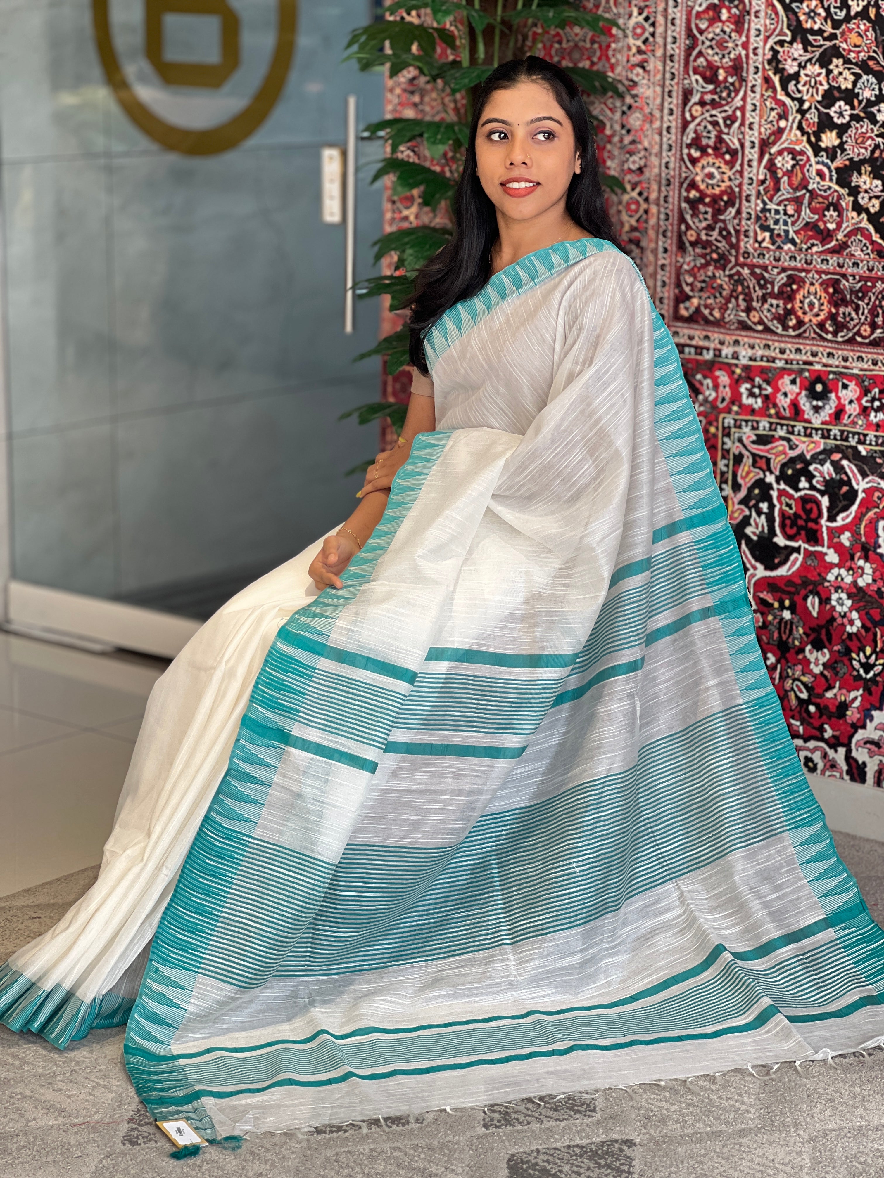 • Temple Border Detailed Chanderi Finish Saree | NHH529