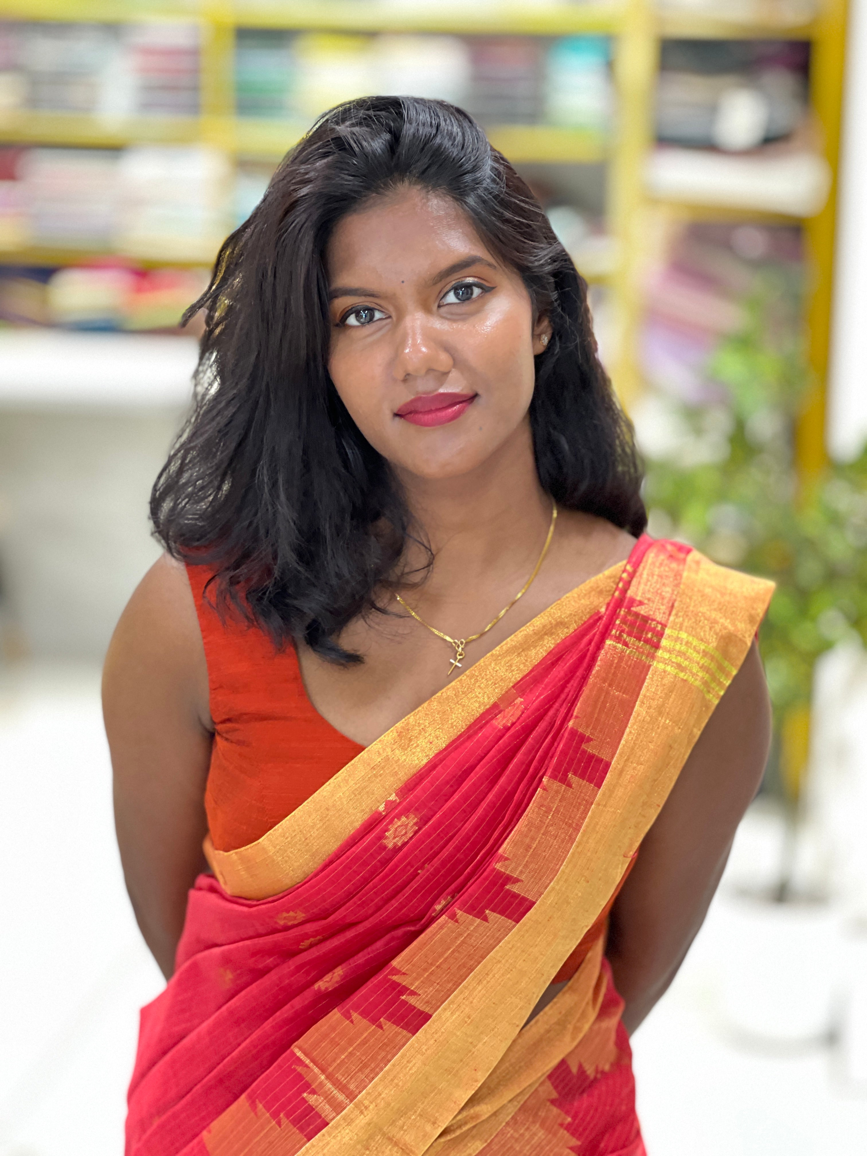 • Style: Temple Border Detailing, Stripes Detailing on Pallu, Butta Placement, Tassels Attached
