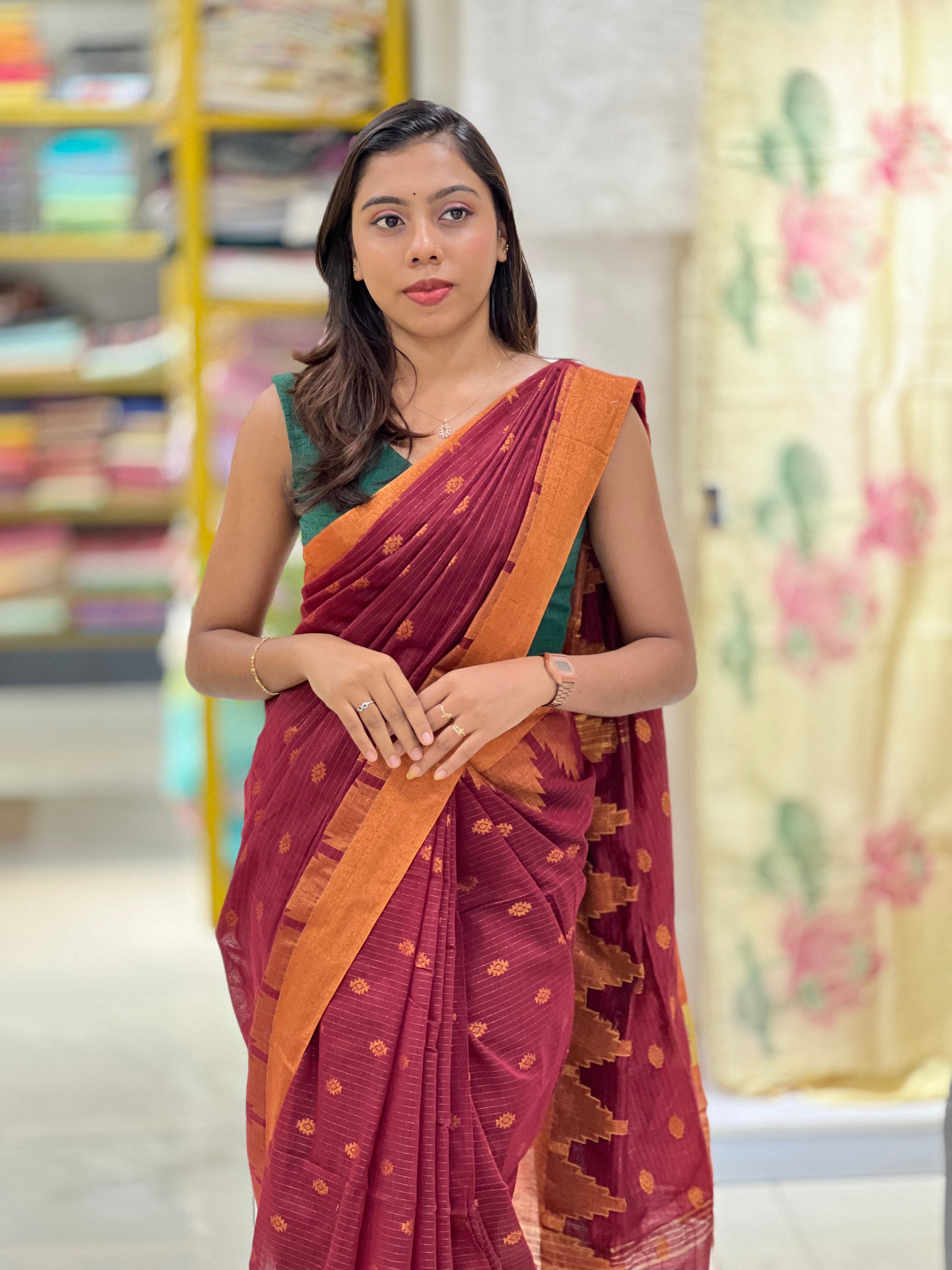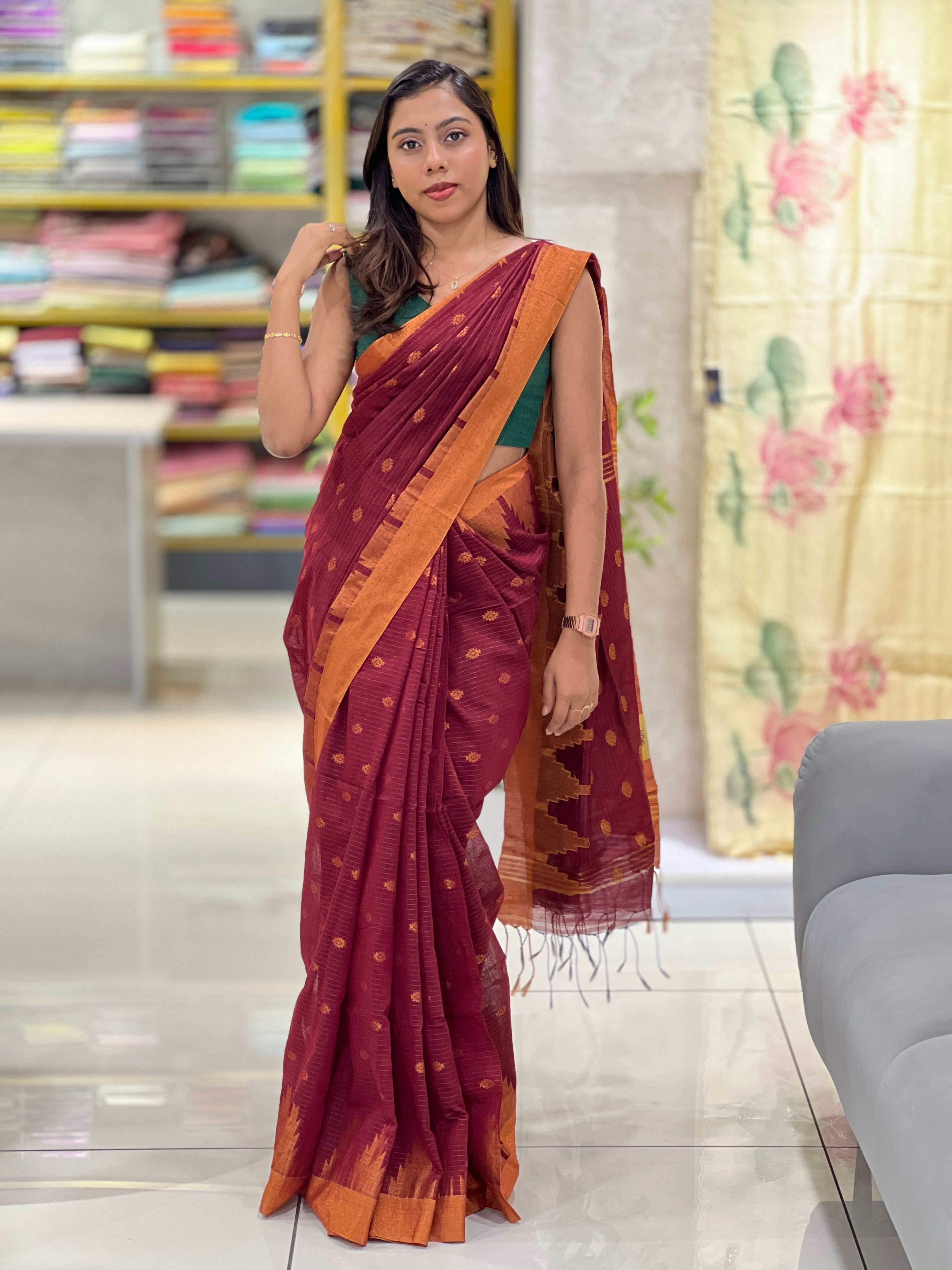 • Temple Border Detailed Cotton Silk Saree | RP772