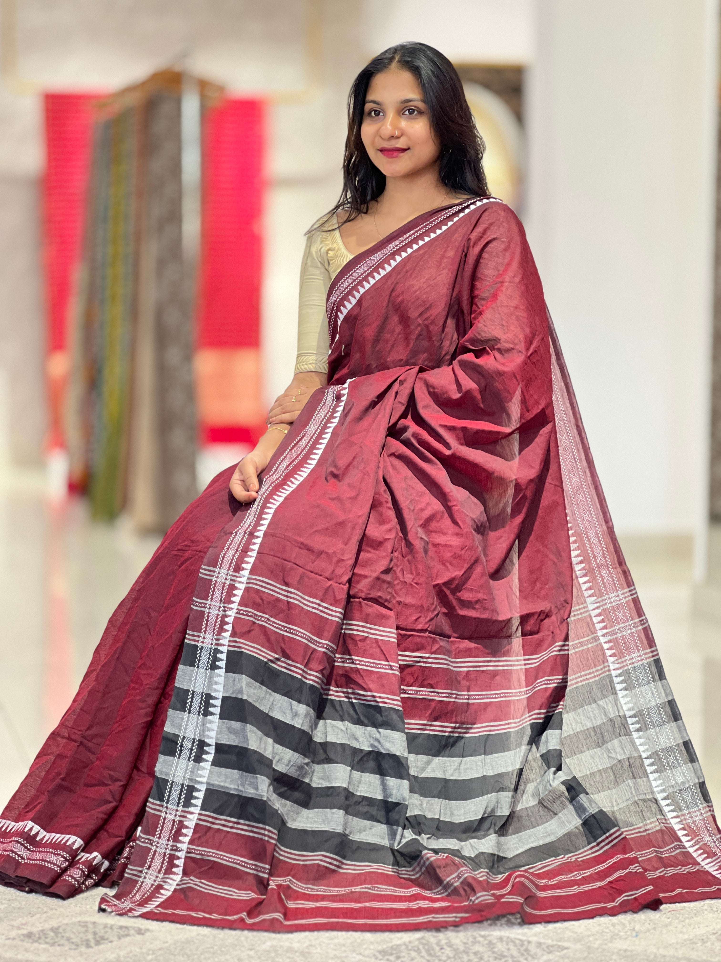 Temple Border Detailed Solid Cotton Saree (Without Blouse) | RP662