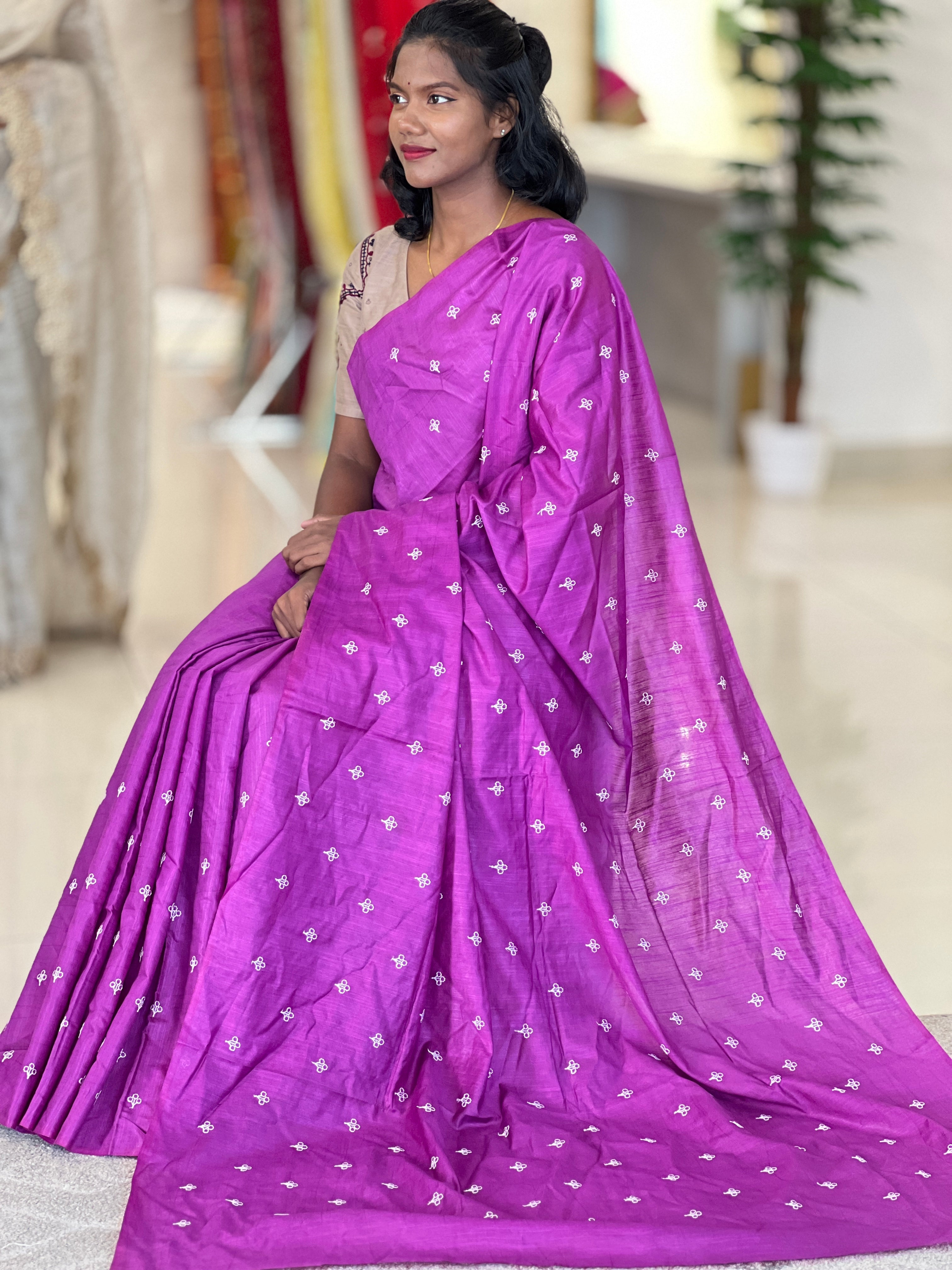 Thread Embroidered Bhagalpuri Linen Saree | NHH448