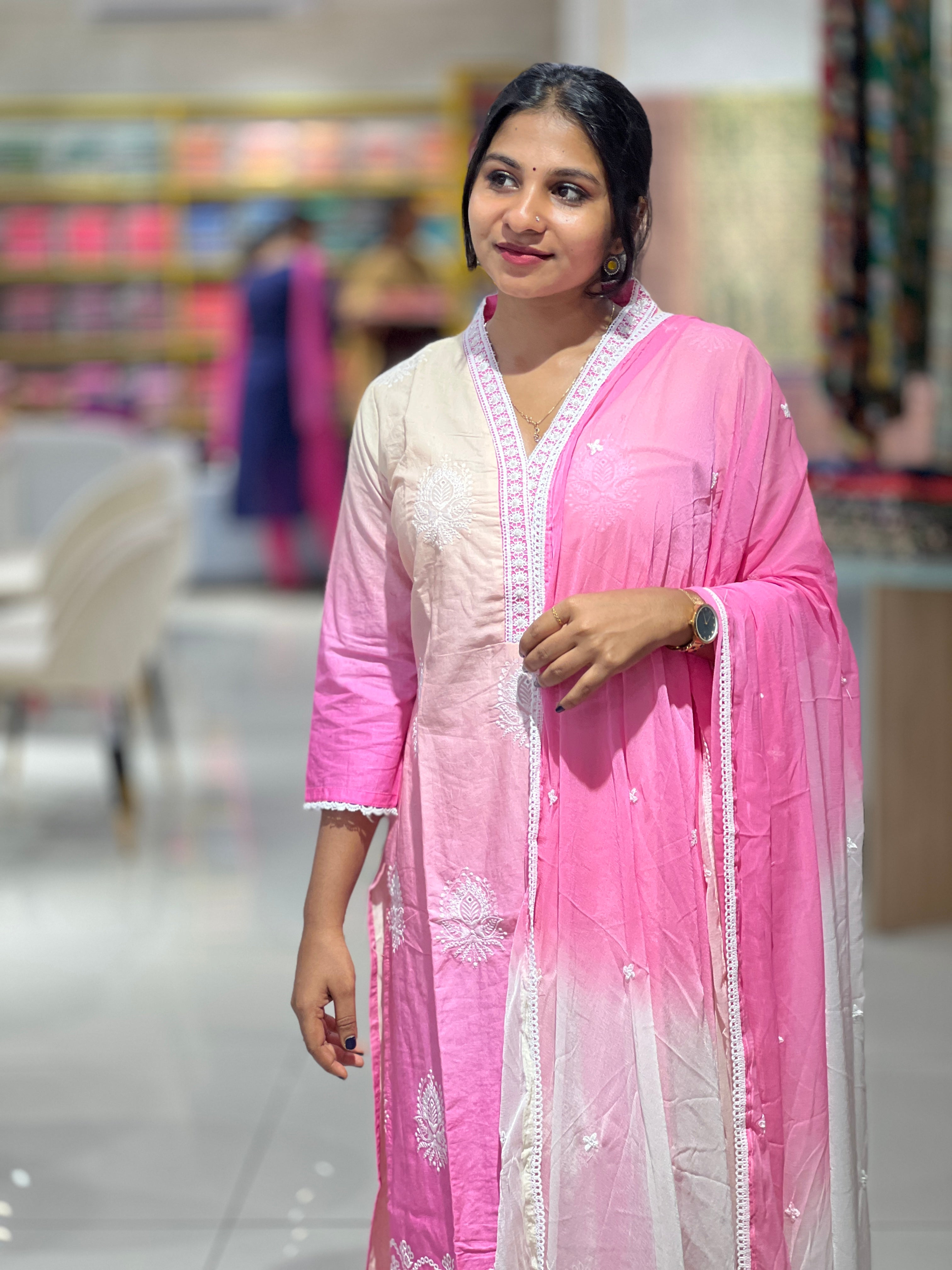 - Style: Double Shade, Scattered Thread Embroidery Buta, Schiffli Detailing With Embroidery, Lace With Beads Detailed Neck Portion, Lace Detailed Sleeves