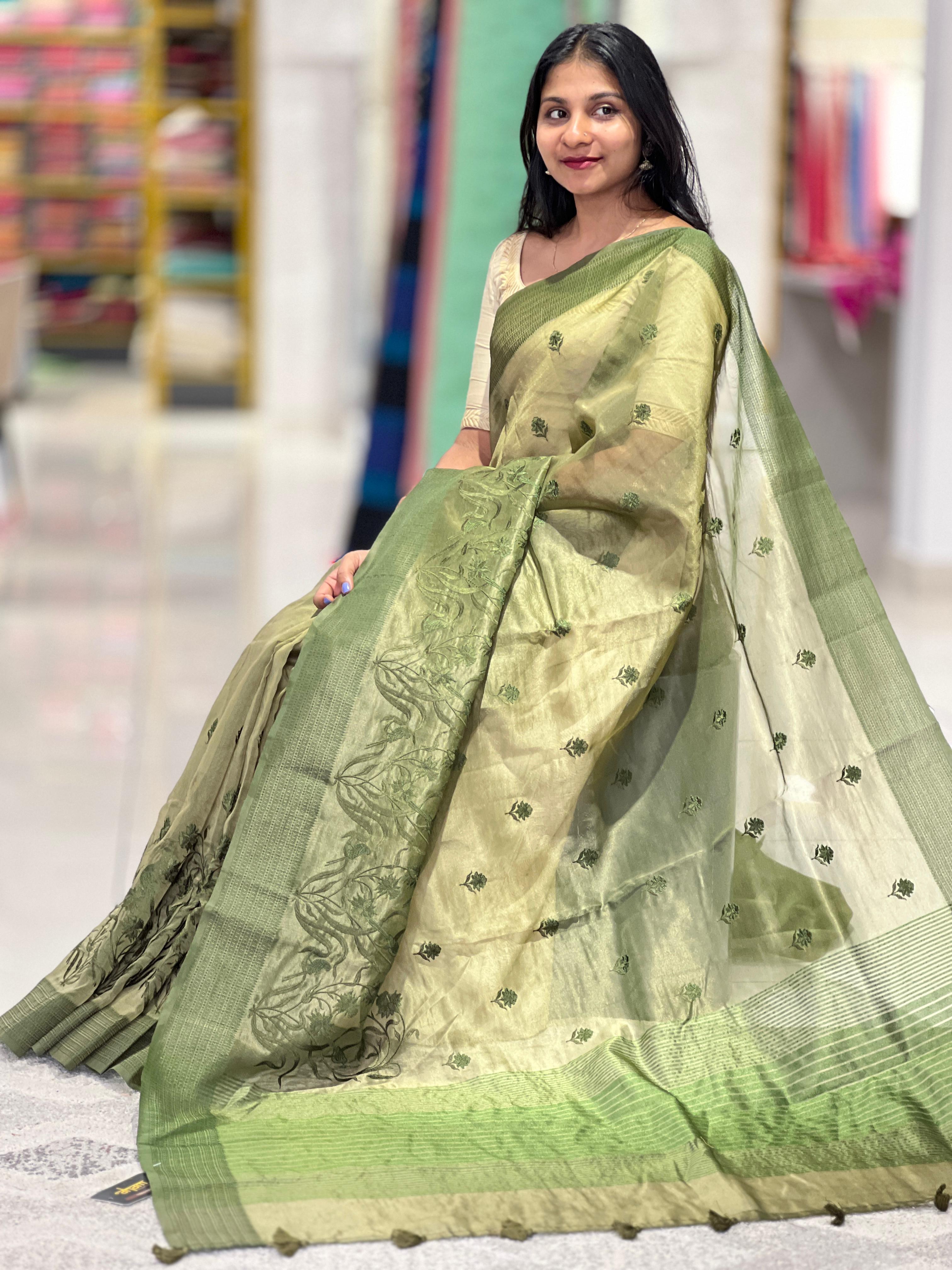 - Style: Thread Embroidered Floral Pattern, Weaving Pattern Pallu And Border