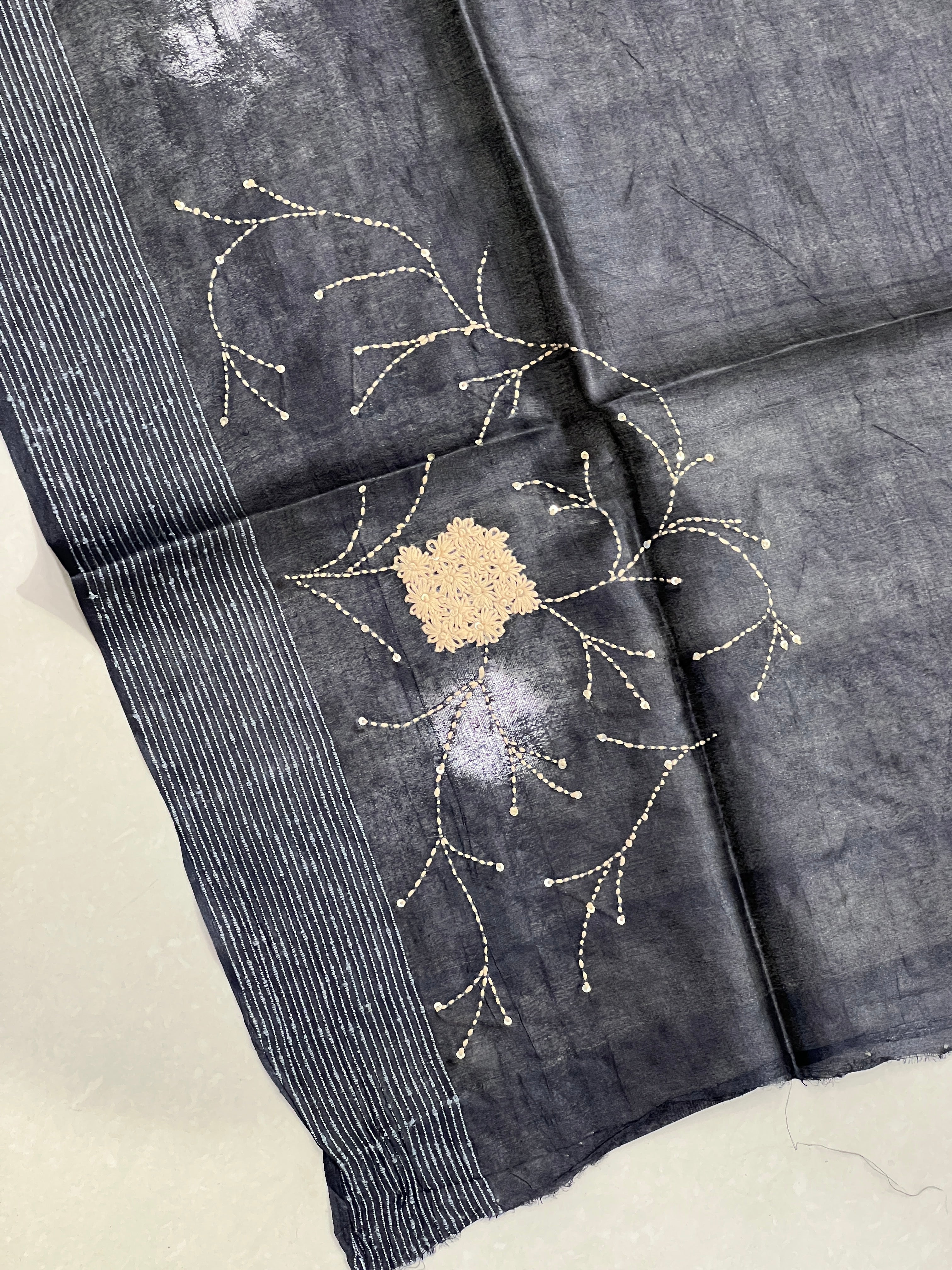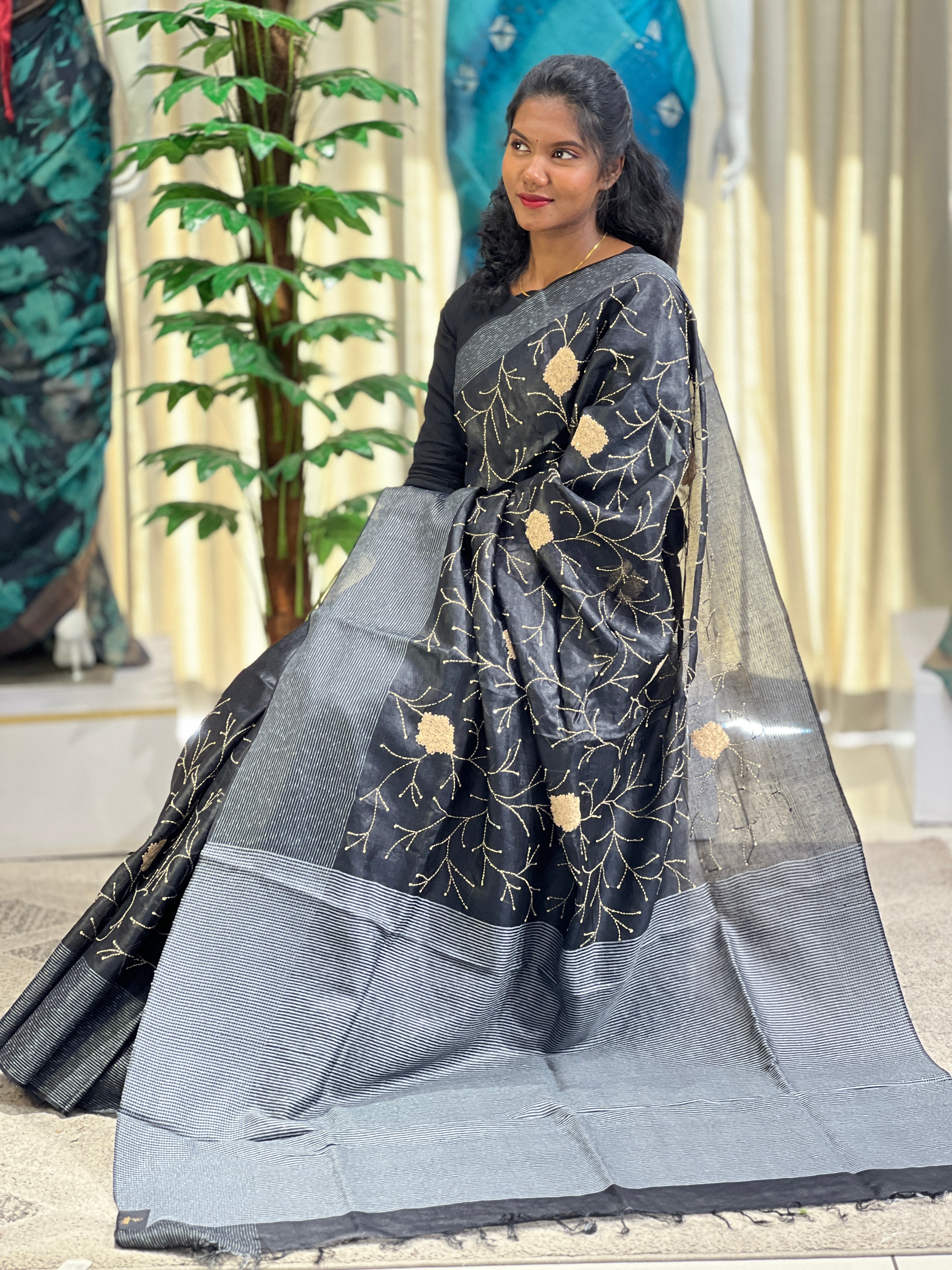 Thread Embroidery Pure Tussar Saree  | RGD713