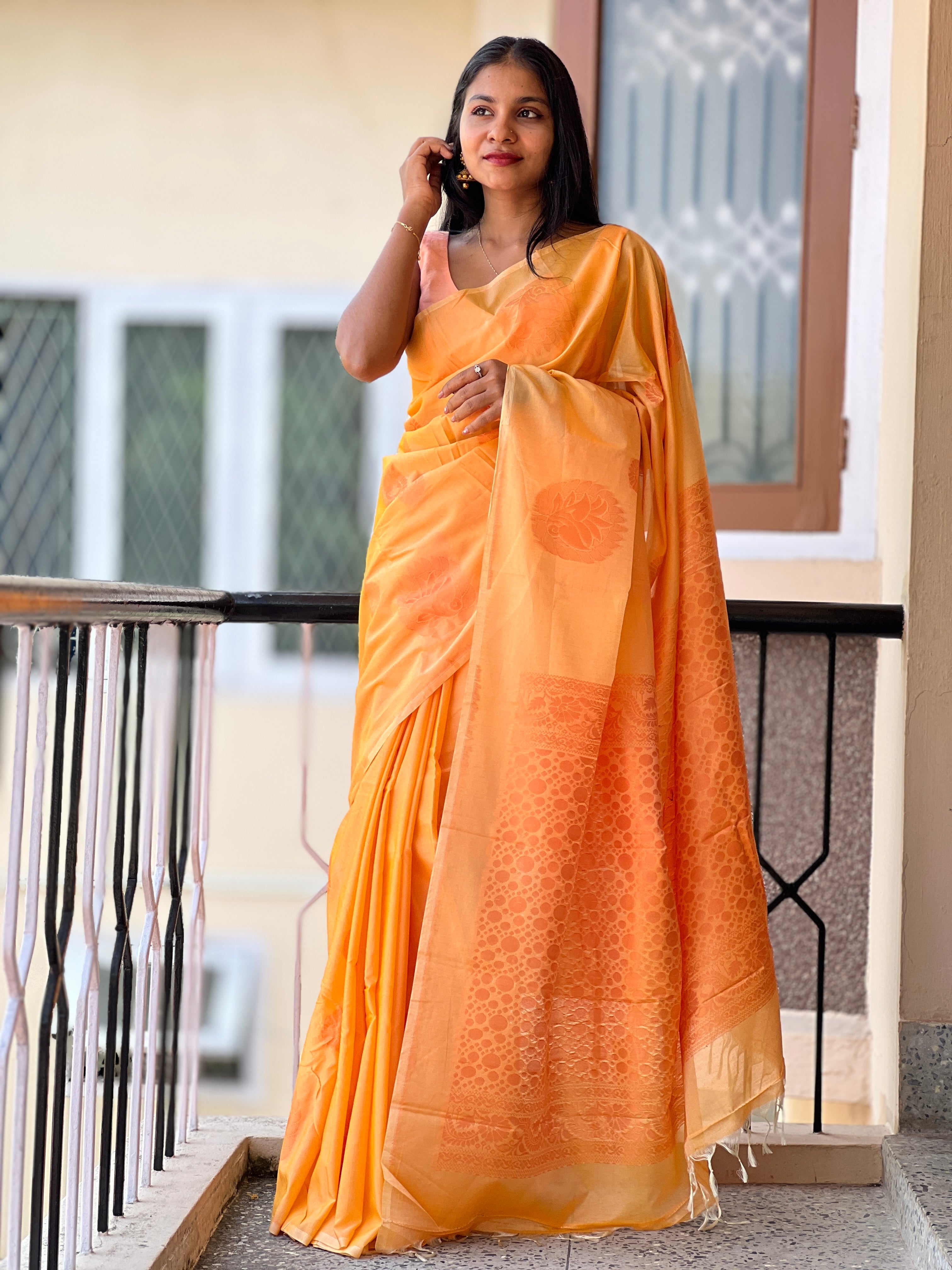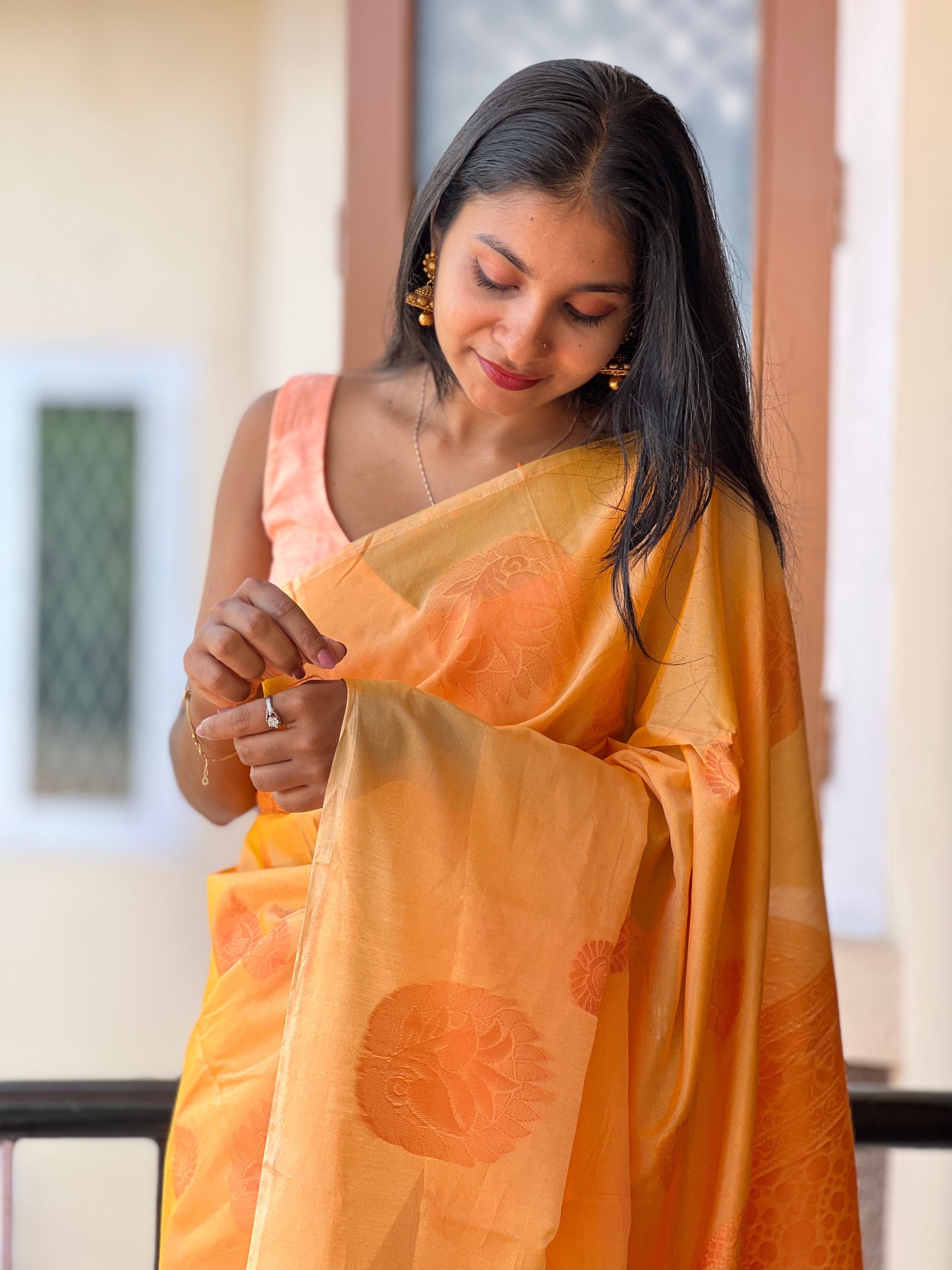 - Style: Silky Thread Weaved Pattern, Borderless Pattern, Traditional Motifs, Polka Dots & Floral Detailed Pallu, Self Knotted