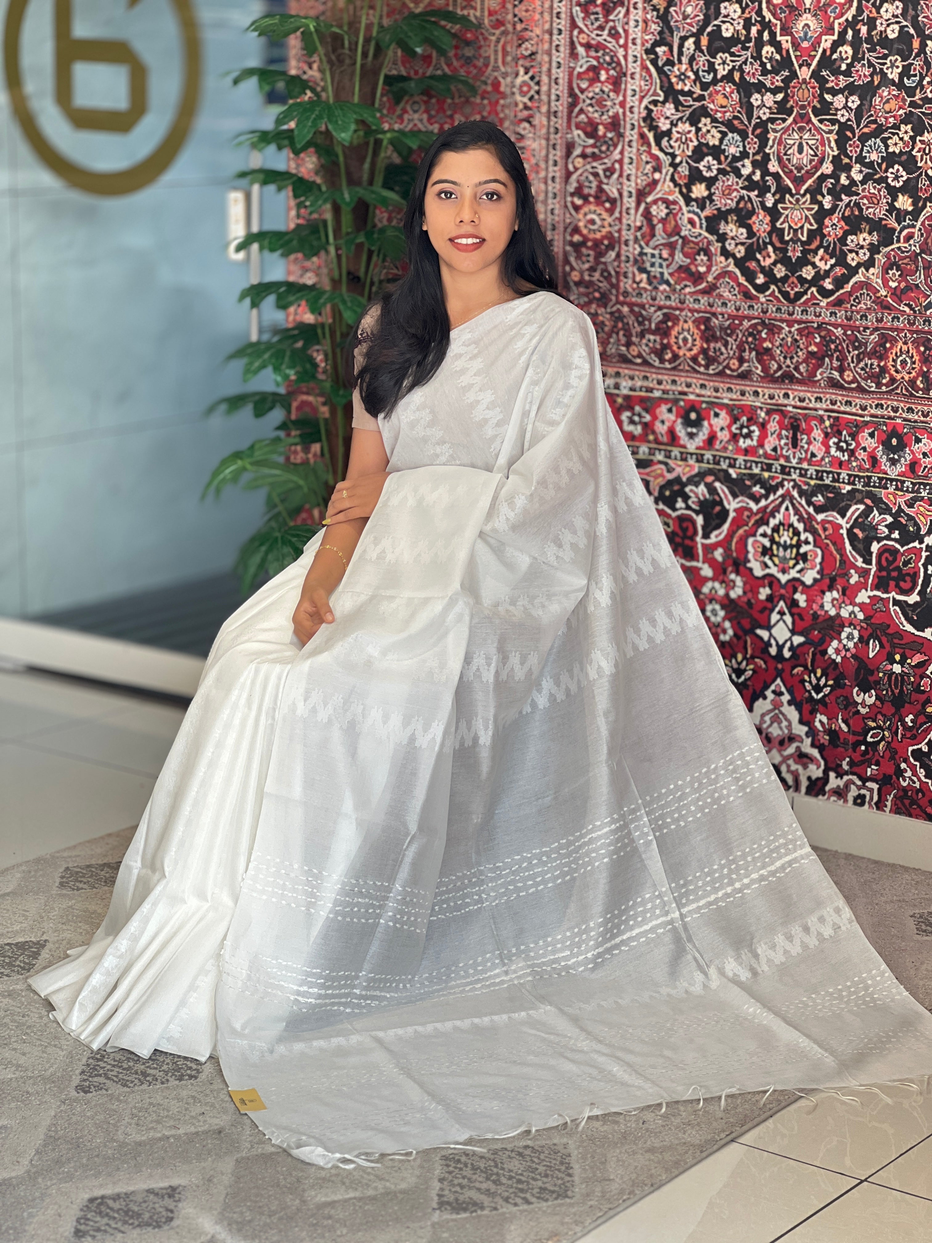 - Style: Thread Weaving Pattern , Zari Border Detailing, Kesiya Weaving Patterned Pallu, Tassels Attached, Zigzag Geometric Stripes Pattern