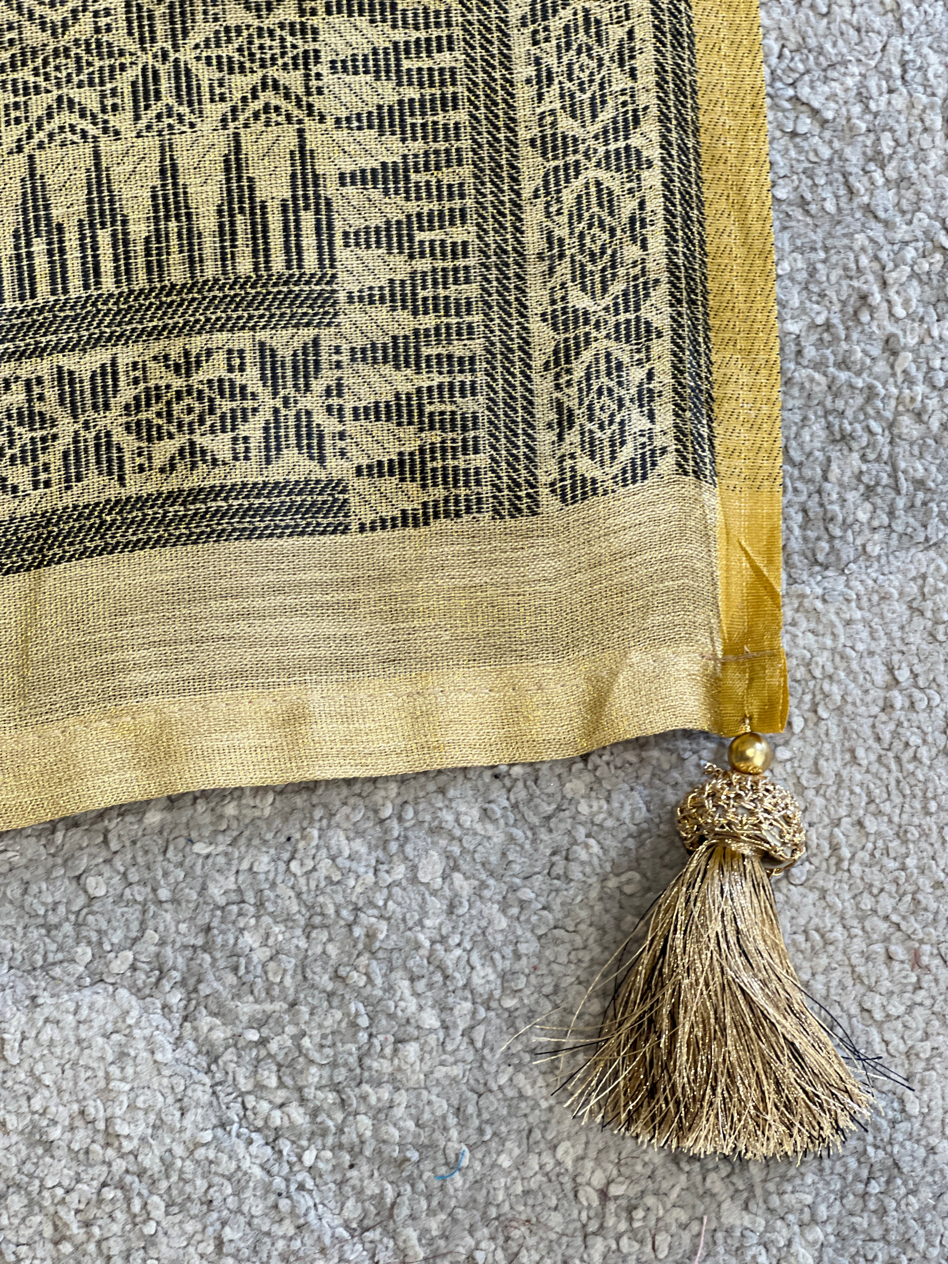 • Style: Thread Weaving Pattern,Temple Border Pattern,Power Loom,Tassels Attached
