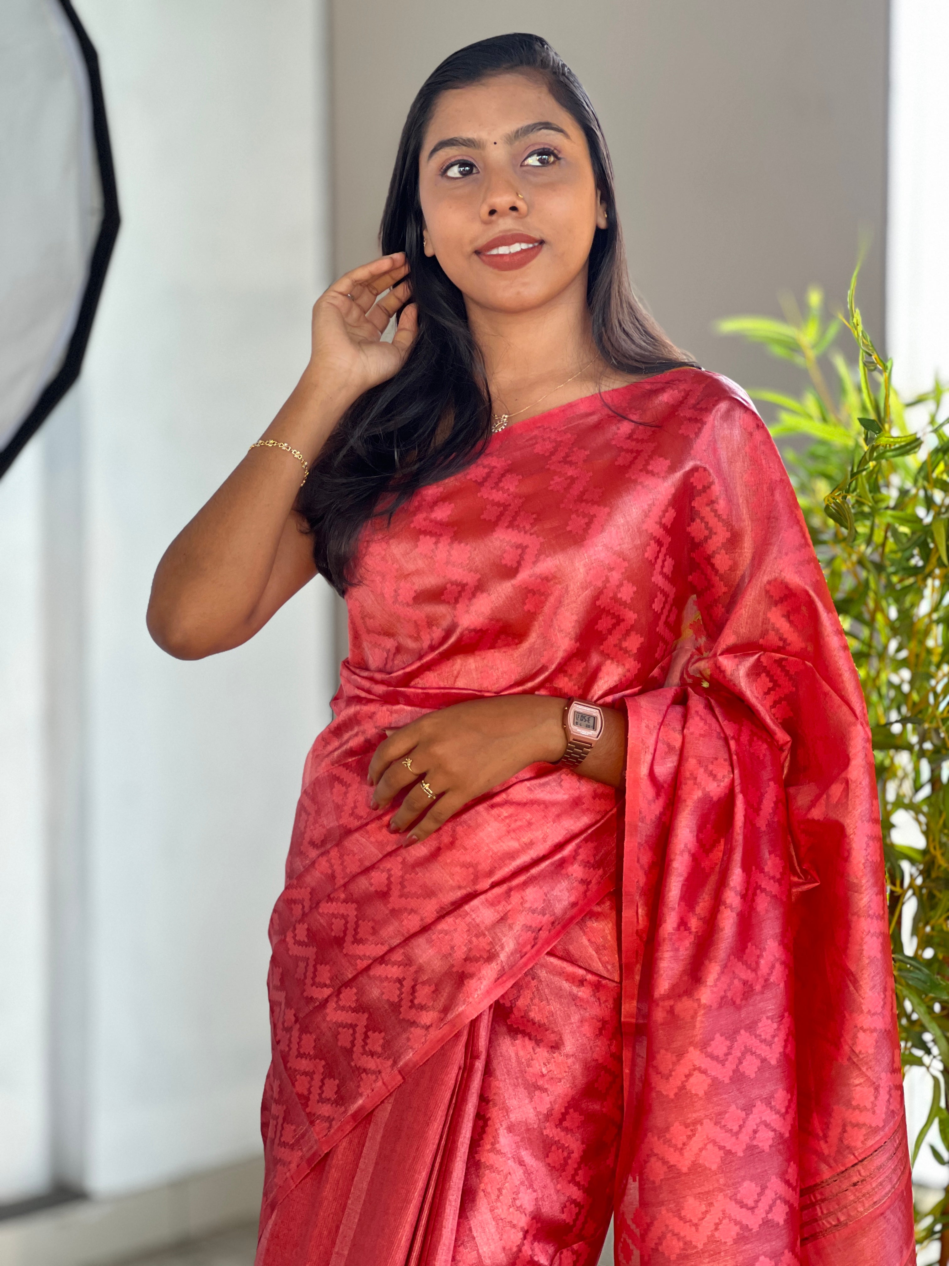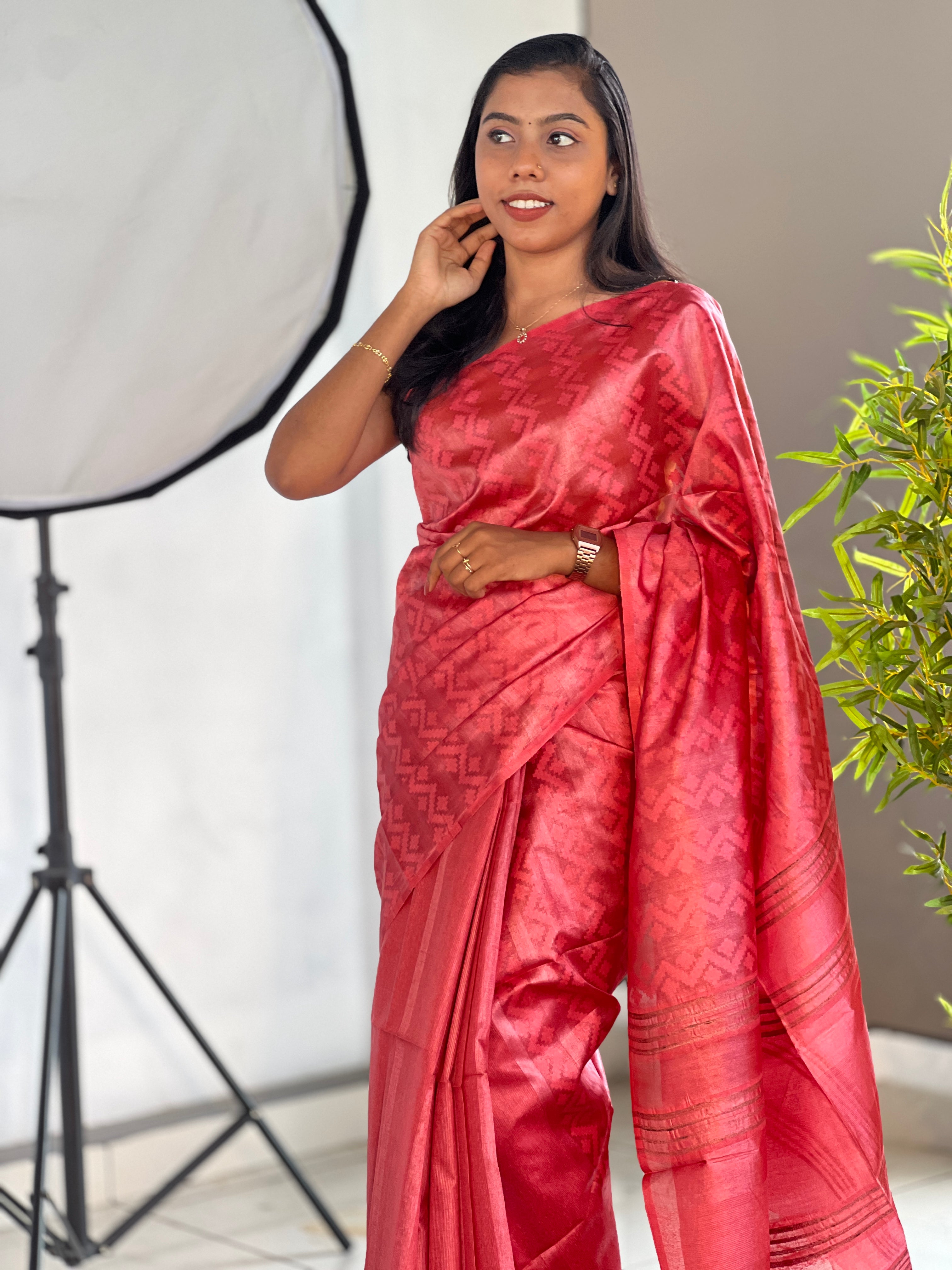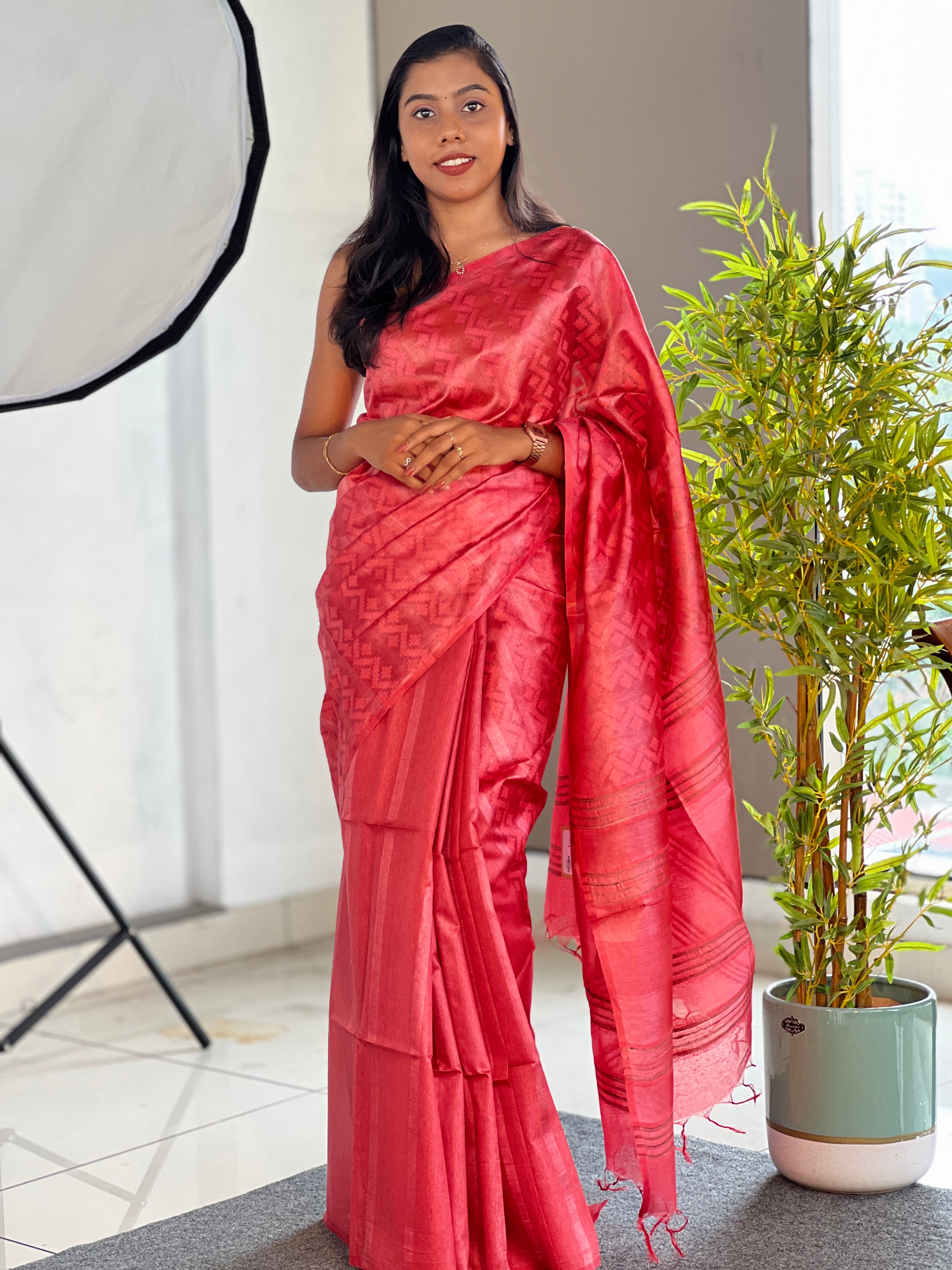 • Thread Weaving Zig Zag Patterned Tussar Saree | PNS223