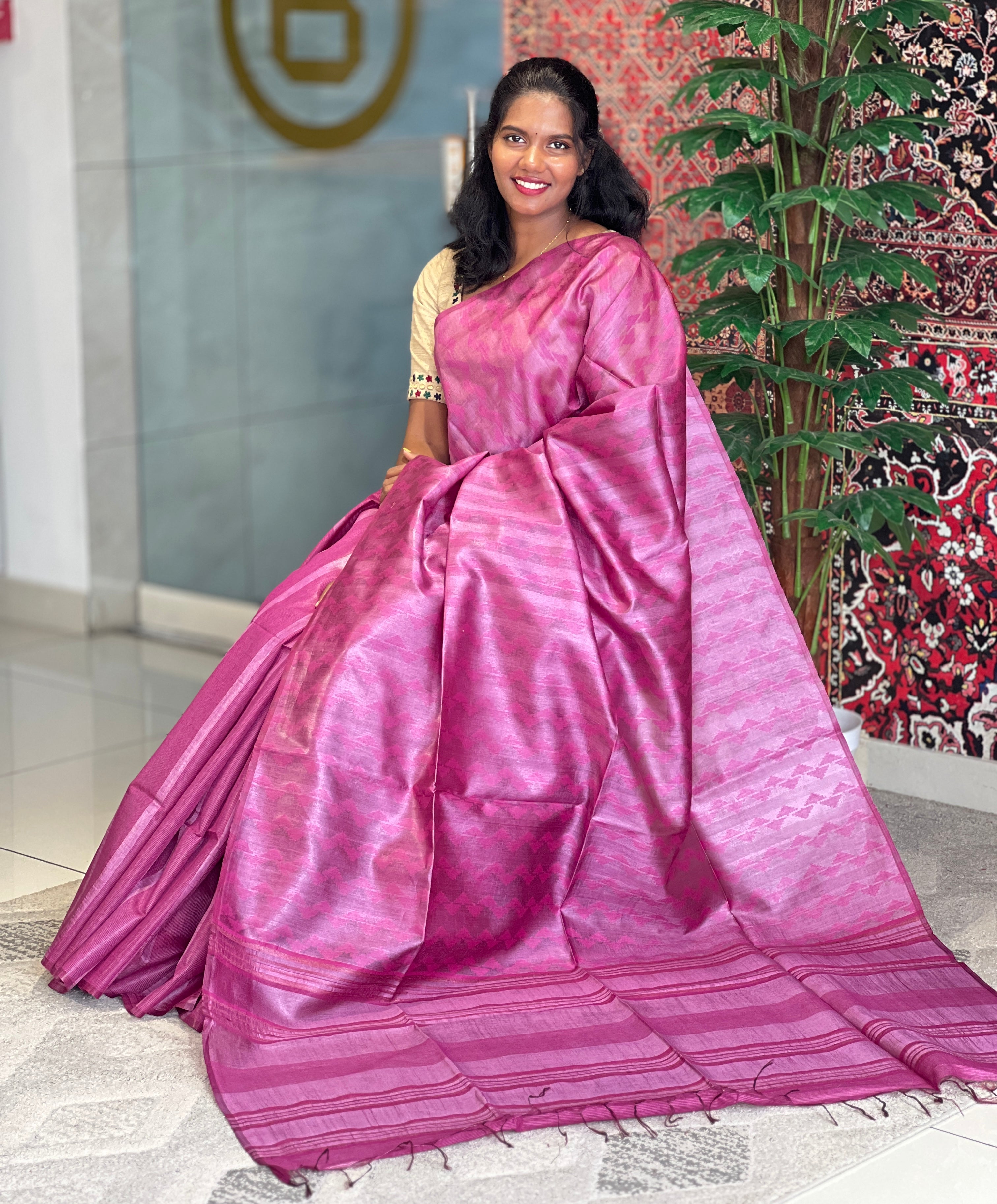 Thread Weaving Zigzag Patterned Noil Tussar Saree | PNS200