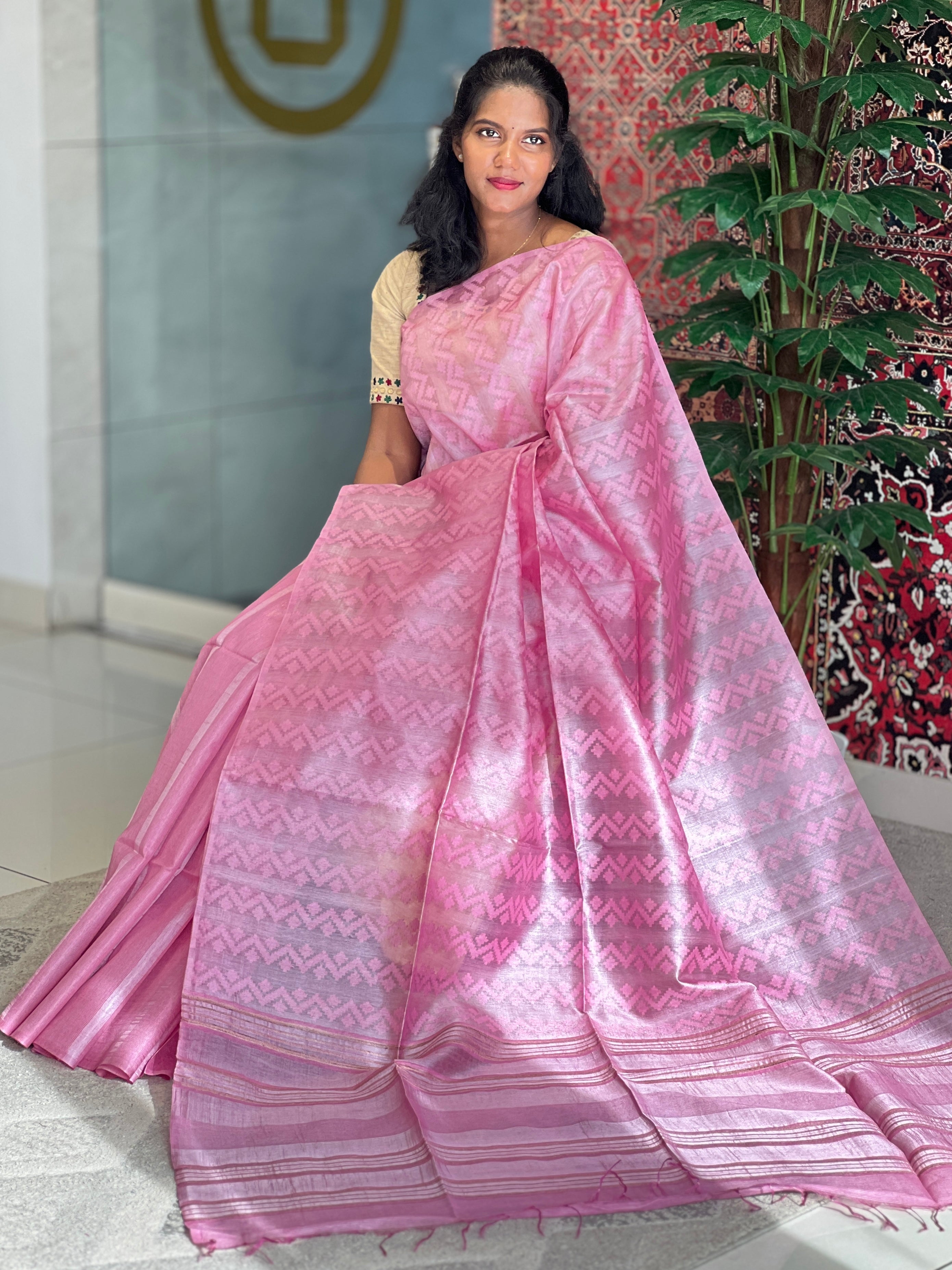 Thread Weaving Zigzag Patterned Noil Tussar Saree | PNS202