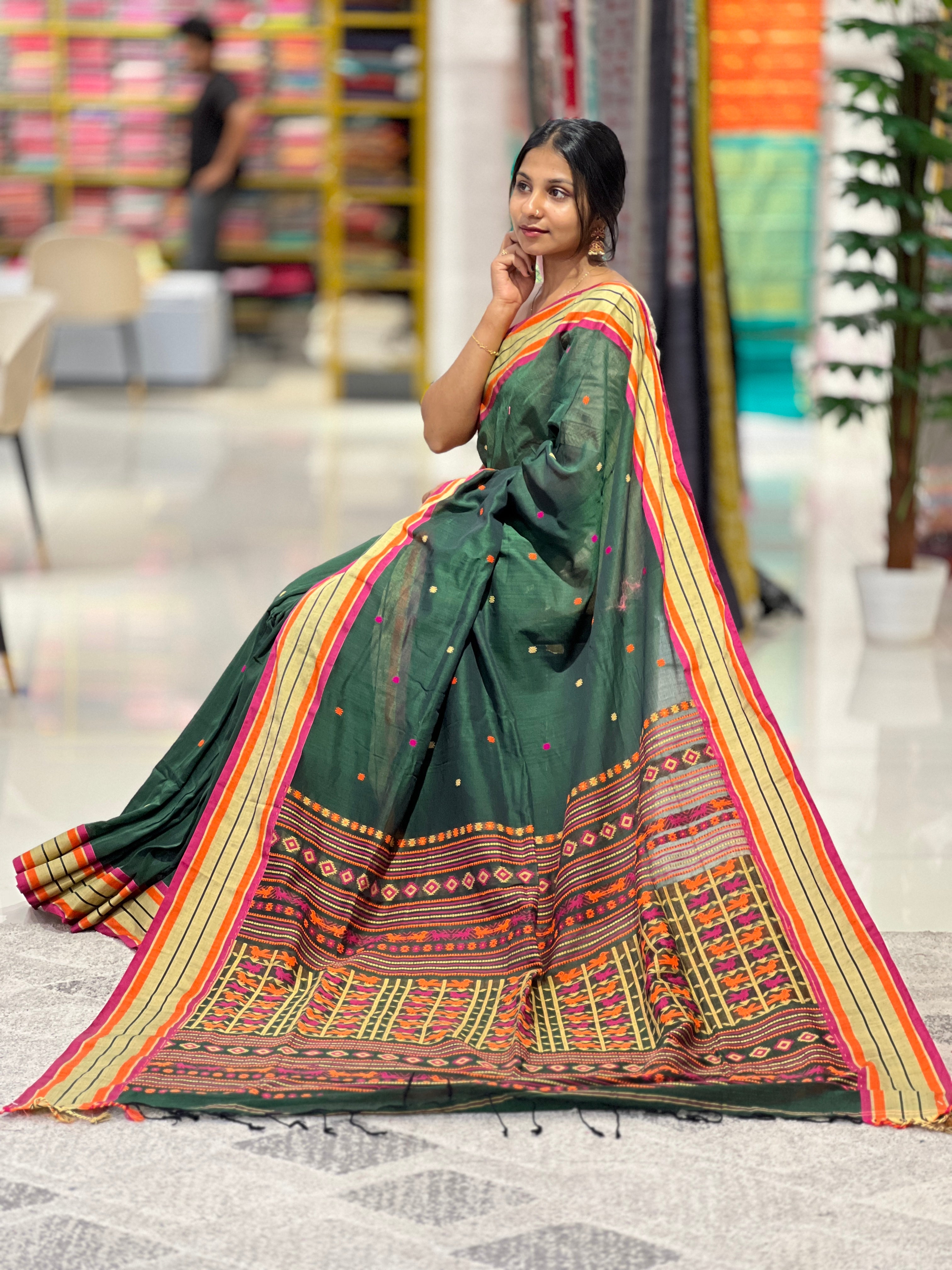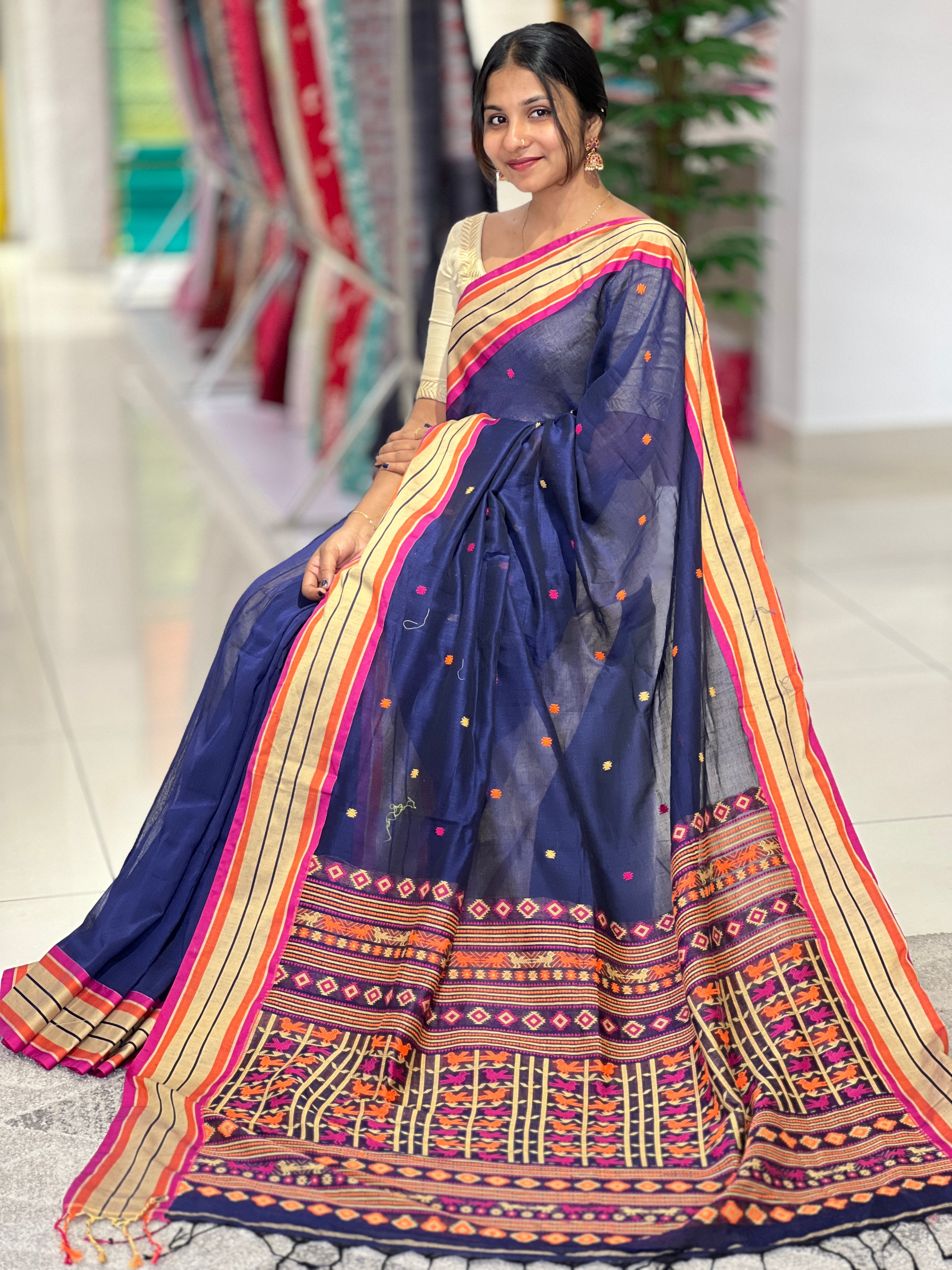 - Style: Multi-Color Thread Embroidery Patterned Pallu, Scattered Buta Detailing