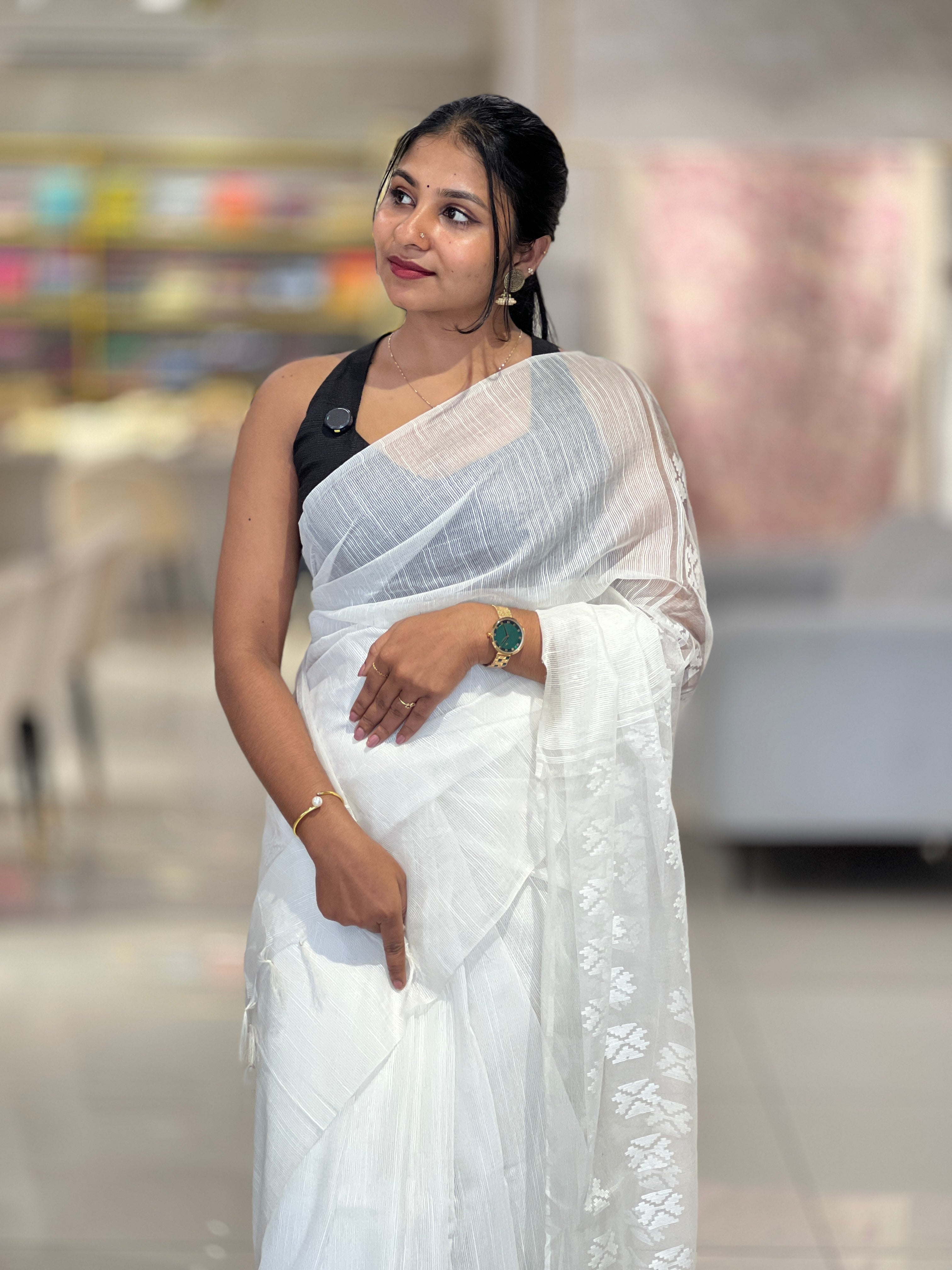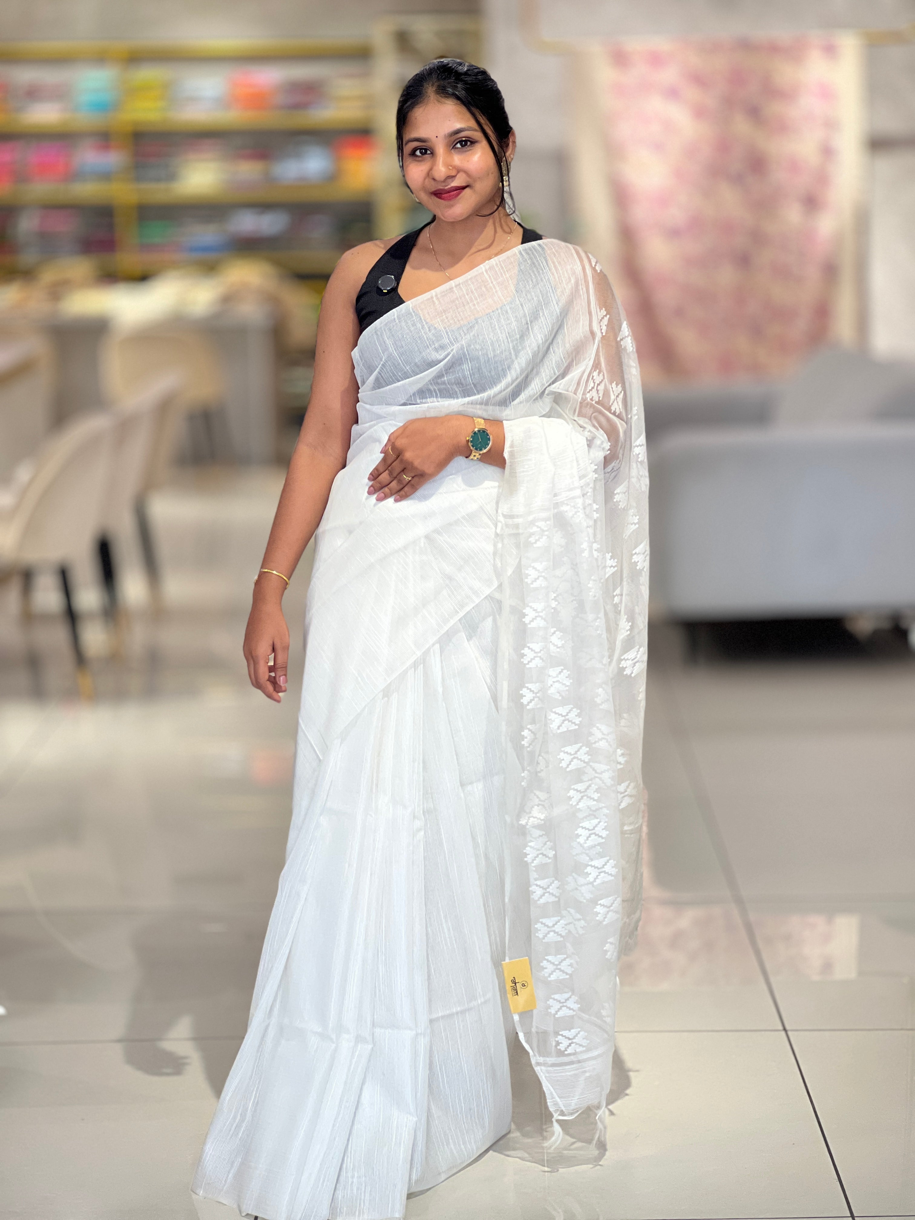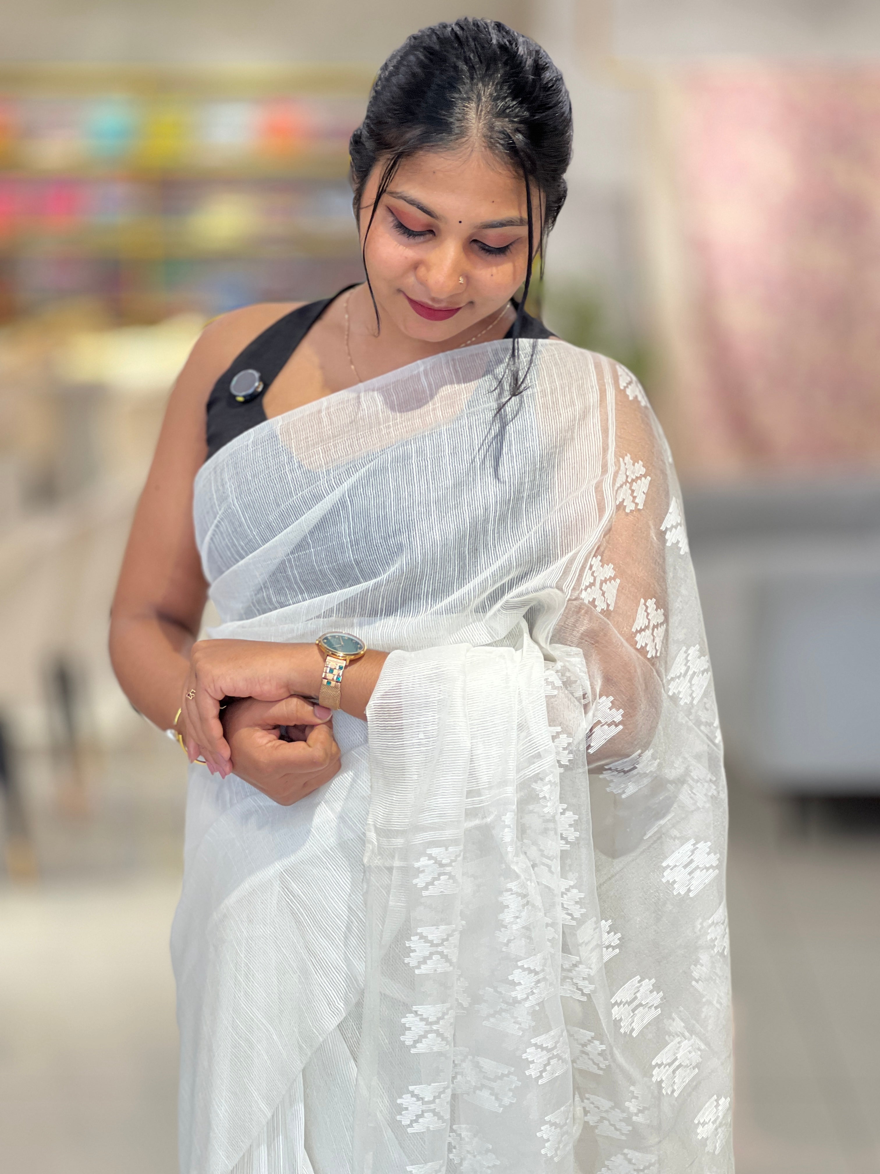 - Style: Self Stripe Patterned Body, Self Thread Weaved Organza Finished Pallu Portion, Geometric Pattern