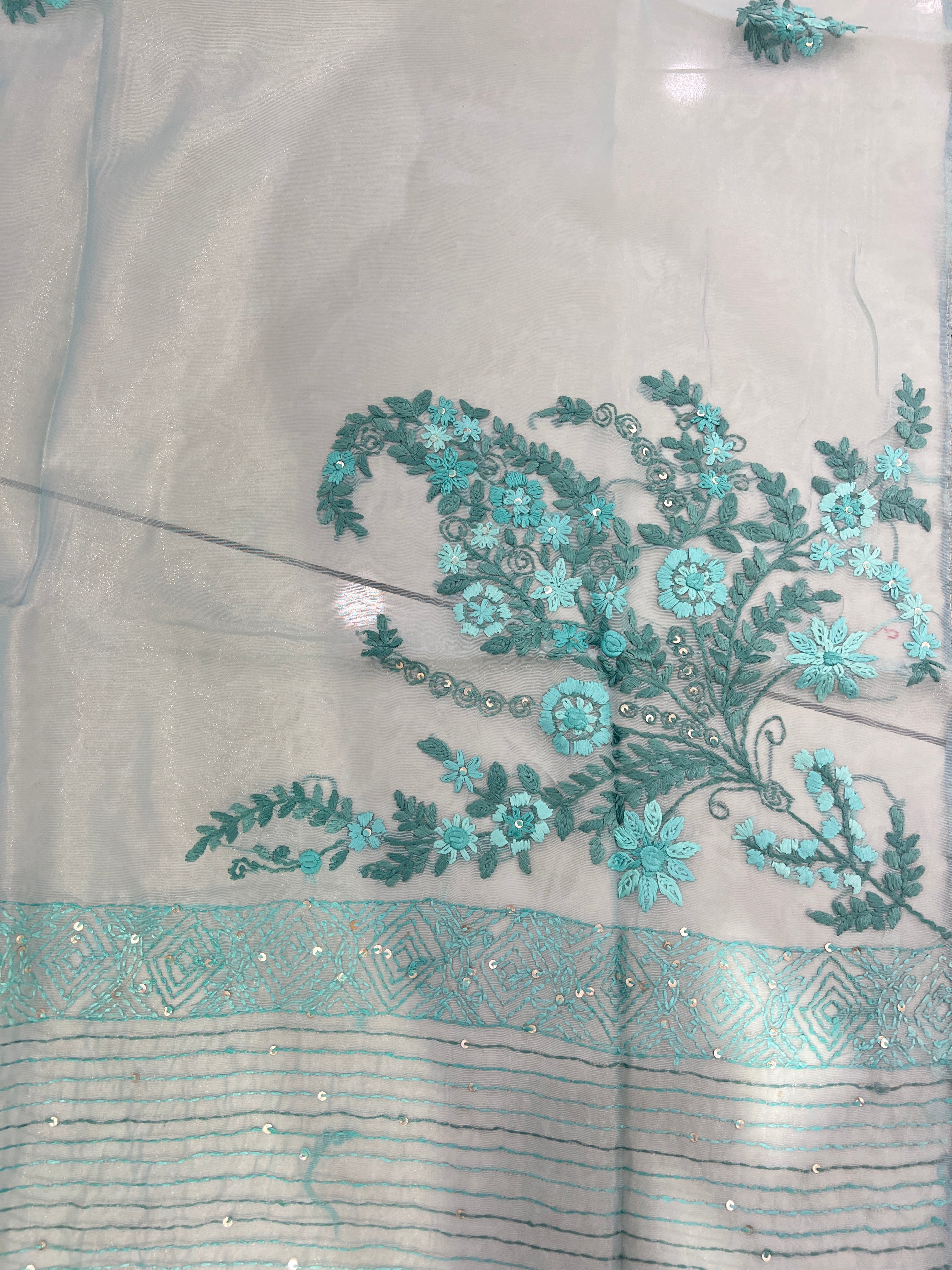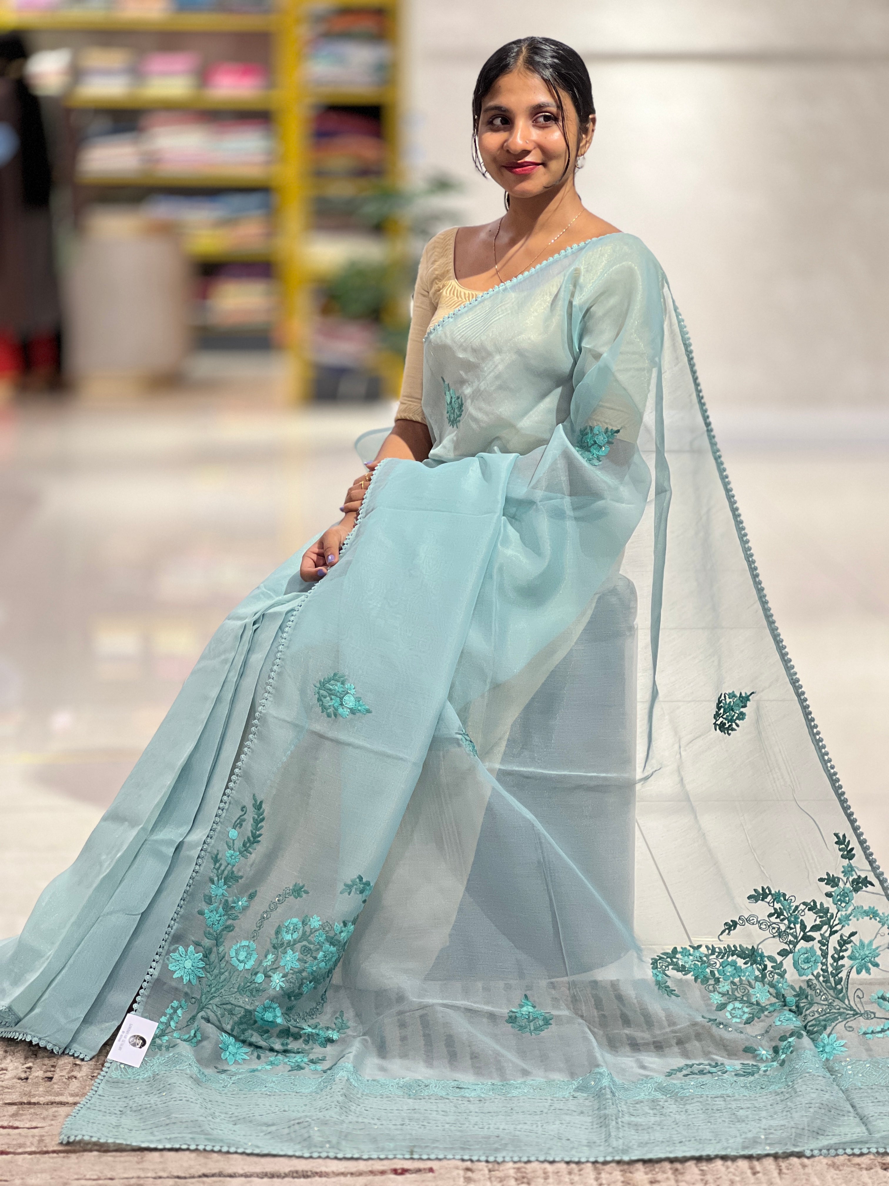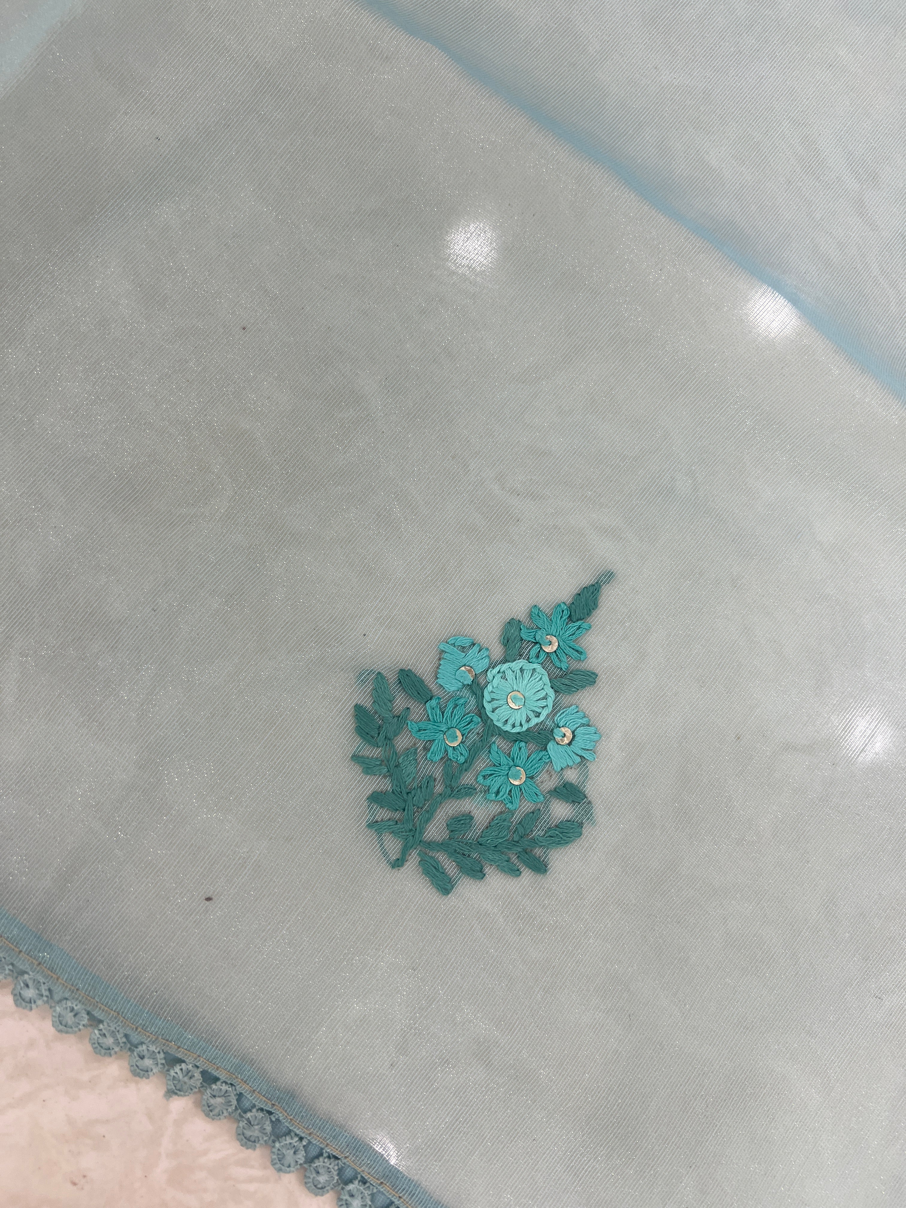 - Style: Floral Hand Embroidery Detailing, Lace Trim Finished Edges, Line Pattern With Sequence Highlight Detailing