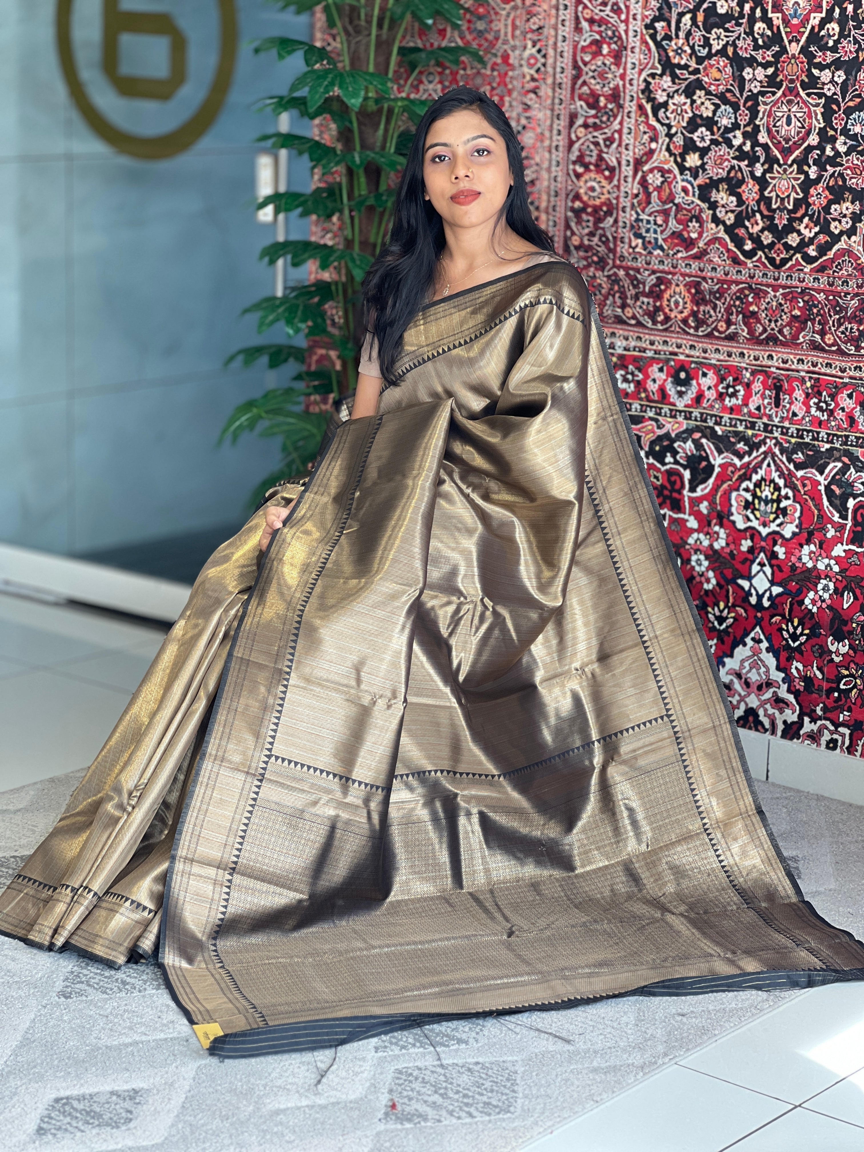 • Style: Tissue weaved, Stripes Pattern, Brocade Pallu, Border Detailing