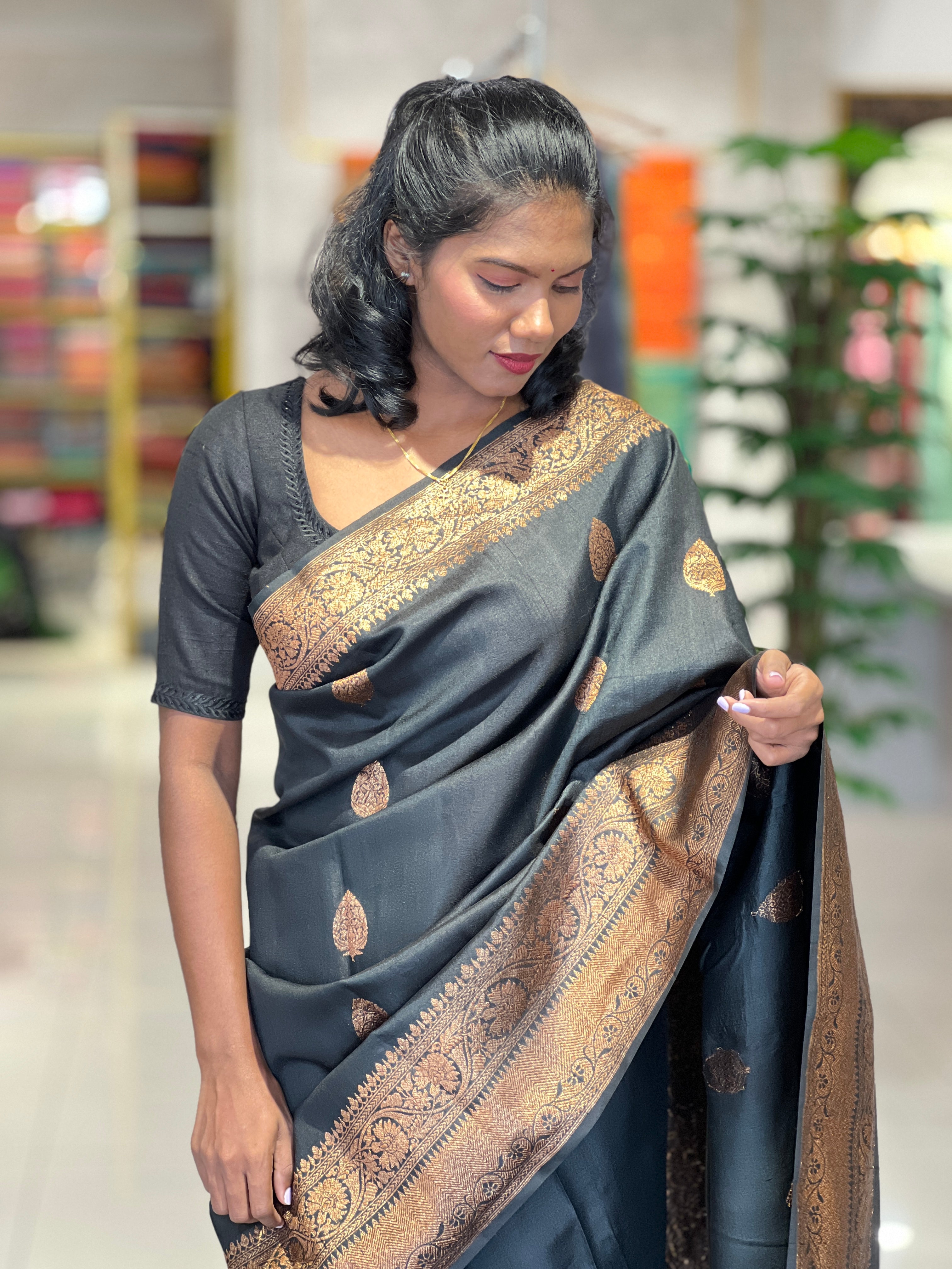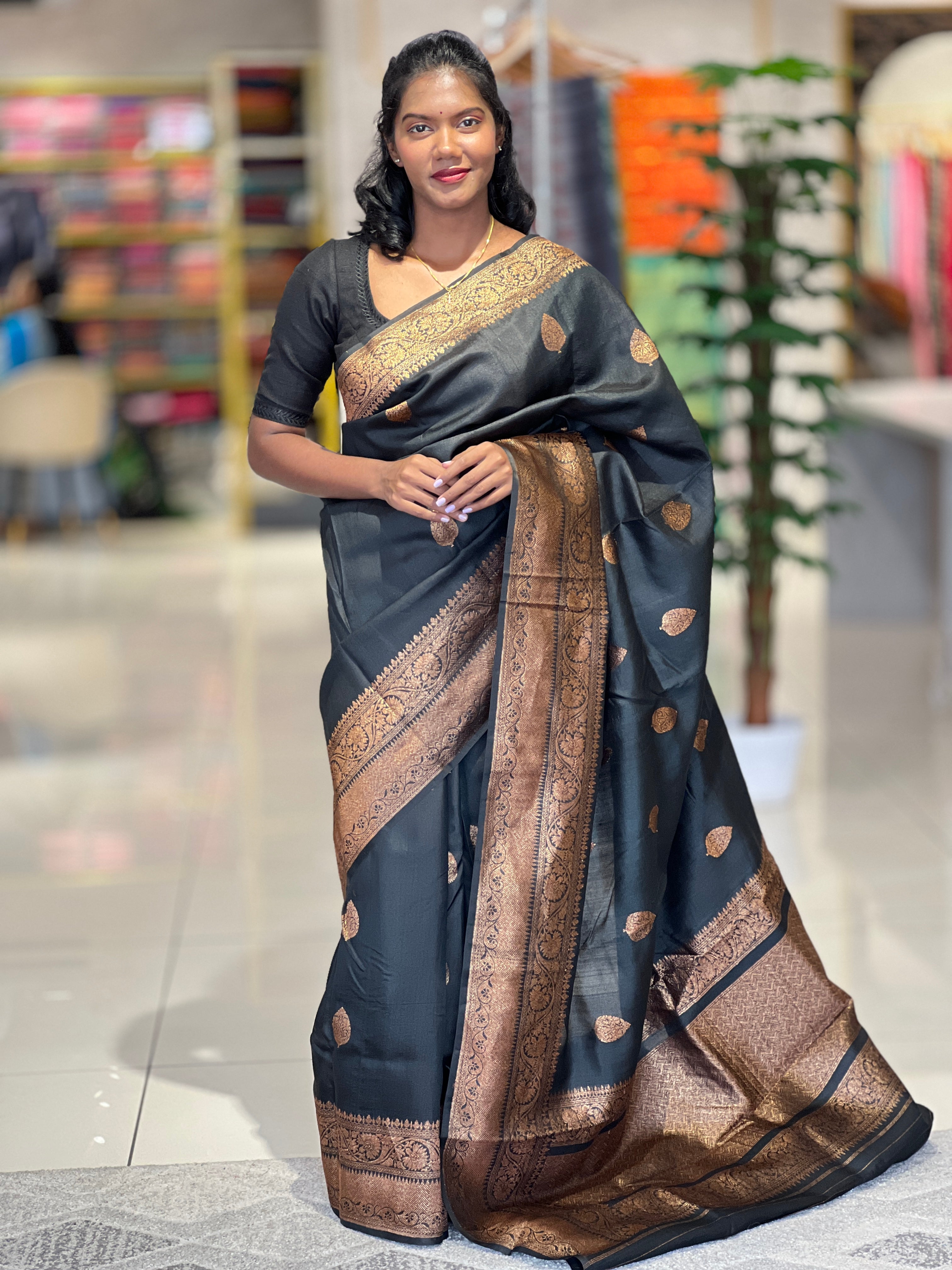 - Style: Banarasi Woven, Scattered Buta Detailing, Banarasi Weaved Floral Patterned Borders, Traditional Zari Woven Zig Zag Patterned Pallu
