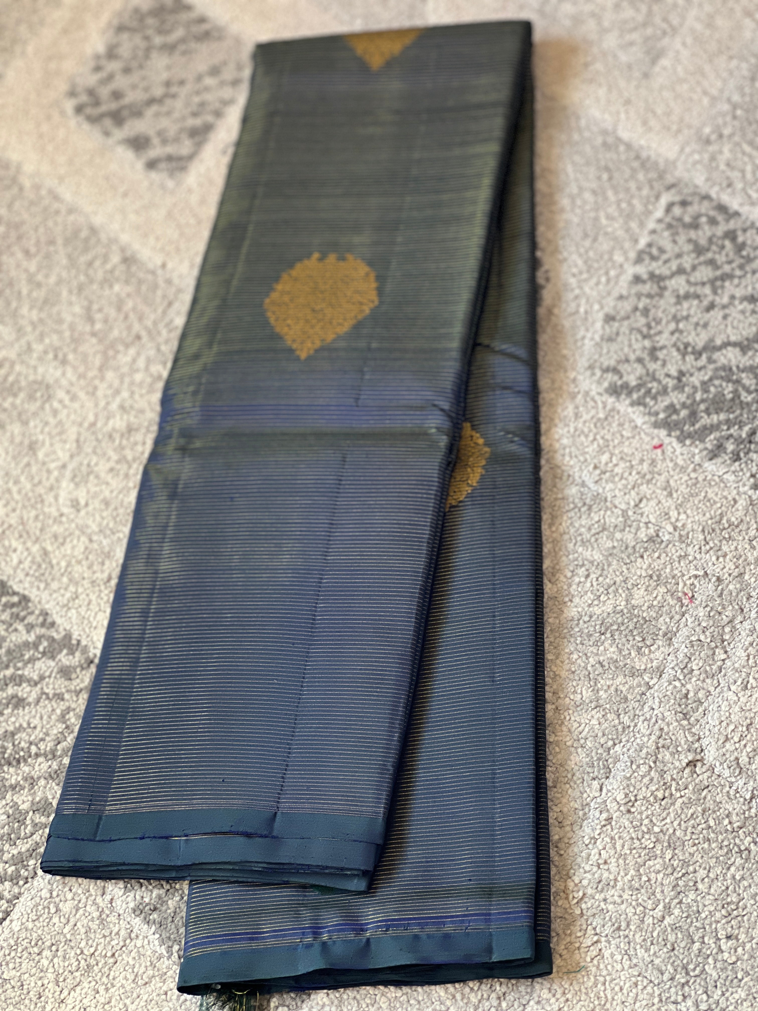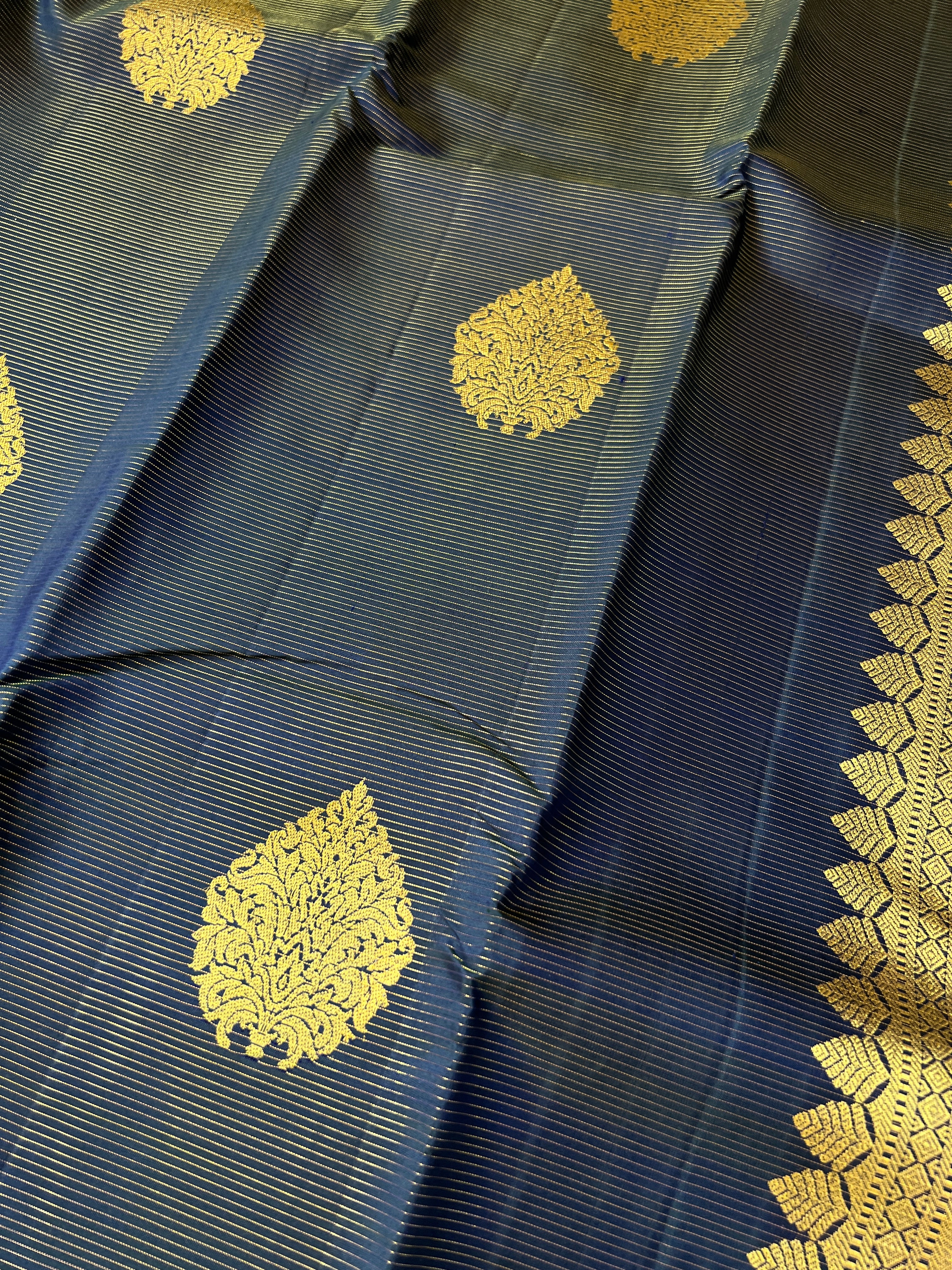 - Style: Golden Zari Woven, Handloom,Floral Buta Pattern ,Rich Pallu,Stripe Pattern